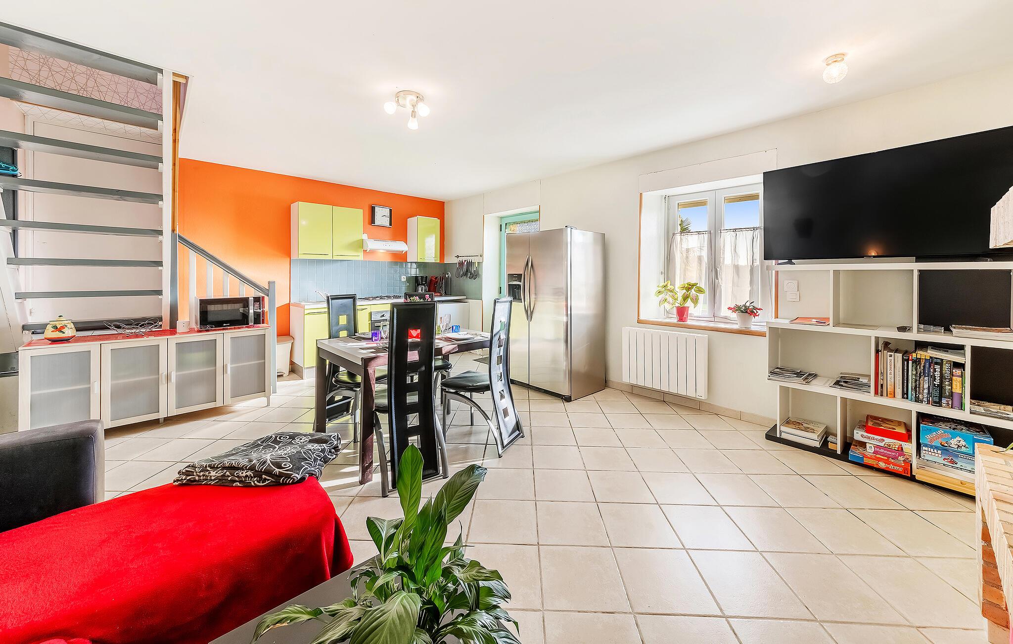 Dette charmerende feriehus i Le Ferré vil glæde jer med sine varme og farverige møbler. På to etager er der plads nok til hele familien. Den åbne og farverige stue lægger op til at tilbringe tid sammen, og det veludstyrede køkken gør det til en fornøjelse at tilberede måltider. I kan afslutte dagen med at slappe af på den smukke terrasse, omgivet af et roligt landskab, der sikrer afslapning.