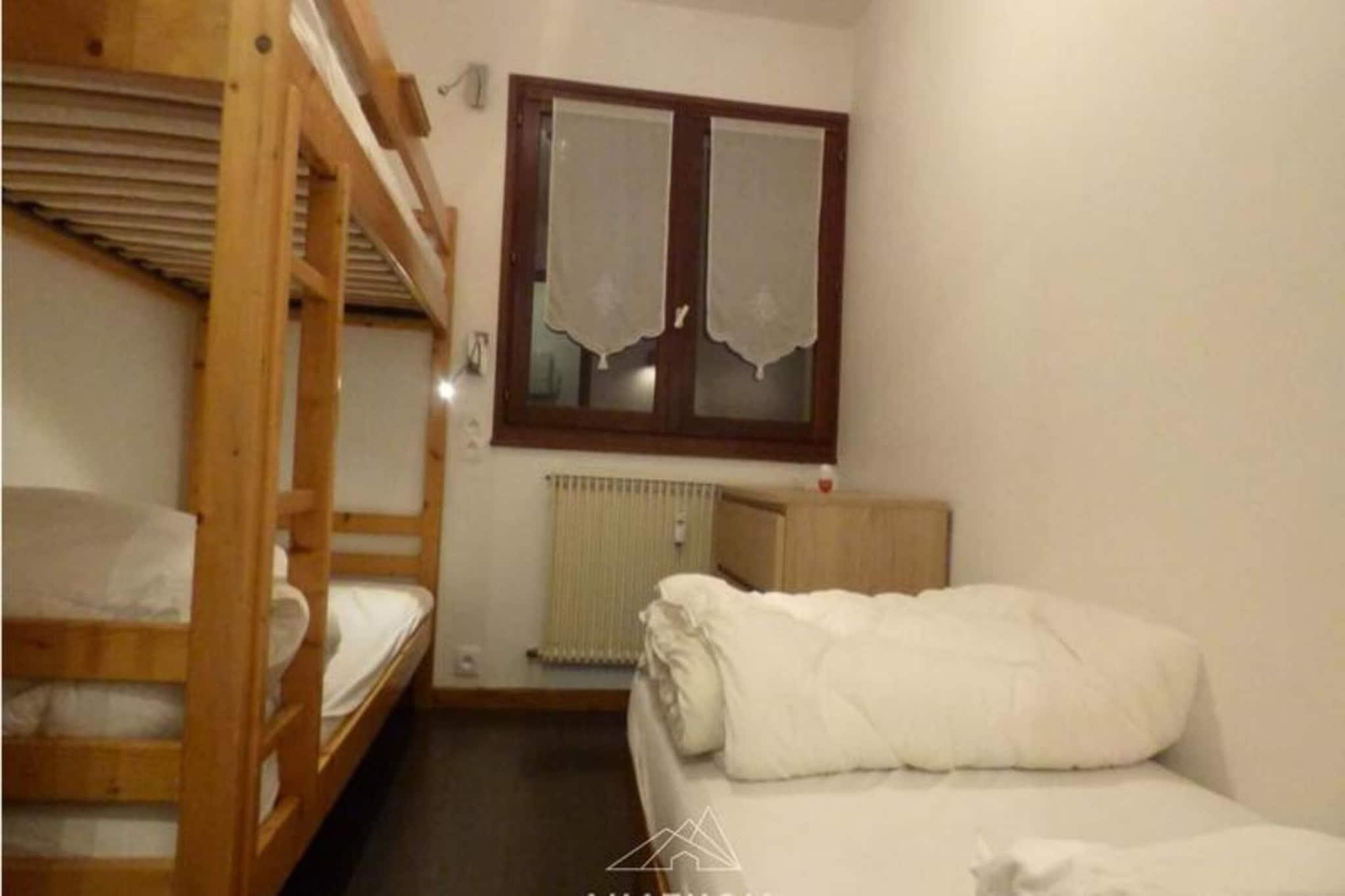 Ejendom sammen med en hyggelig atmosfære tilbyder en komfortabel 3-værelses lejlighed, ideel til en gruppe på 6 personer. Den har en stue udstyret med en BZ sovesofa, perfekt til at slappe af efter en dag med aktiviteter. Lejligheden indeholder et soveværelse med dobbeltseng, en kahyt med to køjesenge og en ekstra enkeltseng, hvilket sikrer rigelig soveplads til alle gæster. Stuen åbner også op til en sydvendt balkon med panoramaudsigt over landsbyen og Aravis-bjergkæden. Yderligere faciliteter omfatter en dekorativ pejs, et badeværelse med badekar og separat toilet. Bemærk venligst, at sengetøj og håndklæder ikke er inkluderet, og der er en turistskat, der gælder for voksne. Lejligheden er bekvemt placeret i Villeneuve-området, kun 800 meter fra lokale butikker og kun 200 meter fra det gratis skibusstoppested, hvilket gør den til et godt valg for vintersportsentusiaster. For dem, der ankommer med tog eller fly, ligger Annecy SNCF-banegården 32 km derfra, mens Genève Lufthavn ligger 52 km derfra, og Lyon Lufthavn ligger 155 km fra ejendommen. Disse transportforbindelser giver nem adgang for rejsende fra forskellige steder, hvilket bidrager til lokationens tiltrækningskraft. Lejligheden indeholder ikke køkken; men dets nærhed til lokale butikker giver nem adgang til det vigtigste. Andre funktioner inkluderer opvarmning, der sikrer komfort i de kolde måneder. Dette feriehus er en god base for dem, der søger et hyggeligt, velbeliggende tilflugtssted, tæt på både naturlig skønhed og praktiske rejseknudepunkter.