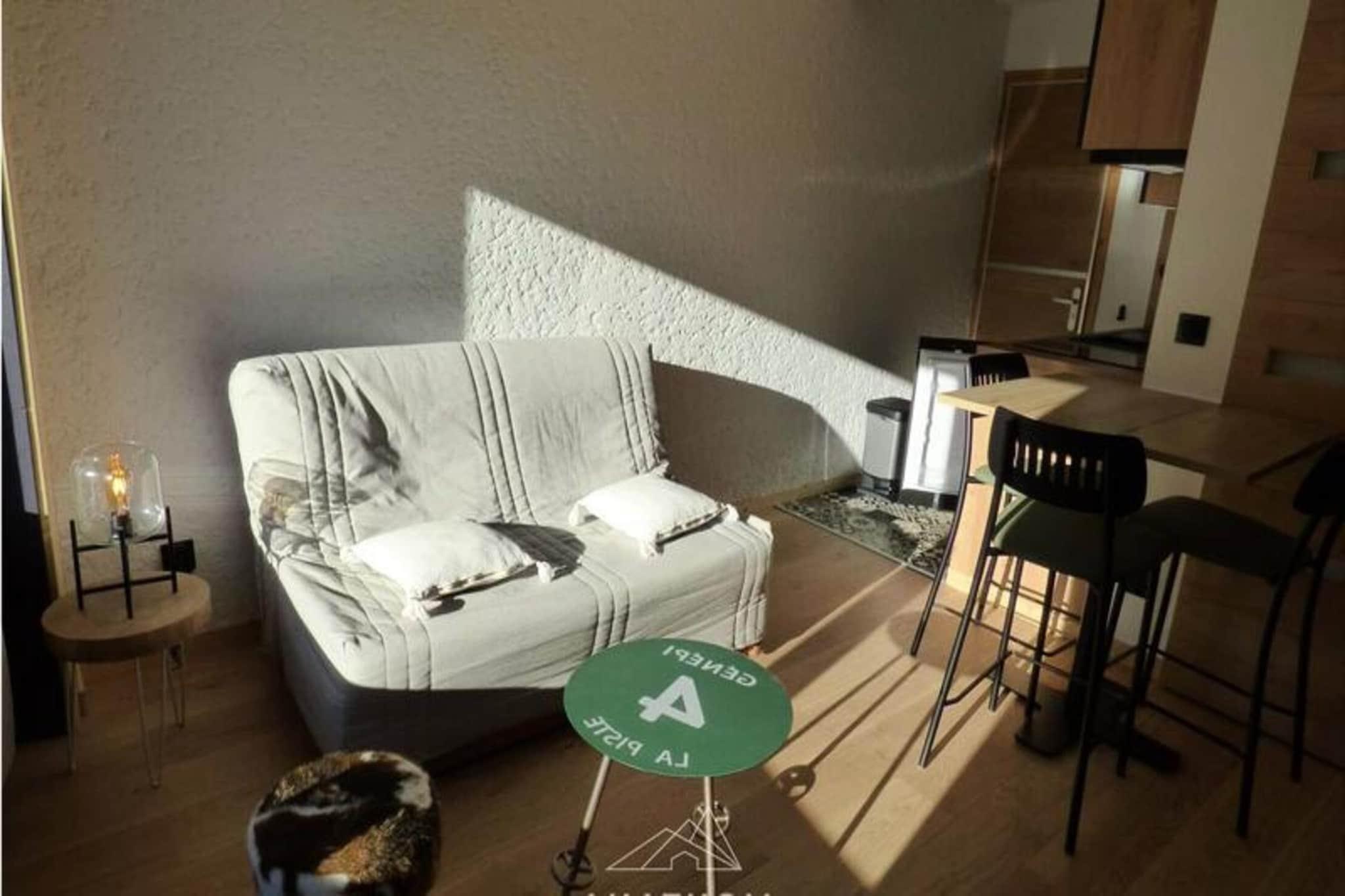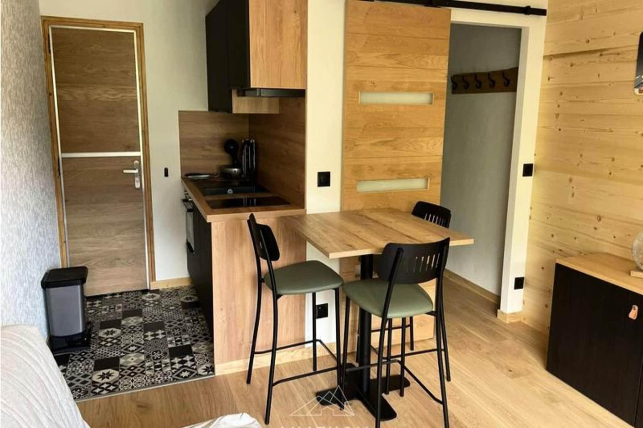 Denne ejendom rummer sammen med sit hyggelige og funktionelle design op til 3-4 gæster. Opholdsområdet omfatter en BZ-sofa, og et separat soveområde har en dobbeltseng, hvilket gør det ideelt til en lille gruppe eller familie. Lejligheden er udstyret med eget badeværelse med bruser og separat toilet. Derudover tilbyder det en balkon med en naturskøn udsigt, og der er et skiskab for nemheds skyld. Sengelinned og håndklæder er ikke inkluderet, og gæster skal betale en turistskat ved ankomsten. Ejendommen ligger i det rolige Nant Robert-distrikt og tilbyder en fantastisk udsigt over landsbyen Grand Bornand. Dens fredelige beliggenhed giver en perfekt flugt, mens den stadig er tæt på alle de væsentlige faciliteter. Boligen ligger kun i kort afstand fra butikker, restauranter og tjenester, hvilket gør det nemt for gæsterne at få adgang til alt, hvad de har brug for. Adgangen er via en ekstern trappe, der kræver 23 trin for at nå lejligheden, hvilket giver en smule afsondrethed, mens det stadig er forbundet med resortets attraktioner. Lejligheden har et fuldt udstyret køkken, perfekt til at tilberede måltider under dit ophold. Den inkluderer alle nødvendige apparater, hvilket gør det nemt at lave mad efter en dag med udendørs aktiviteter. Opvarmningen sikrer en behagelig atmosfære under hele dit ophold. Dette veludstyrede, funktionelle studie er et fremragende valg for dem, der leder efter et roligt tilflugtssted med nem adgang til det pulserende feriested og dets mange aktiviteter.