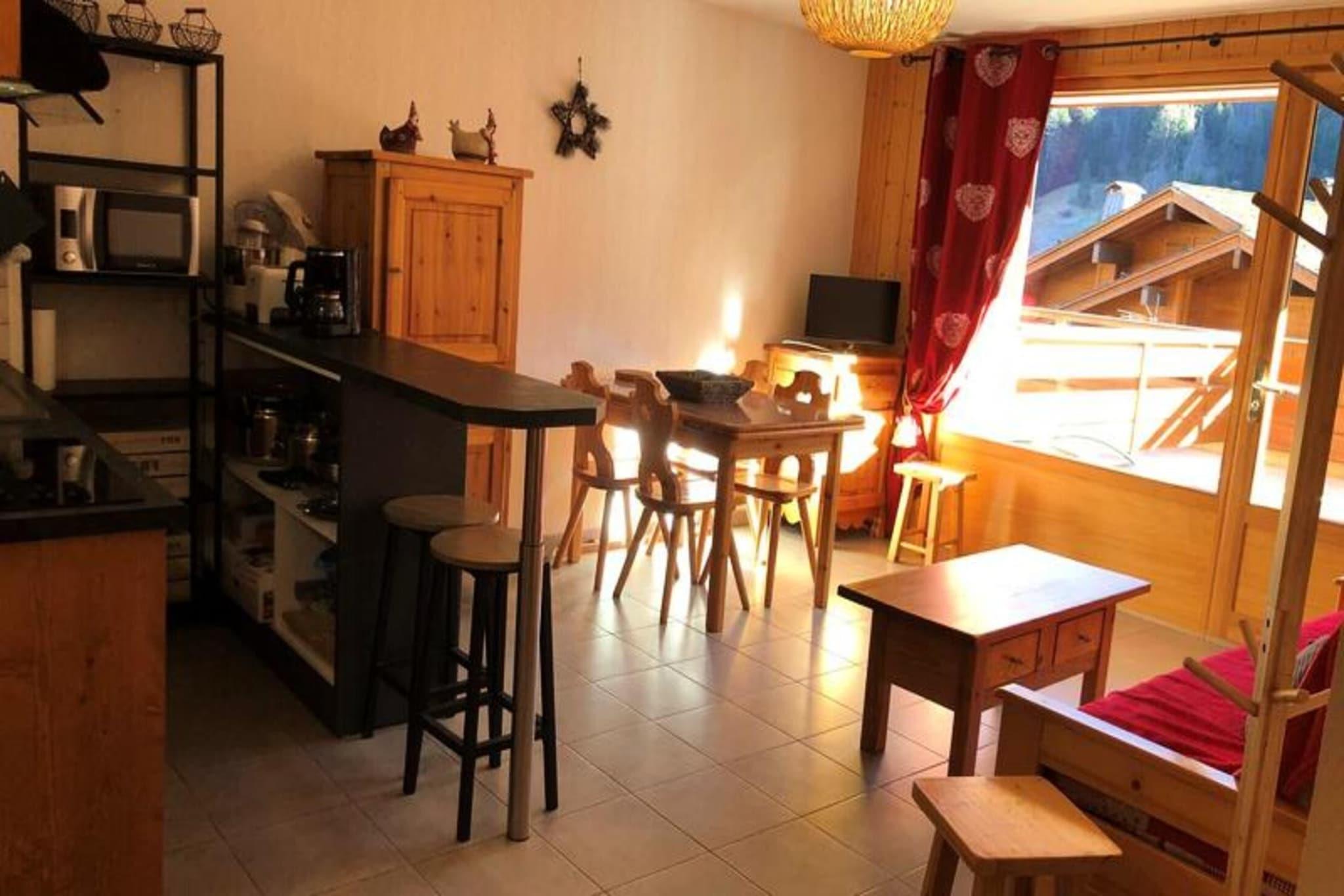 Ejendommen tilbyder sammen med sin indbydende atmosfære et hyggeligt og funktionelt feriehus designet til op til 6 gæster. Lejligheden har en stue med en komfortabel udtrækssofa, perfekt til ekstra soveplads, sammen med et soveværelse med en dobbeltseng (140 cm) og et soveværelse med to enkeltkøjesenge. Indkvarteringen omfatter også en sydvendt terrasse, der giver en fantastisk udsigt over Aravis-massivet og landsbyen. Selvom kæledyr ikke er nævnt, kan gæsterne nyde bekvemmeligheden ved et veludstyret rum med separat badeværelse og toilet. Bemærk venligst, at der ikke er sengelinned og håndklæder, og at der pålægges en turistskat for voksne. Boligen inkluderer en elevator for nem adgang til stuelejligheden. Beliggende i hjertet af området tilbyder lejligheden fremragende nærhed til flere attraktioner. Det er kun en kort køretur fra Annecy SNCF togstation (32 km) og Geneve Lufthavn (52 km), hvilket sikrer bekvem adgang for gæster, der ankommer med tog eller fly. Ejendommen er også inden for rækkevidde af landsbyens butikker og restauranter, hvilket tilføjer dens appel for dem, der ønsker at udforske den lokale kultur og køkken. Den smukke udsigt fra terrassen fremhæver beliggenhedens naturlige charme, med nem adgang til udendørs aktiviteter såsom vandreture eller skiløb i vintermånederne. Den centrale beliggenhed gør det til en god base for at opdage nærliggende attraktioner eller blot slappe af i landsbyen. Lejligheden er udstyret med et tekøkken, der åbner ind i stuen, hvilket giver en problemfri plads til at tilberede måltider. Hvidevarer omfatter komfur og køleskab samt nødvendige køkkengrej til selvforplejning. Opholdsstuen er velindrettet, hvilket giver mulighed for afslapning efter en dag med aktiviteter. Ejendommens separate badeværelse og toilet tilbyder privatliv og bekvemmelighed, mens den store terrasse er et ideelt sted at nyde den omkringliggende udsigt. Selvom sengetøj og håndklæder ikke leveres, kan gæsterne nemt arrangere disse, hvilket sikrer komfort under hele opholdet. Kombinationen af ??praktiske faciliteter og naturskøn udsigt gør denne lejlighed til et godt valg for dem, der søger både komfort og funktionalitet under deres ferie.