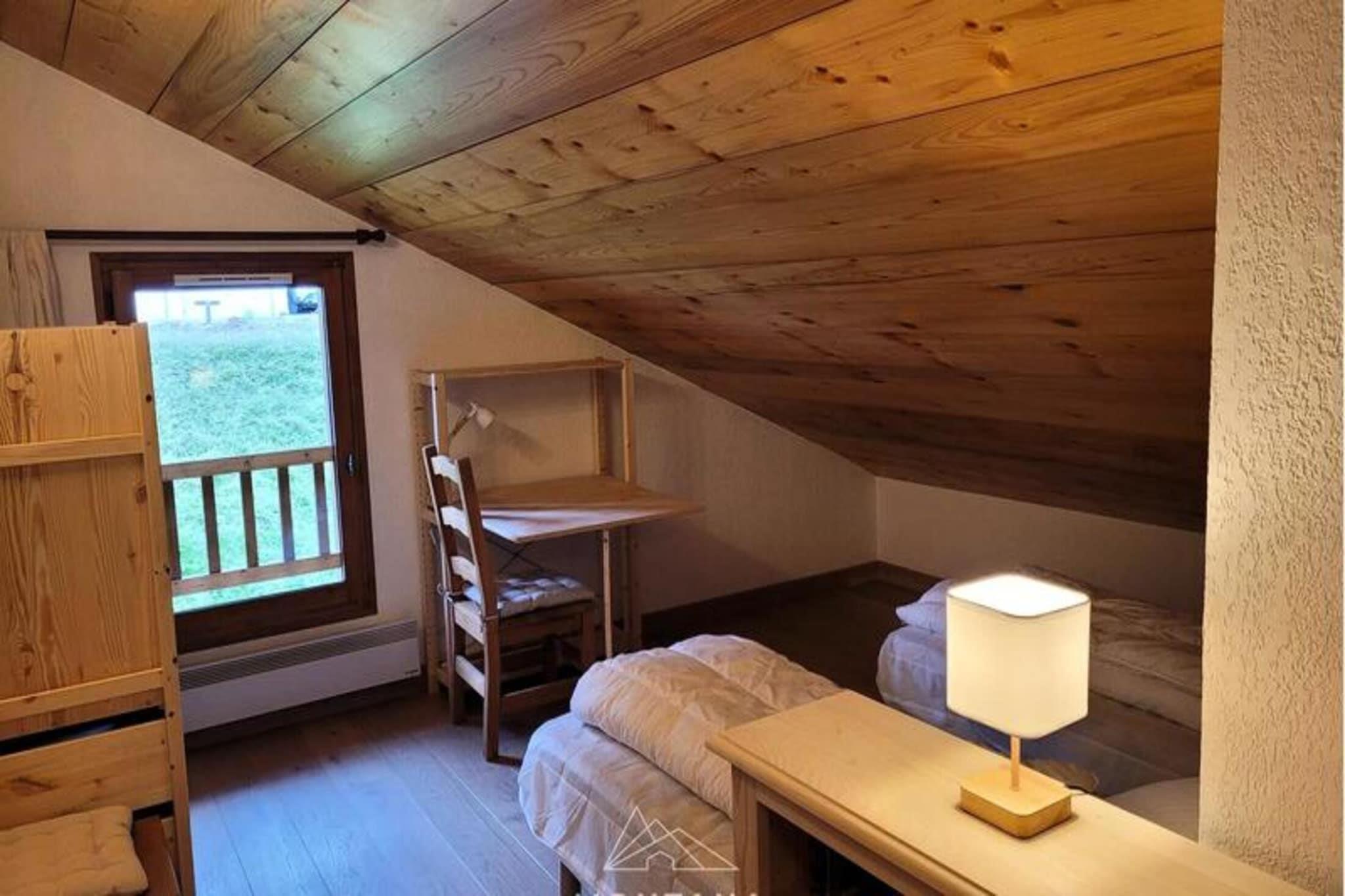 Ejendommen er sammen med sit rummelige design og komfortable layout ideel til familier eller grupper på op til 6 personer. Lejligheden har 3 soveværelser, herunder to dobbeltværelser (160 cm) og et soveværelse med to 90 cm senge, som tilbyder fleksible sovearrangementer. I stuen er der en 140 cm sovesofa, perfekt til ekstra soveplads. Gæsterne kan nyde den sydvestvendte balkon, som giver smuk udsigt over Danay-bjerget og skiskydningsstadionet. Lejligheden er ikke kæledyrsvenlig, og dyr er ikke tilladt. Sengelinned og håndklæder medfølger ikke, men de kan lejes mod et ekstra gebyr. Derudover sikrer obligatorisk rengøring et problemfrit ophold. Lejligheden er bekvemt beliggende med nem adgang til nærliggende attraktioner og rejsestationer. Den charmerende landsby og skiskydningstadion er kun få øjeblikke væk, og giver en naturskøn udsigt fra selve lejligheden. Annecys SNCF-togstation ligger 32 km væk, hvilket gør det til en nem destination for togrejsende. For internationale gæster ligger Genève Lufthavn 52 km derfra, mens Lyon Lufthavn ligger 155 km derfra. Denne centrale beliggenhed giver mulighed for både fredeligt tilflugtssted og nem adgang til nærliggende tjenester, hvilket gør det til et perfekt sted for dem, der ønsker at udforske regionen eller nyde lokale aktiviteter. Lejligheden er udstyret med et fuldt funktionelt køkken åbent til stuen, hvilket giver gæsterne mulighed for at tilberede deres egne måltider. Køkkenet indeholder væsentlige apparater for bekvemmelighed, og opholdsstuen er designet til afslapning. Lejligheden har også et dedikeret skirum i kælderen til opbevaring, samt en individuel lukket garage. Andre faciliteter omfatter en dekorativ pejs, der tilføjer et hyggeligt touch til rummet. Layoutet er yderligere forbedret af en mezzaninloft, ideel til børns leg, hvilket giver både praktisk og komfort.