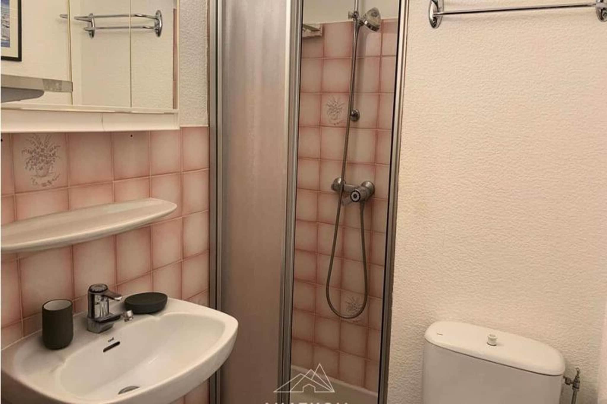 Denne dejlige bolig, beliggende i det fredelige Nant Robert-område, tilbyder et afslappende tilflugtssted kun 5 minutter i bil fra landsbyens centrum og butikker. Lejligheden har en fantastisk udsigt over landsbyen og de omkringliggende bjerge fra sin balkon. Indvendigt har lejligheden et åbent køkken, der fører til stuen, hvor du finder en komfortabel sovesofa (140 cm). Soveværelset er udstyret med en dobbeltseng (140 cm), og der er et ekstra soveområde med en enkeltseng (90 cm), hvilket gør det ideelt til op til 4 personer. Et brusebad med toilet fuldender boligen. Ud over den smukke udsigt over bjergene byder den nærliggende landsby på en bred vifte af attraktioner, herunder skiløb og vandrestier, charmerende lokale butikker og spisesteder. Uanset om du besøger om vinteren for at stå på ski eller om sommeren for at vandre og cykle på mountainbike, giver denne beliggenhed den perfekte base for udendørs eventyr. Bemærk venligst, at boligen er tilgængelig via en 6-etagers stigning fra basen, selvom parkering er tilgængelig ved indgangen til Residence C for dem med køretøjer (parkeringshøjdebegrænsning på 1,95 m). Selvom sengetøj og håndklæder ikke leveres, tilbyder boligen en rolig, naturskøn flugt, perfekt for naturelskere.