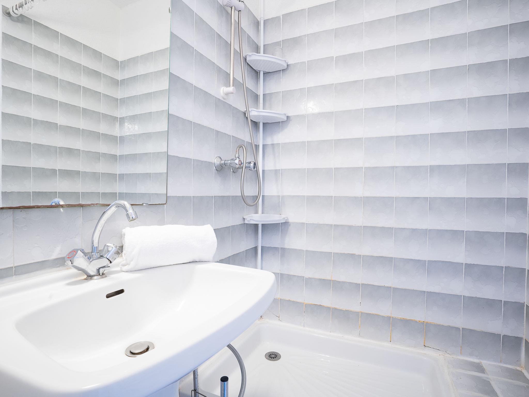 1-room studio 20 m2 on 1st floor. Living/dining room with 1 double sofabed (140 cm, length 200 cm), TV and DVD. Entrance hall with 1 x 2 bunk beds (70 cm, length 180 cm). Kitchenette (mini-oven, 2 ceramic glass hob hotplates, microwave, freezer). Shower, sep. WC. Electric heating. Terrace 6 m2, roofed, east facing position. Terrace furniture. Facilities: Internet (WiFi, free). Parking. Please note: smoke alarm.