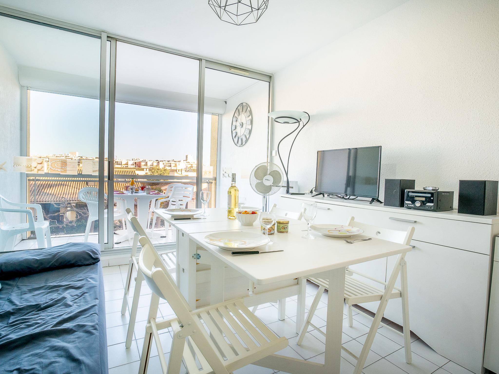 Residence "Voiles d'Or-Gênois". In the district of le Palais de la Mer, on the outskirts, 1.5 km from the centre, 500 m from the sea, 500 m from the beach. Parking, public parking on the road. Shopping centre 20 m, bus stop "HLM ou California" 700 m, railway station 1.6 km, sandy beach "Plage Nord" 500 m, indoor swimming pool 2.3 km, thermal baths "Thalazur Les Bains de Camargue" 4.8 km. Nearby attractions: Casino Flamingo 1.1 km, Seacquarium 1.5 km, Arènes du Grau du Roi 3.4 km, Aigues Mortes 7 km, Grande Motte 13 km, Nîmes 51 km. Hiking paths: Réserve Naturelle de Camargue. Please note: the keys‘ handover takes place by the agency Interhome in Port Camargue, 2 km. Airfield 24 km from the property.