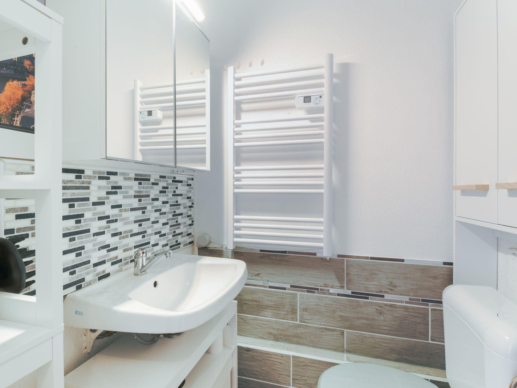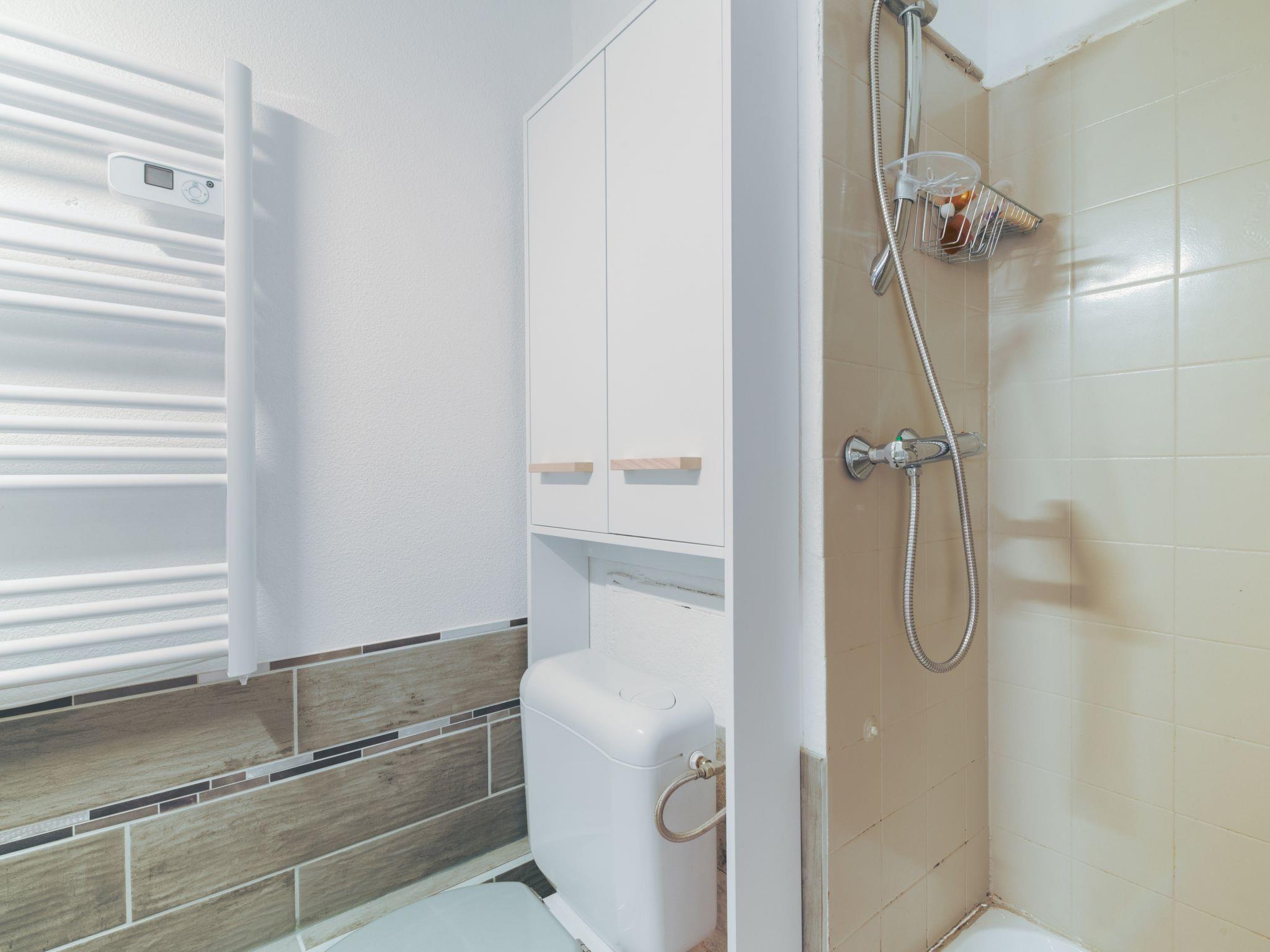 1-room studio 20 m2 on 1st floor. Living/dining room with 1 double sofabed (140 cm, length 190 cm), TV. Kitchen-/living room (2 hot plates, toaster, kettle, microwave, electric coffee machine, Capsules for coffee machine (SENSEO) extra). Shower/WC. Boiler (30 litres). Terrace 6 m2. Covered balcony. Facilities: Internet (WiFi, extra). Parking. Please note: smoke alarm. 301330012604X