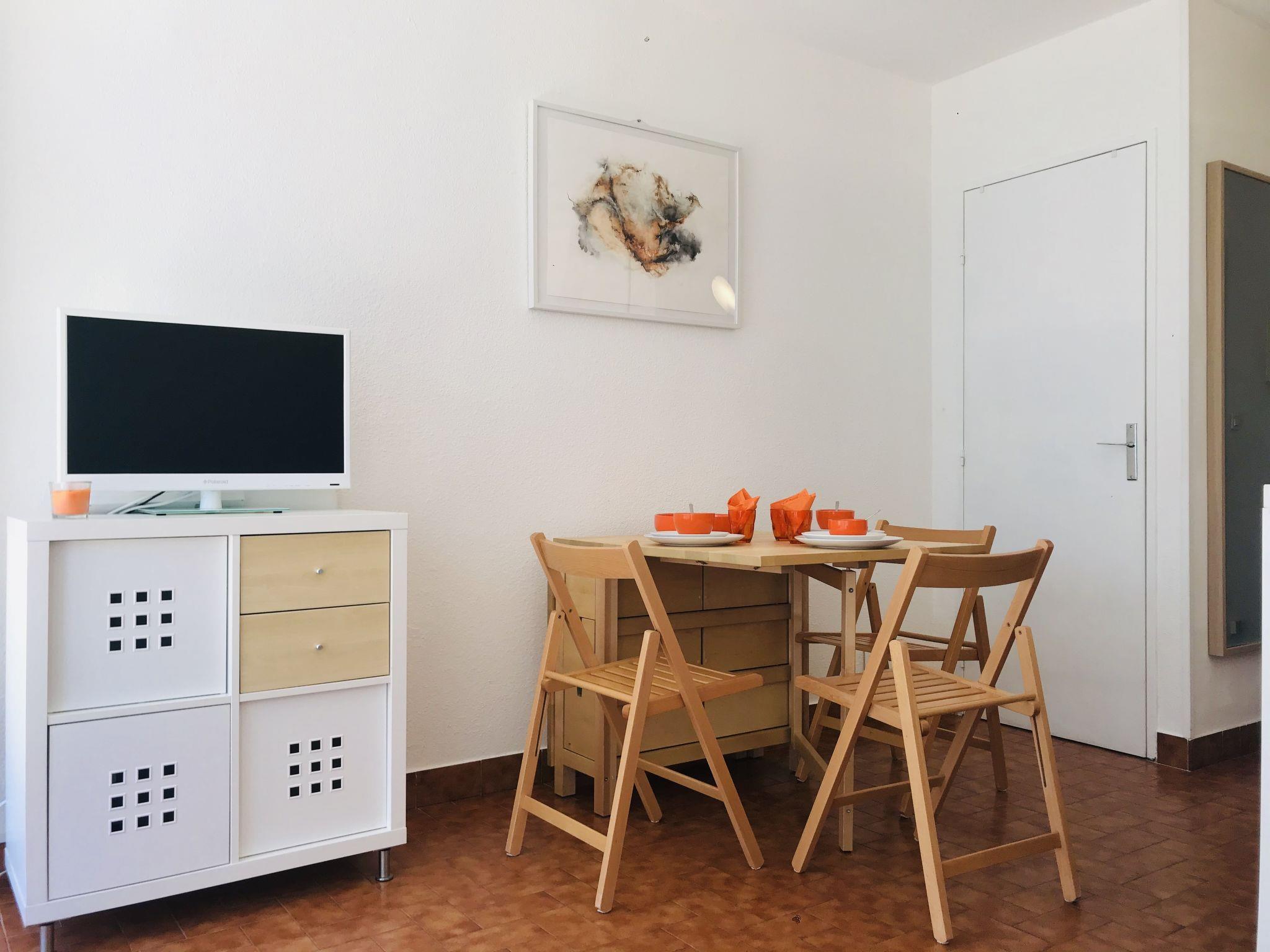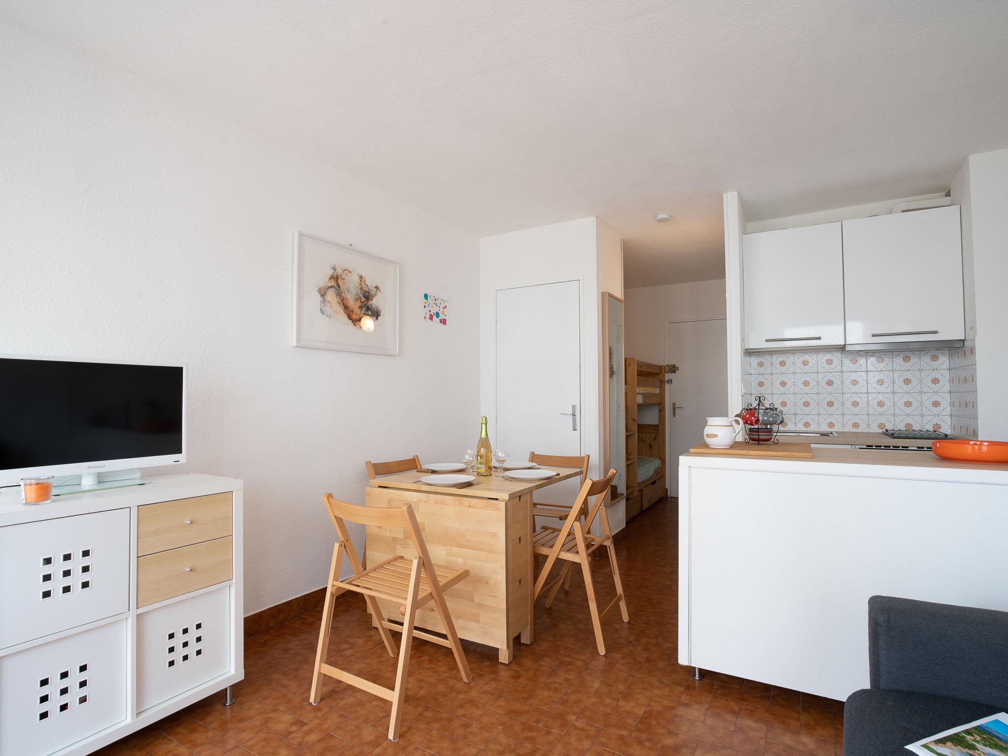 1-room studio 23 m2, on the upper ground floor. Object suitable for 2 adults + 2 children. Living/dining room with 1 double sofabed (140 cm, length 190 cm), TV (flat screen). Exit to the terrace. Sleeping alcove with 1 x 2 bunk beds (80 cm, length 190 cm). Kitchenette (oven, 2 induction hot plates, microwave, electric coffee machine). Bath/WC. Terrace 5 m2. Terrace furniture. Facilities: Internet (WiFi, extra). Parking space n 8. Please note: non-smokers only. Smoke alarm. Instead of an enclosed bedroom, some sleeping areas are located in an open-plan area (gallery, alcove, etc.).
