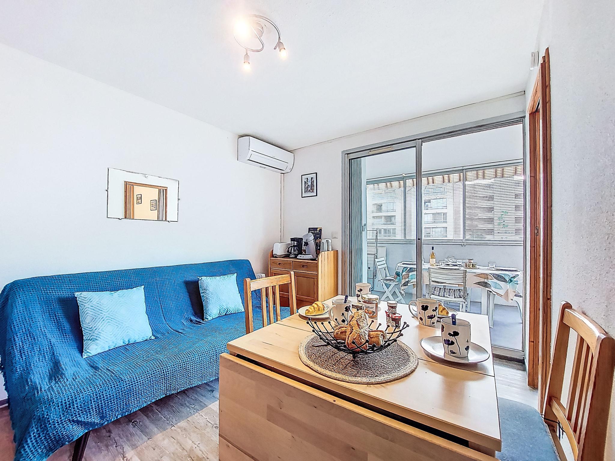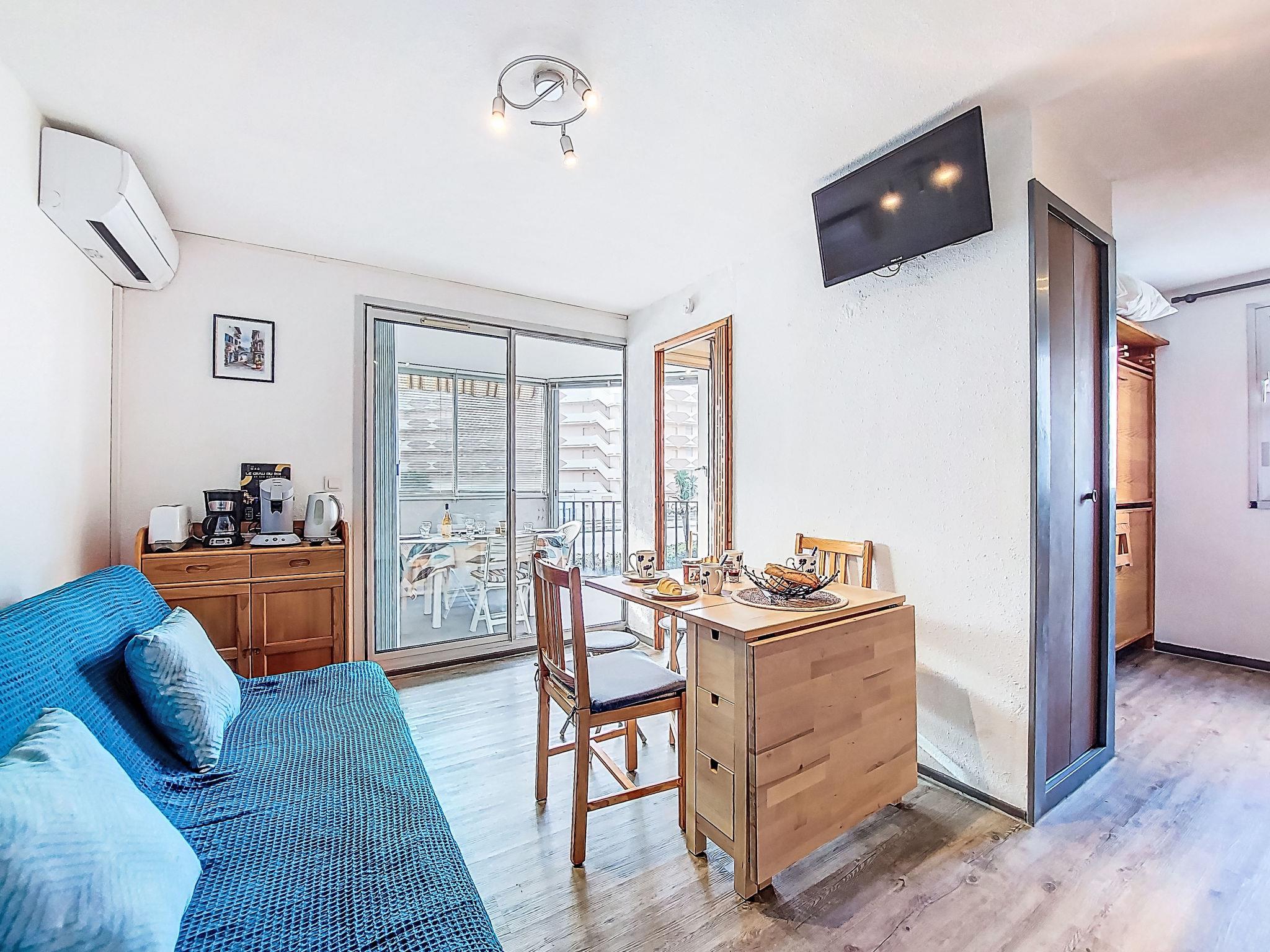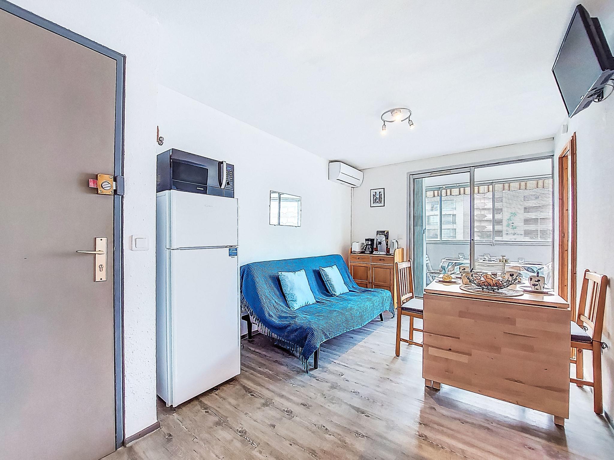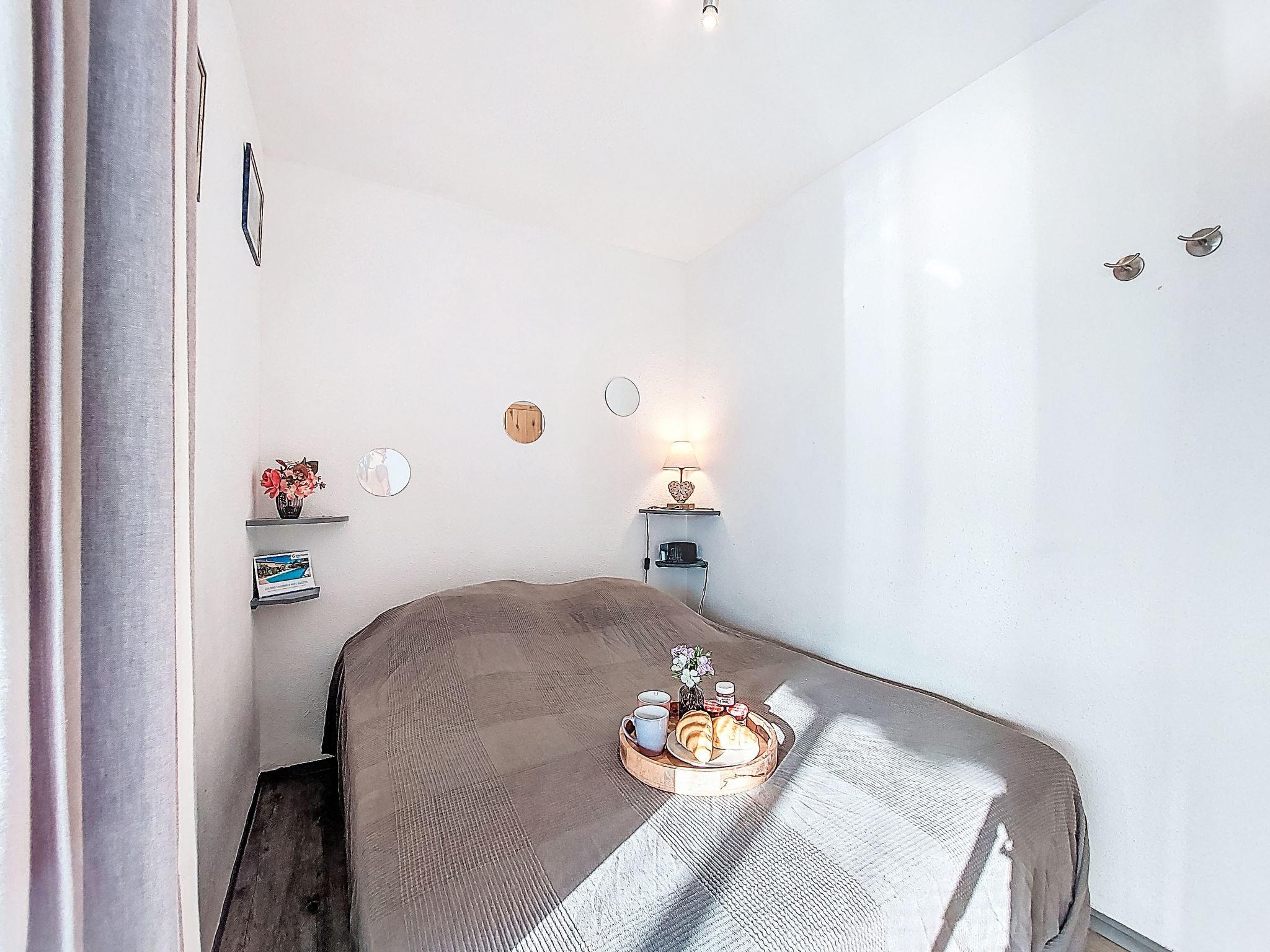 2-room apartment 25 m2 on 1st floor. Cosy furnishings: living/dining room with TV and air conditioning. 1 room with 1 double bed (140 cm, length 190 cm). Sleeping alcove with 1 x 2 bunk beds (80 cm, length 190 cm). Kitchenette (2 ceramic glass hob hotplates, freezer, combination microwave). Shower, sep. WC. Electric heating. South-west facing position. Terrace furniture, covered balcony. Facilities: Internet (WiFi, extra). Parking. Please note: maximum 1 small pet/ dog allowed. Smoke alarm. Instead of an enclosed bedroom, some sleeping areas are located in an open-plan area (gallery, alcove, etc.). Offer by a private individual according to Art. 155, IV of CGI.