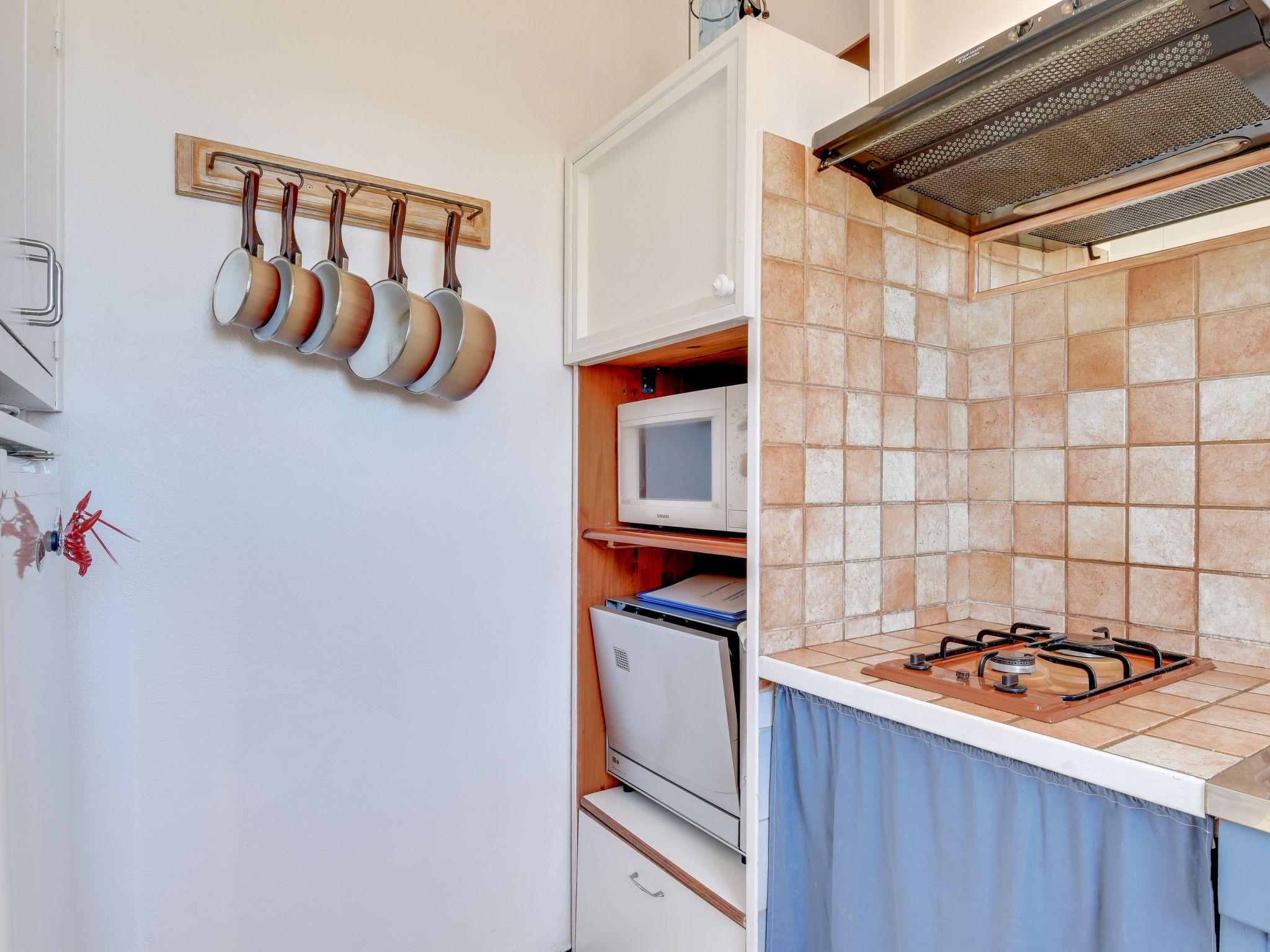1-room studio 25 m2 on 1st floor. Living/dining room with 1 double sofabed (160 cm, length 200 cm), TV (flat screen). Exit to the terrace. Entrance hall with 1 x 2 bunk beds (90 cm, length 190 cm). Kitchenette (2 hot plates, dishwasher, microwave, electric coffee machine). Shower/WC. Terrace 8 m2. Terrace furniture. Facilities: Internet (WiFi, extra). Please note: apartment street side. No parking. Maximum 1 pet/ dog allowed. Smoke alarm.