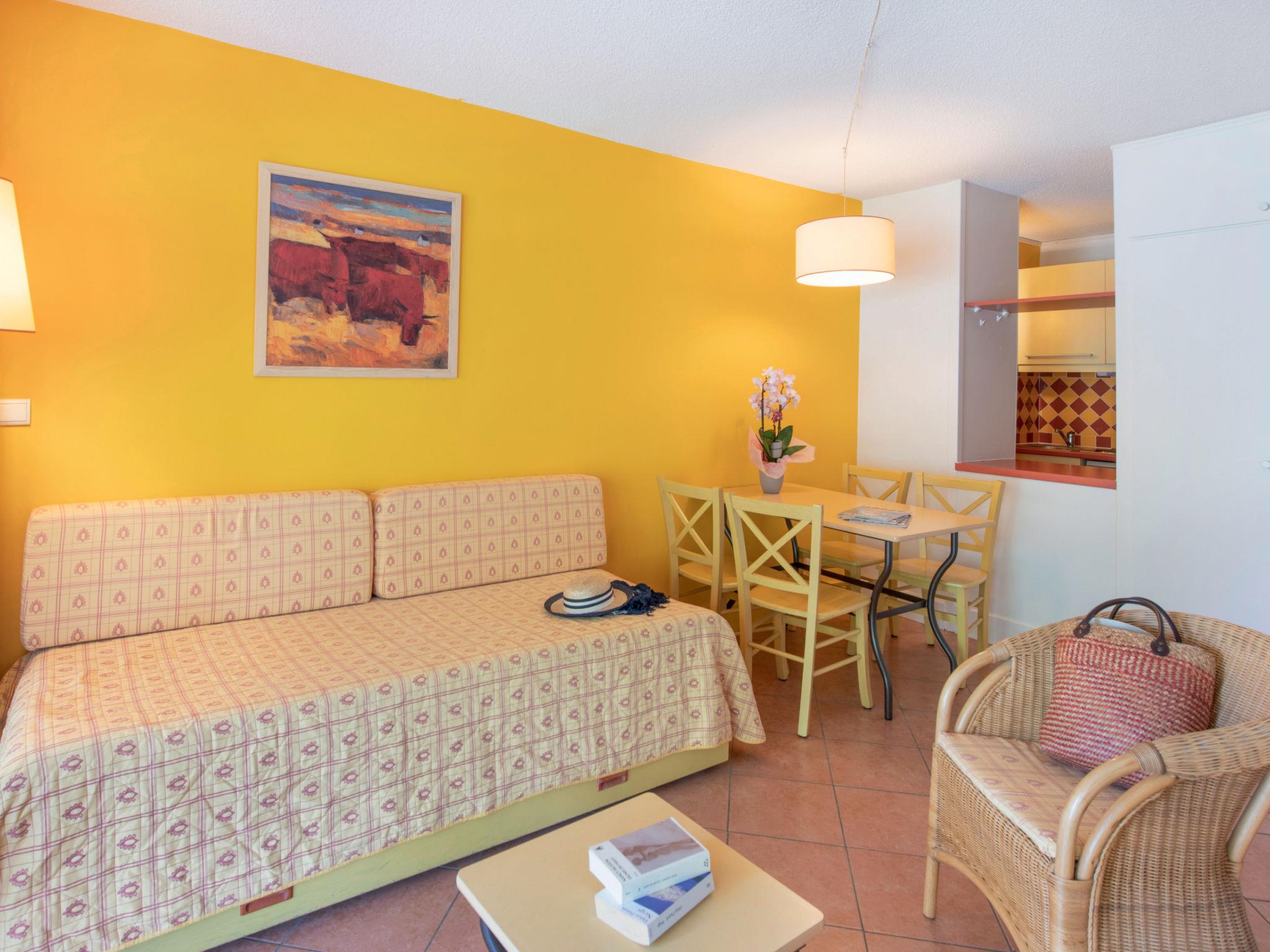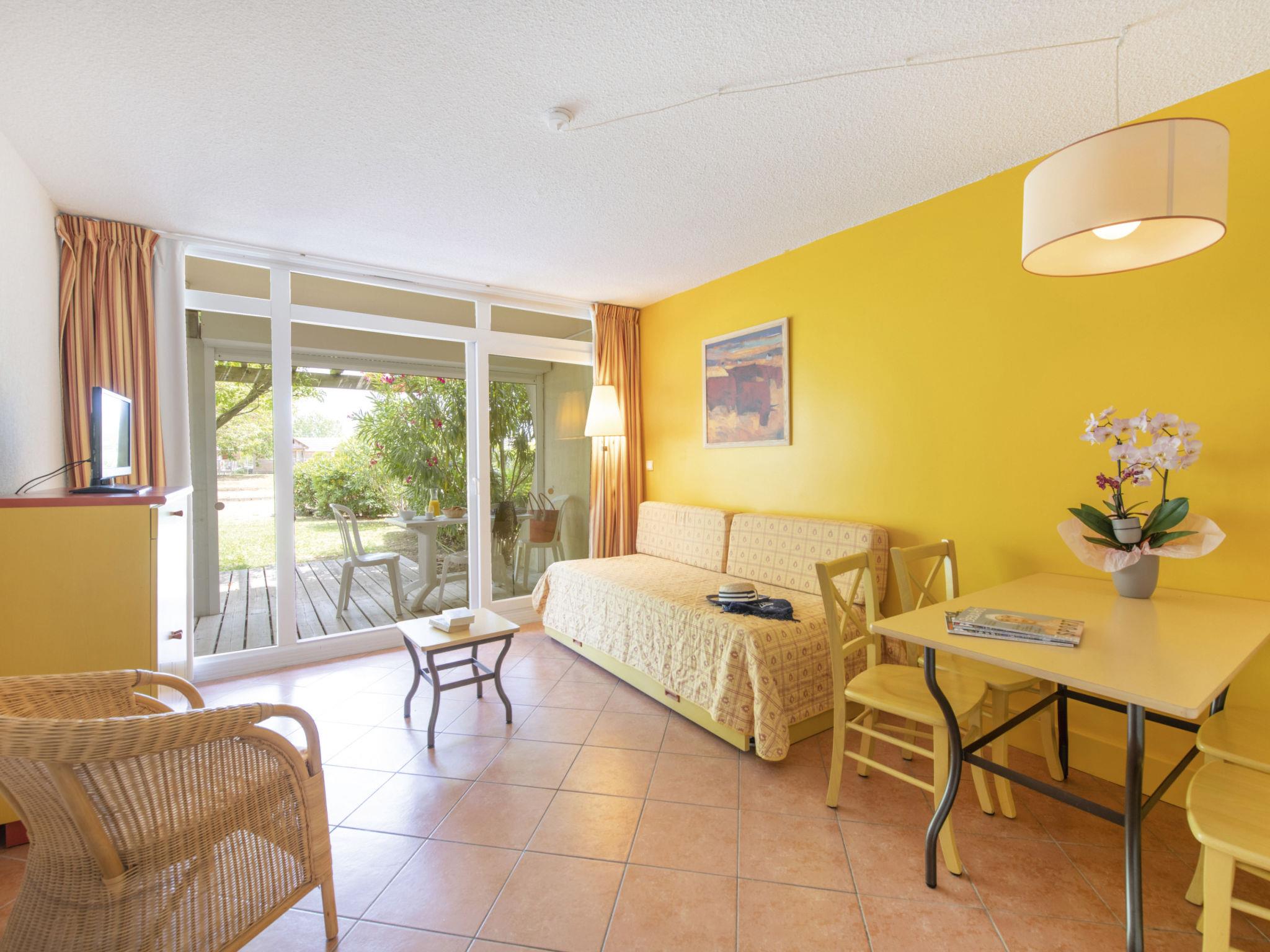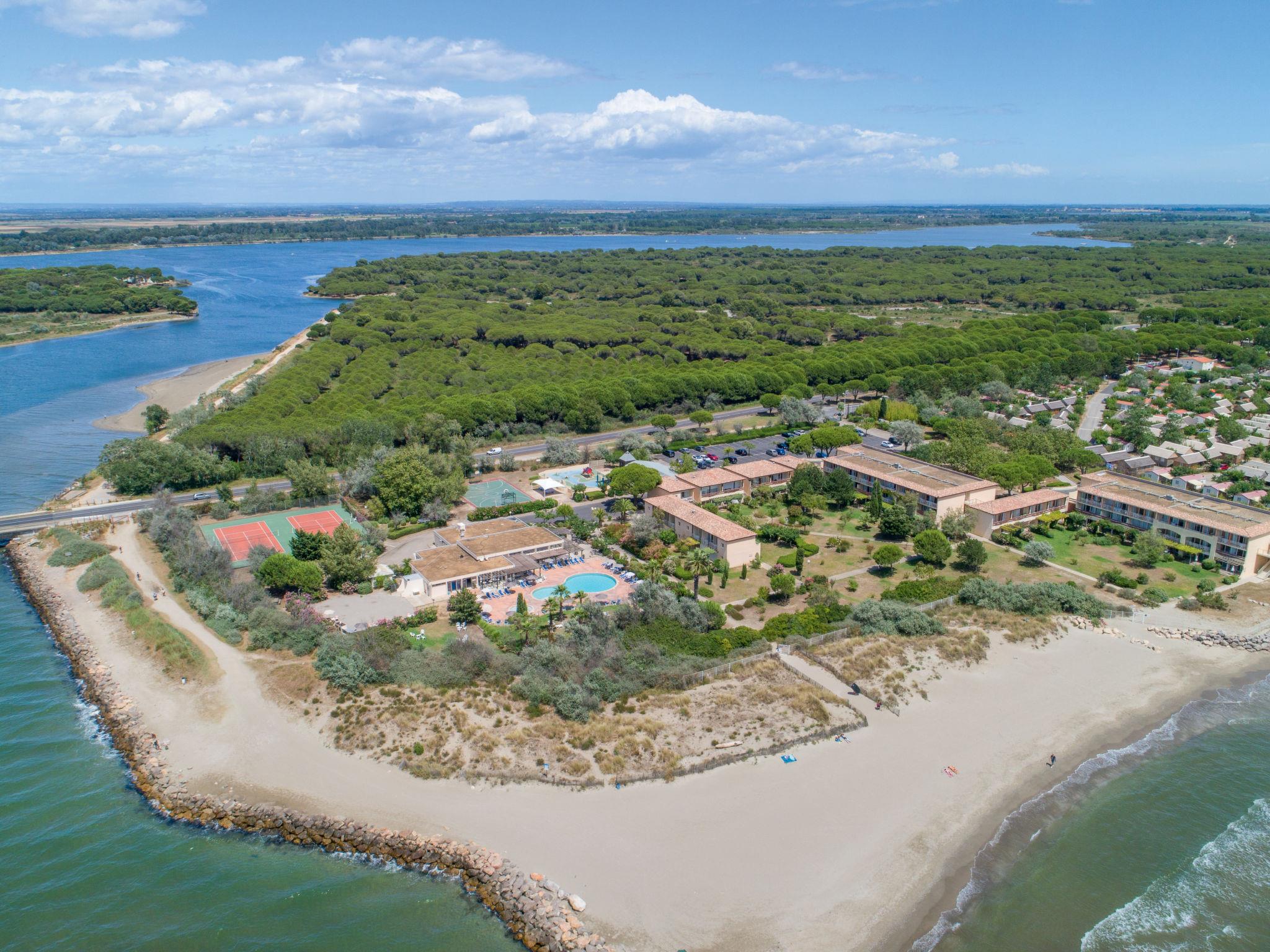 Holiday village "Sowell Résidence Les Sablons". 57 apartments in the residence. 3.5 km from the centre of Grau du Roi, 4 km from the centre of La Grande Motte, 9 km from the centre of Aigues Mortes, in the heart of the city, 50 m from the sea, 50 m from the beach, direct access to the beach. For shared use: well-kept garden 3 ha, swimming pool heated (100 m2, seasonal availability: 01.Jun. - 31.Sep.) with internal staircase. Children's pool, tennis (2 x hard court), table tennis, boccia, children's playground. In the complex: reception, bar, WiFi, solarium, washing machine, tumble dryer (extra). Breakfast and half board possible (extra). Parking. Grocery 2 km, bakery 2 km, bicycle rental 800 m, bus stop 150 m, railway station "Gare du Grau-du-Roi" 5 km, thermal baths "La Grande Motte" 2.5 km. Sports harbour 4 km, golf course (18 hole) 4 km, sailing school 800 m, riding stable 10 km. Nearby attractions: Parc Aquatique 2 km, Montpellier 28 km, Arles / Nîmes 50 km, Les Saintes Maries de la Mer 70 km, Uzès 80 km, Béziers 90 km. Please note: the photograph shows a typical example. The holiday properties may differ in living space, floorplan, equipment and furnishing.
