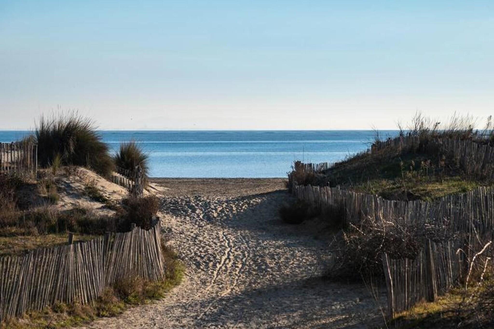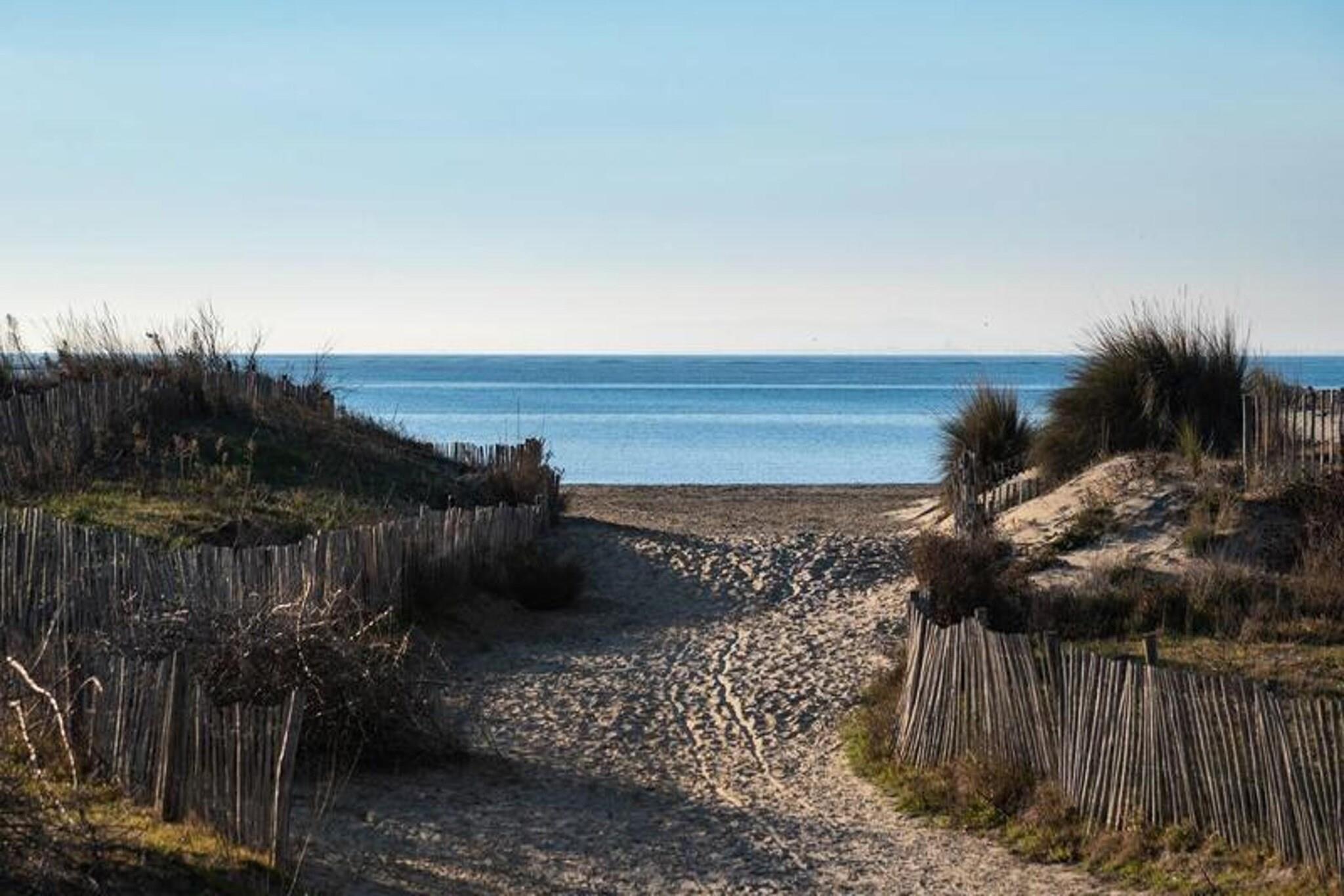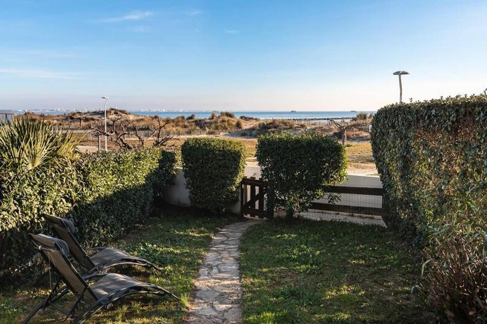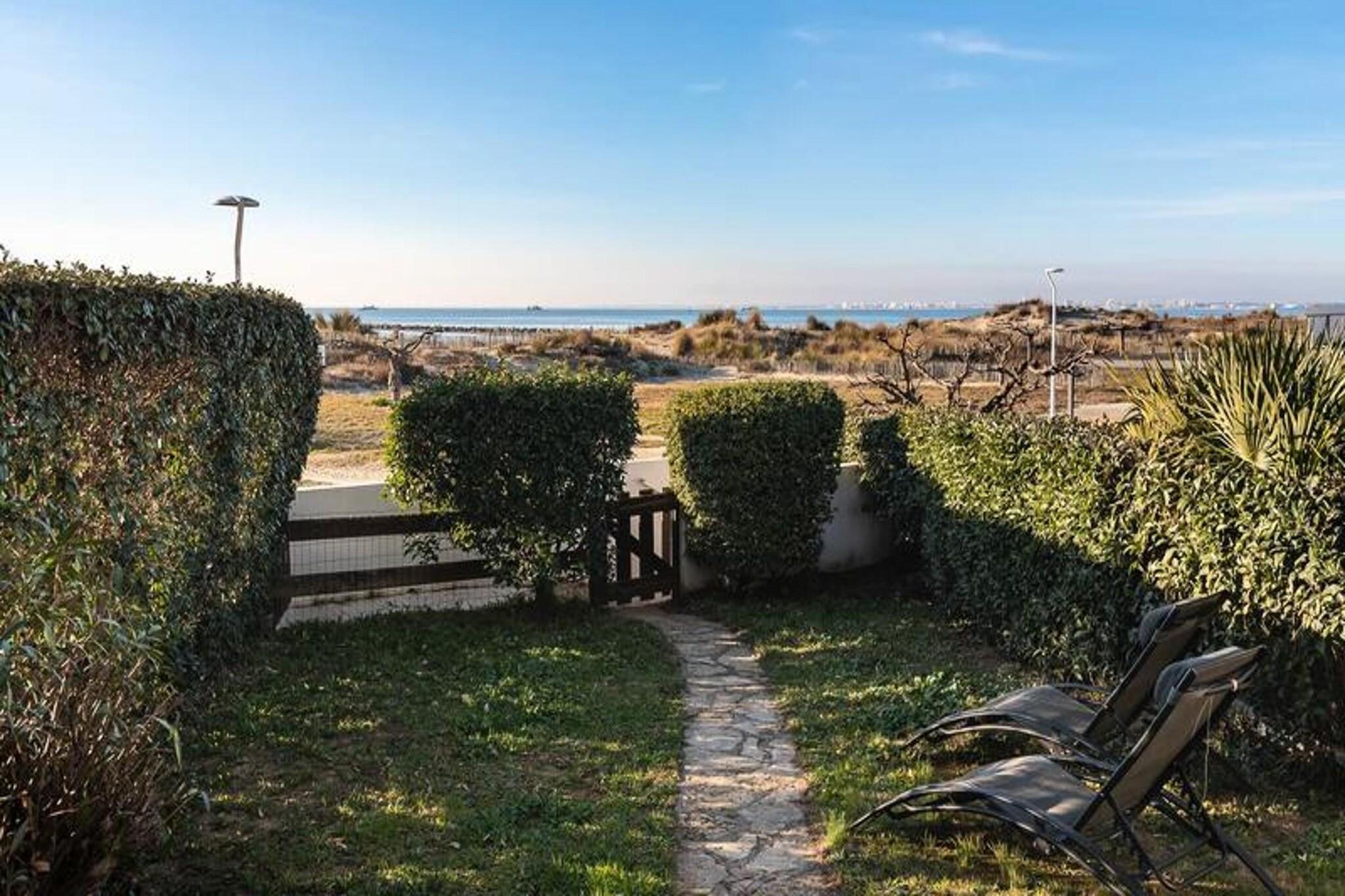 Denne luksuriøse 2-værelses lejlighed tilbyder et behageligt ophold for op til 7 personer. I stuen er der en 2-personers sovesofa, og der er en rummelig kabine med 3 senge (80 cm hver). Soveværelset indeholder en 140 cm seng, hvilket sikrer en afslappende søvn for alle gæster. Lejligheden er ikke kæledyrsvenlig, hvilket giver et roligt miljø for alle besøgende. Lejligheden ligger direkte på South Beach og giver øjeblikkelig adgang til sandet og havet. Indkøbscentret ligger kun 300 meter væk, og en række sportsaktiviteter og thalassoterapi-muligheder er i nærheden. Ejendommen ligger også 500 meter fra forskellige caféer og lokale markeder, som tilbyder nem adgang til spise- og shoppingoplevelser. Lejligheden har et fuldt udstyret køkken med opvaskemaskine, mikroovn, ovn og køleskab/fryser, perfekt til at tilberede måltider under dit ophold. Badeværelset har en vaskemaskine, og et separat toilet sikrer privatlivets fred. En privat terrasse og have ved havet giver et fredeligt sted at slappe af med direkte adgang til stranden.