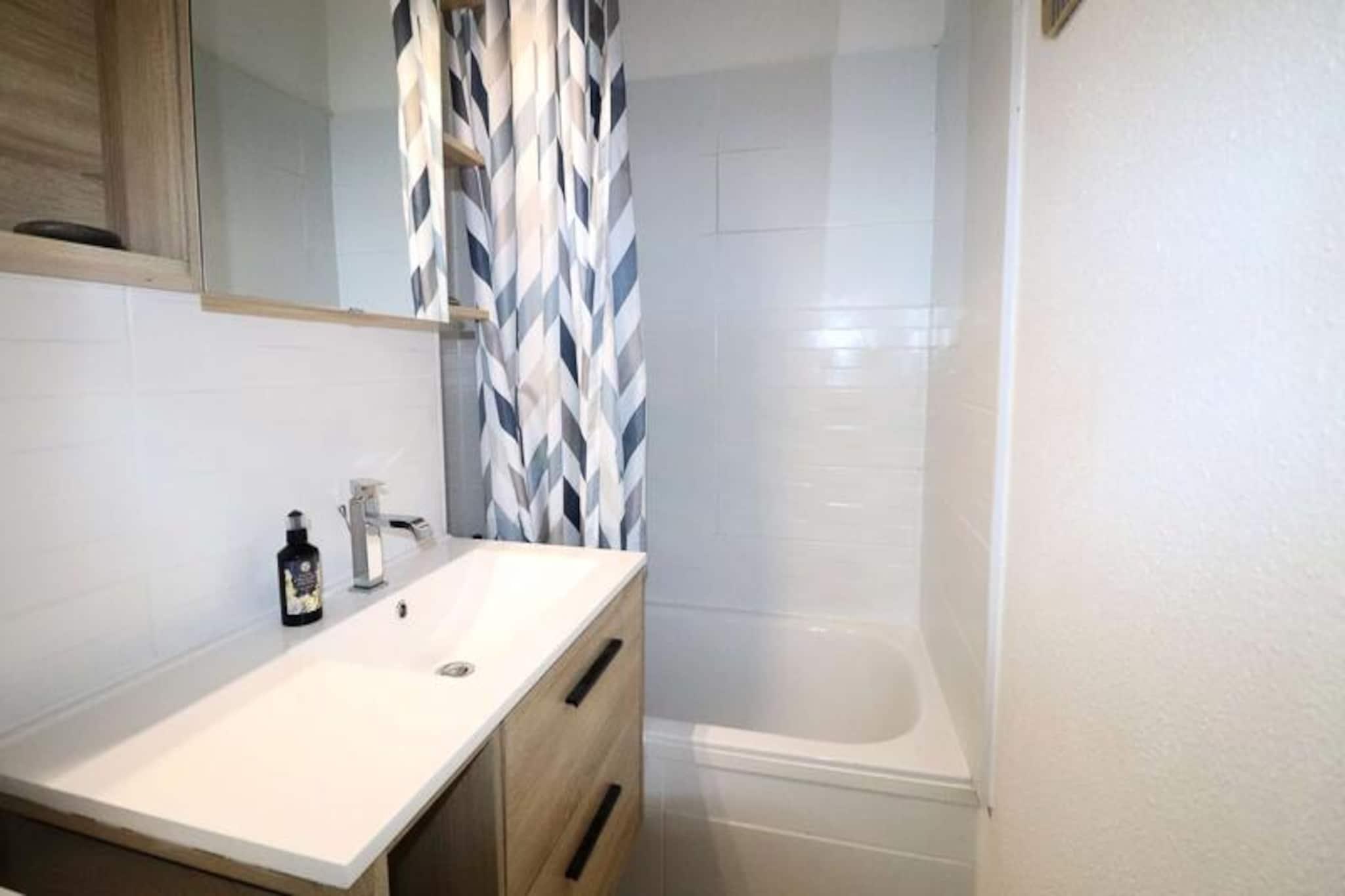 Nyd middelhavscharmen i Le Grau-du-Roi med denne dejlige ferielejlighed, perfekt beliggende kun en kort gåtur fra den gyldne sandstrand. Beliggende på øverste etage i en rolig bolig, tilbyder dette airconditionerede tilflugtssted en fredelig oase med dejlig udsigt over de omkringliggende haver, hvilket gør det til en idyllisk ramme for din næste kystferie. \n\nLejligheden er designet til at rumme op til seks gæster og har to hyggelige soveværelser: et med to enkeltsenge og et andet med en komfortabel dobbeltseng. Et moderne brusebadeværelse og separat toilet tilføjer ekstra bekvemmelighed, mens den lyse opholdsstue indbyder til afslapning. Det fuldt udstyrede køkken er perfekt til at tilberede friske, sommerlige måltider, som du kan nyde i dit hjem væk fra hjemmet. Gå ud på den charmerende loggia, et roligt sted at slappe af efter en dag med eventyr ved havet. \n\nEn gangsti fører direkte til stranden, hvor du kan nyde solen eller Middelhavets blide bølger. I nærheden finder du butikker med alle dine fornødenheder, og det livlige bycentrum ligger kun 15 minutters gang væk og tilbyder en række aktiviteter, spisemuligheder og lokale attraktioner at udforske. For ekstra bekvemmelighed inkluderer ejendommen en sikker underjordisk garage. \n\nUanset om du søger et afslappende tilflugtssted eller en aktiv kystferie, er denne lejlighed i Le Grau-du-Roi din port til uforglemmelige minder ved havet. Book nu og oplev det bedste af denne charmerende kystdestination!