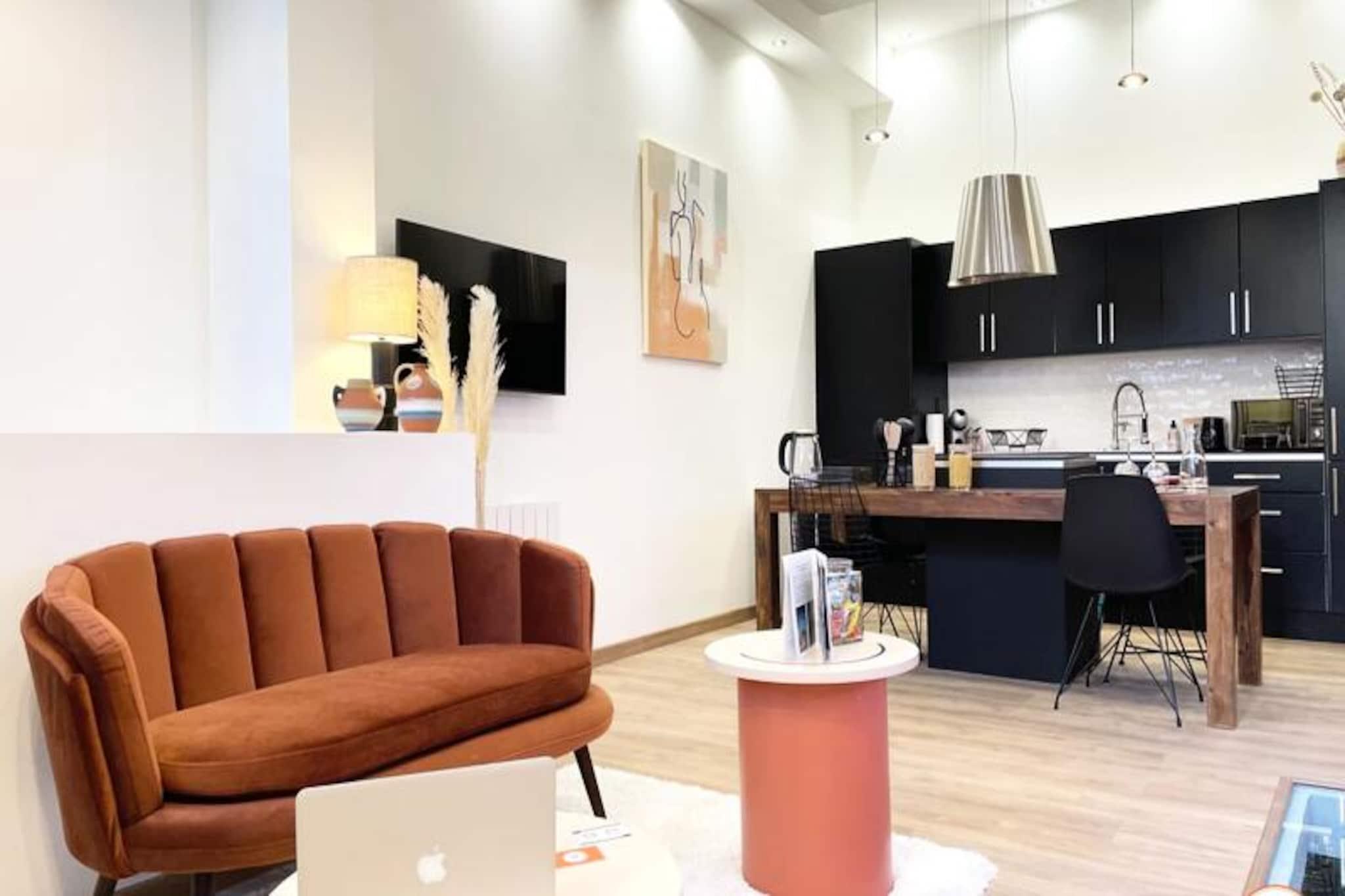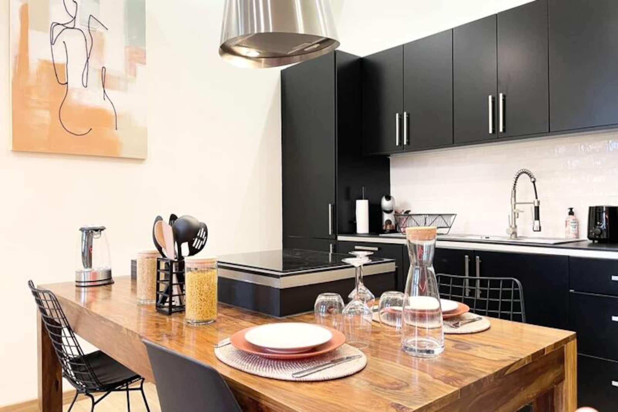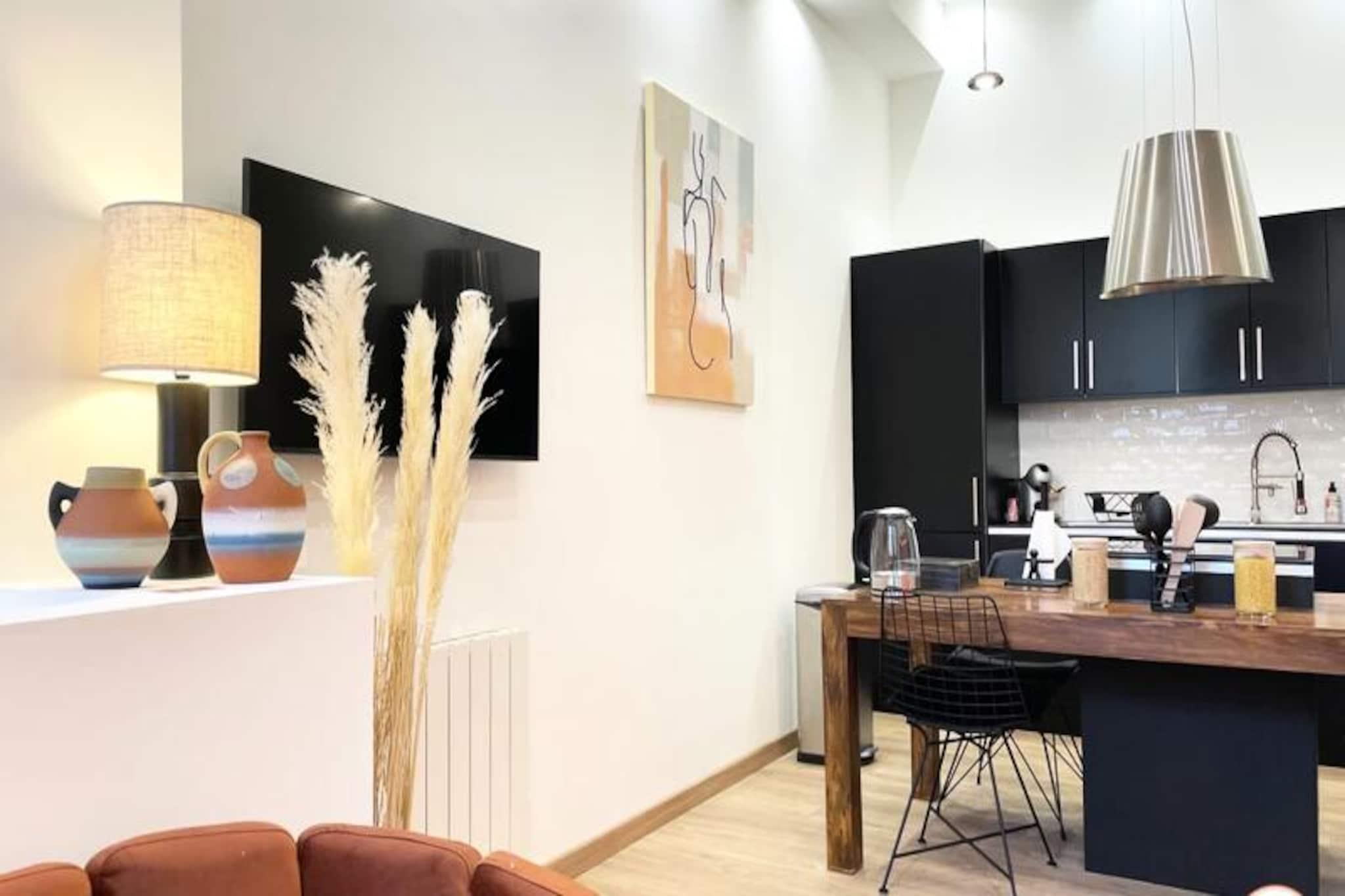 Dette charmerende feriehus tilbyder et hyggeligt tilflugtssted, komplet med en overdådig queen-size seng til ultimativ afslapning. Den er gennemtænkt designet til at byde pelsede ledsagere velkommen, hvilket gør den til et kæledyrsvenligt tilflugtssted. Gæsterne kan slappe af med moderne bekvemmeligheder såsom et Smart TV med adgang til streaming og en læsehjørne til stille øjeblikke. Hjemmet sikrer en fredelig atmosfære, hvilket gør det perfekt til par eller små familier, der søger en flugt. Beliggende kun 300 meter fra det travle bycentrum, er denne ejendom omgivet af pulserende attraktioner. Gå en tur til nærliggende caféer, nyd lokale delikatesser på markeder, eller udforsk kulturelle perler, herunder museer og gallerier, inden for en radius på 500 meter. Naturentusiaster vil sætte pris på stranden, kun 700 meter væk, med en fantastisk udsigt og rolige gåture. Kvarteret blander bekvemmelighed med charme og lover et berigende ophold. Feriehuset har fuldt udstyret køkken, så gæsterne kan tilberede måltider i ro og mag. Et rummeligt badeværelse med italiensk bruser bidrager til komforten, mens gennemtænkte detaljer som håndklæder og gratis te og kaffe forbedrer oplevelsen. Valgfrie faciliteter såsom privat parkering og kuraterede romantiske opstillinger kan arrangeres, hvilket sikrer et skræddersyet ophold.