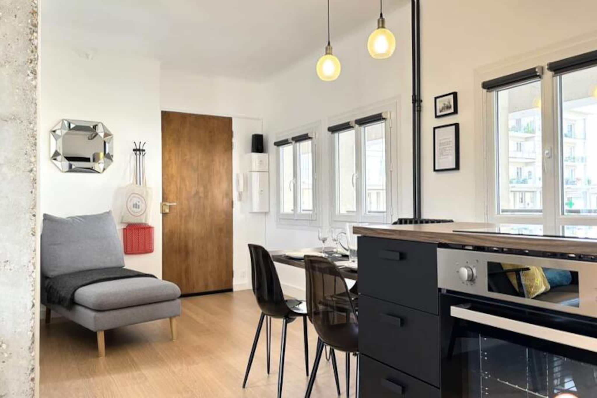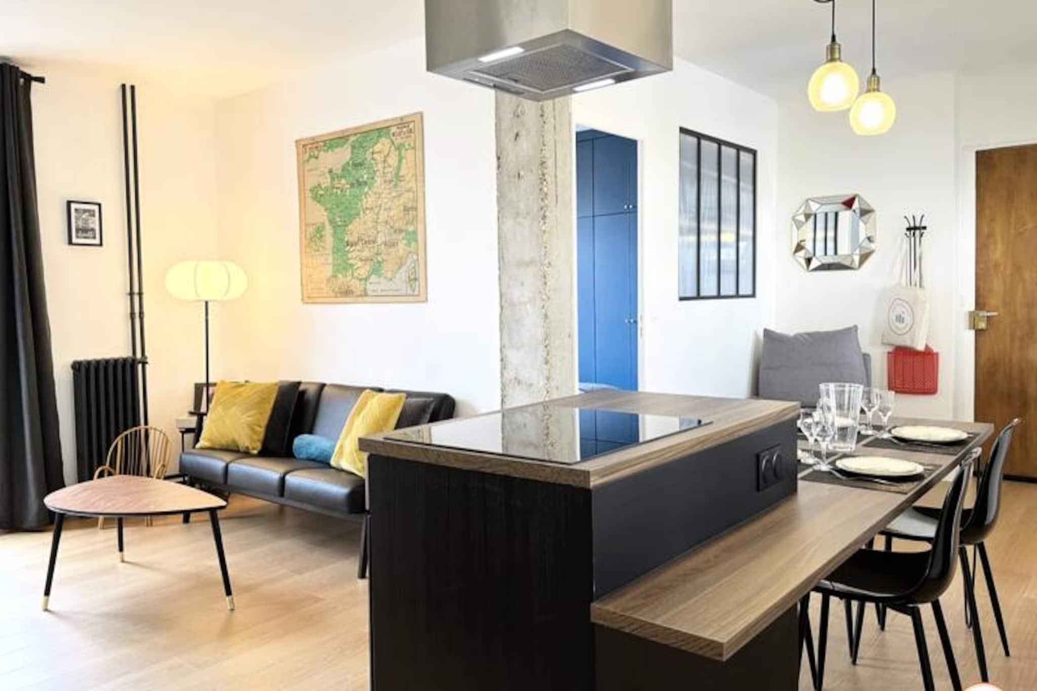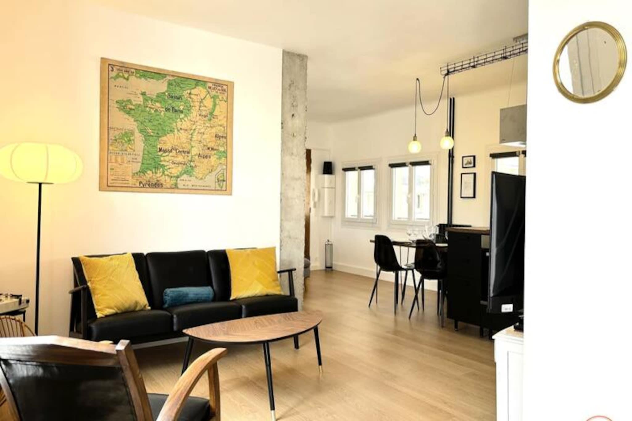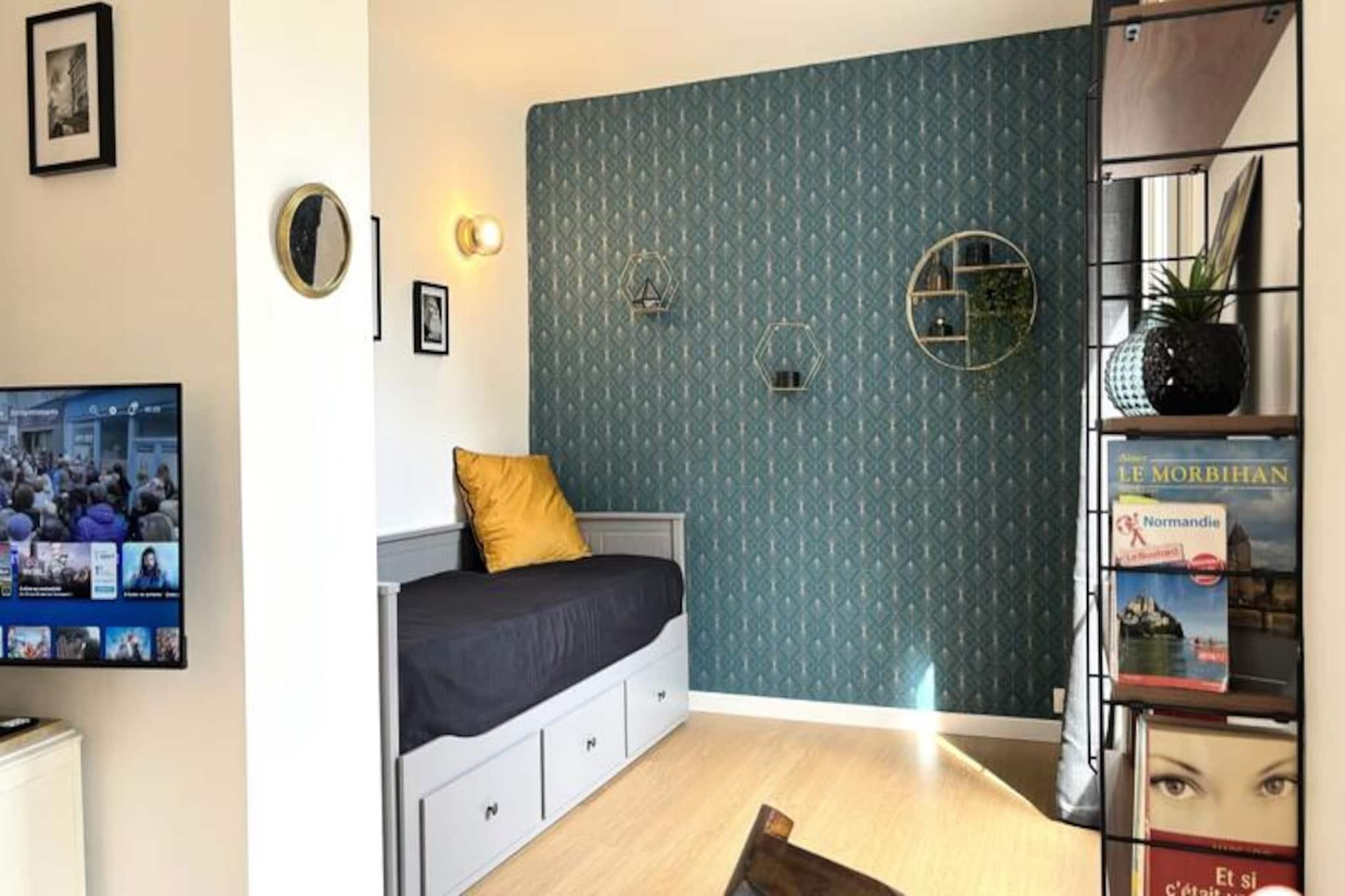 Denne charmerende lejlighed, beliggende i hjertet af Le Havre, tilbyder et komfortabelt og stilfuldt ophold for op til 4 personer. Boligen er rolig og sikker, selvom den ikke har en elevator. Lejligheden har et sovev?relse med en queensize-seng, en stue med en sovesofa, der kan laves om til to enkeltsenge, og et badev?relse med bruser i italiensk stil. Faciliteterne omfatter et smart-tv, gratis Wi-Fi, vaskemaskine samt senget?j og h?ndkl?der. Ejendommen er ikke-ryger og ikke k?ledyrsvenlig. Lejligheden er perfekt beliggende, kun 300 meter fra stranden, 200 meter fra r?dhuset og f? skridt fra butikker, caf?er og lokale markeder. Du kan nemt udforske Le Havres UNESCO-listede arkitektur, og popul?re steder som Les Halles og krydstogthavnen er inden for g?afstand. Det n?rliggende Carrefour-marked og en r?kke lokale butikker sikrer, at du har alt, hvad du beh?ver til dit ophold. Lejligheden er fuldt udstyret til et behageligt ophold, herunder et fuldt udstyret k?kken med en central ?, k?leskab, ovn, mikroovn, kaffemaskine og elkedel. Et komfortabelt opholdsomr?de og separat afslapnings-/l?seplads sikrer g?sterne rigelig plads til at slappe af. Parkering er tilg?ngelig i n?rheden med gratis parkering for elbiler og n?rliggende sporvogns- og busstoppesteder for nem adgang til byen.