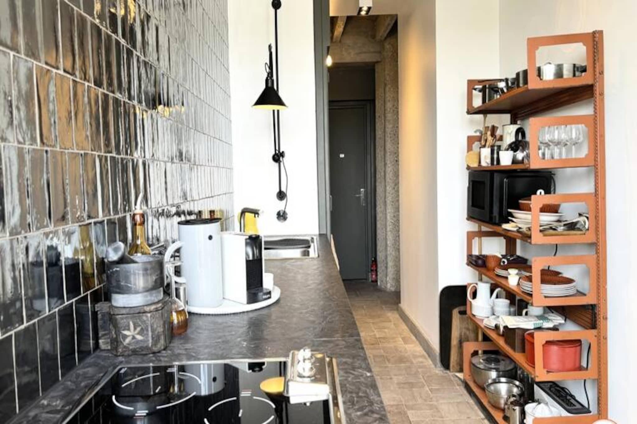 Denne charmerende lejlighed, ideel til 2 personer, har et soveværelse med en kvalitets dobbeltseng (140x200 cm), et påklædningsværelse og direkte adgang til en balkon med fri udsigt over Le Havre. Opholdsområdet omfatter en komfortabel lædersofa, et Samsung Smart TV og en spiseplads. Det fuldt udstyrede køkken er ideelt til at tilberede måltider med køleskab, mikroovn, Nespresso-kaffemaskine og elkedel. Badeværelset har bruser i italiensk stil, og der er separat toilet. Lejligheden er beliggende i en rolig, sikker bygning, og kæledyr er ikke tilladt. Lejligheden ligger i hjertet af Le Havre, kun 500 meter fra stranden og tæt på diverse butikker, caféer og markeder. Rådhuset ligger lige ved siden af, og nærliggende attraktioner omfatter krydstogthavnen, kasinoet og de vigtigste bycentre. Les Halles, et populært shoppingsted, ligger kun 100 meter derfra, og et Carrefour-marked er åbent dagligt. Lejligheden er perfekt placeret til at nyde Le Havres kulturelle og arkitektoniske vidundere, herunder dens bygninger, der er opført på UNESCOs verdensarvsliste. Indvendigt byder lejligheden på et fuldt udstyret køkken og yderligere faciliteter såsom en vaskemaskine, gratis WiFi og et Smart TV. Rummet er lyst og stilfuldt, med en lang altan, der byder på en fredelig atmosfære. Parkering er tilgængelig i nærheden, og lejligheden er godt forbundet med sporvogn og busser for nem udforskning af byen.