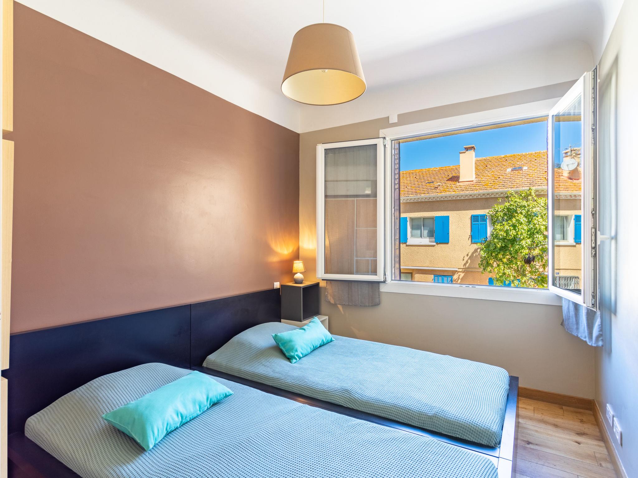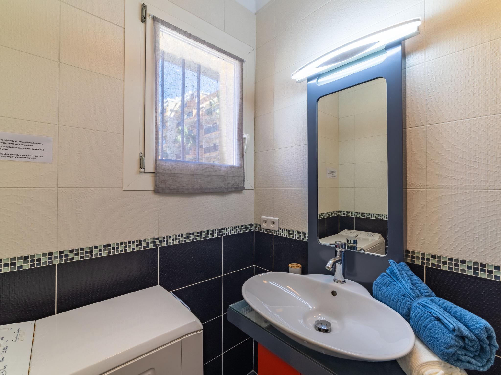 3-room apartment 54 m2 on 1st floor, south facing position. Comfortable and beautiful furnishings: living/dining room with flat screen, DVD and air conditioning. Exit to the balcony. 1 room with 1 french bed (160 cm, length 200 cm), air conditioning. 1 room with 2 beds (90 cm, length 200 cm), air conditioning. Small kitchen (oven, dishwasher, 2 induction hot plates, toaster, kettle, microwave, freezer, electric coffee machine). Exit to the balcony. Shower, sep. WC. Electric heating. Balcony 6 m2, small balcony 4 m2. Balcony furniture, electric barbecue. Facilities: washing machine, iron, hair dryer. Internet (WiFi, extra). Please note: non-smokers only. Maximum 1 small pet/ dog allowed. TV only FR. Accommodation classified 1 star by an approved organization. 83070002236TO