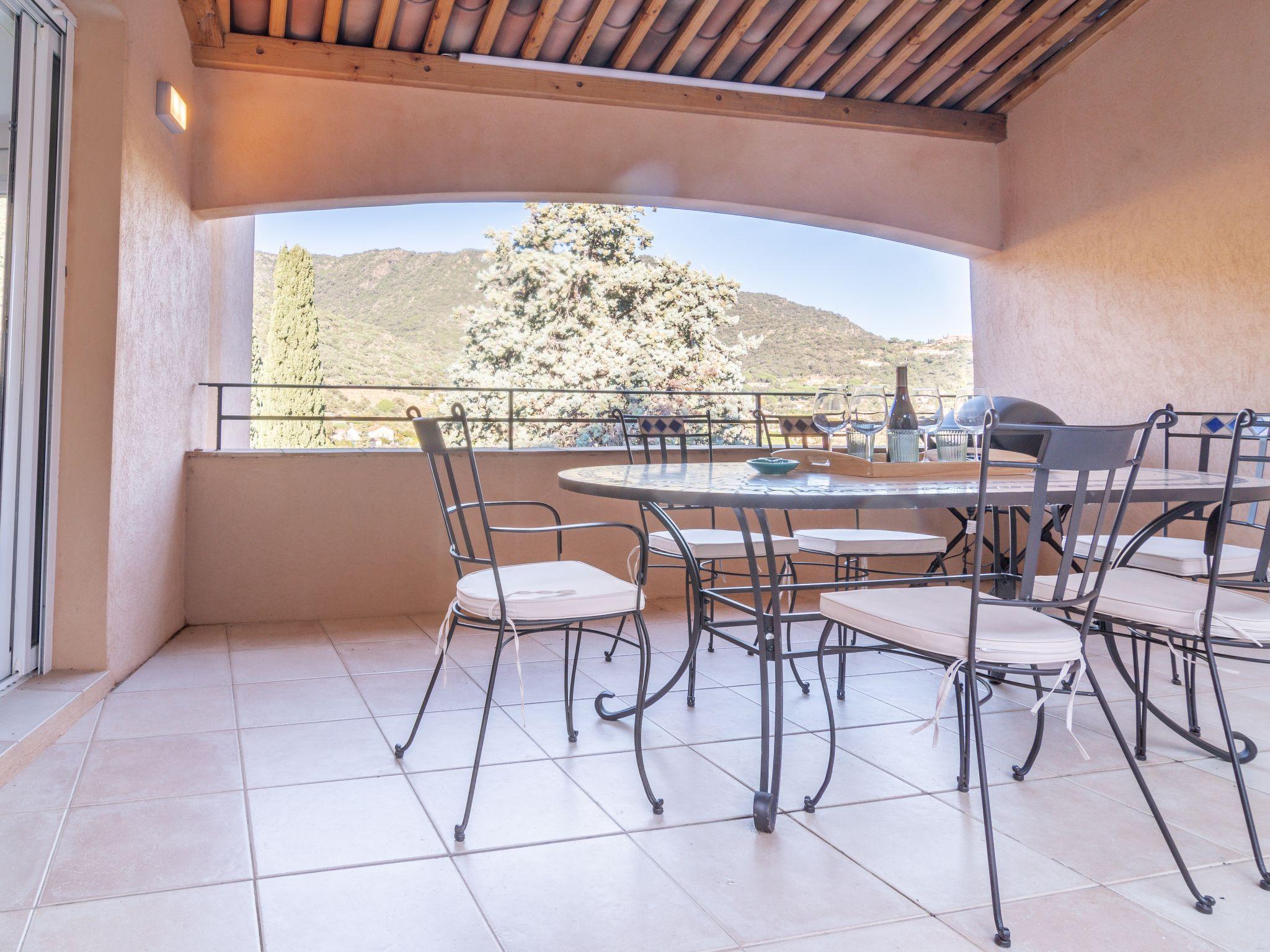 4-room terraced house 100 m2 on 2 levels. Spacious, beautiful and tasteful furnishings: 1 room, west facing position with 1 french bed (140 cm, length 200 cm), air conditioning. Exit to the terrace. 1 room, west facing position with 2 beds (90 cm, length 190 cm), air conditioning. Bathroom, sep. WC. Electric heating. Upper floor: living/dining room with TV (flat screen), air conditioning. Exit to the terrace. 1 room with 1 french bed (160 cm, length 200 cm). Open kitchen (3 hot plates, oven, dishwasher, toaster, kettle, microwave, electric coffee machine, Capsules for coffee machine (Nespresso) extra). Shower, sep. WC. 2 small terraces, west facing position, large terrace, south facing position and west facing position. Terrace furniture, electric barbecue, deck chairs (4). Very beautiful view of the countryside. Facilities: washing machine, iron, hair dryer. Internet (WiFi, free). Garage. E-charging station. Please note: non-smoking house. TV only FR. Smoke alarm. Cellar. Sea view from the terrace at the top of the garden. Offer by a private individual according to Art. 155, IV of CGI. 83070001773F6