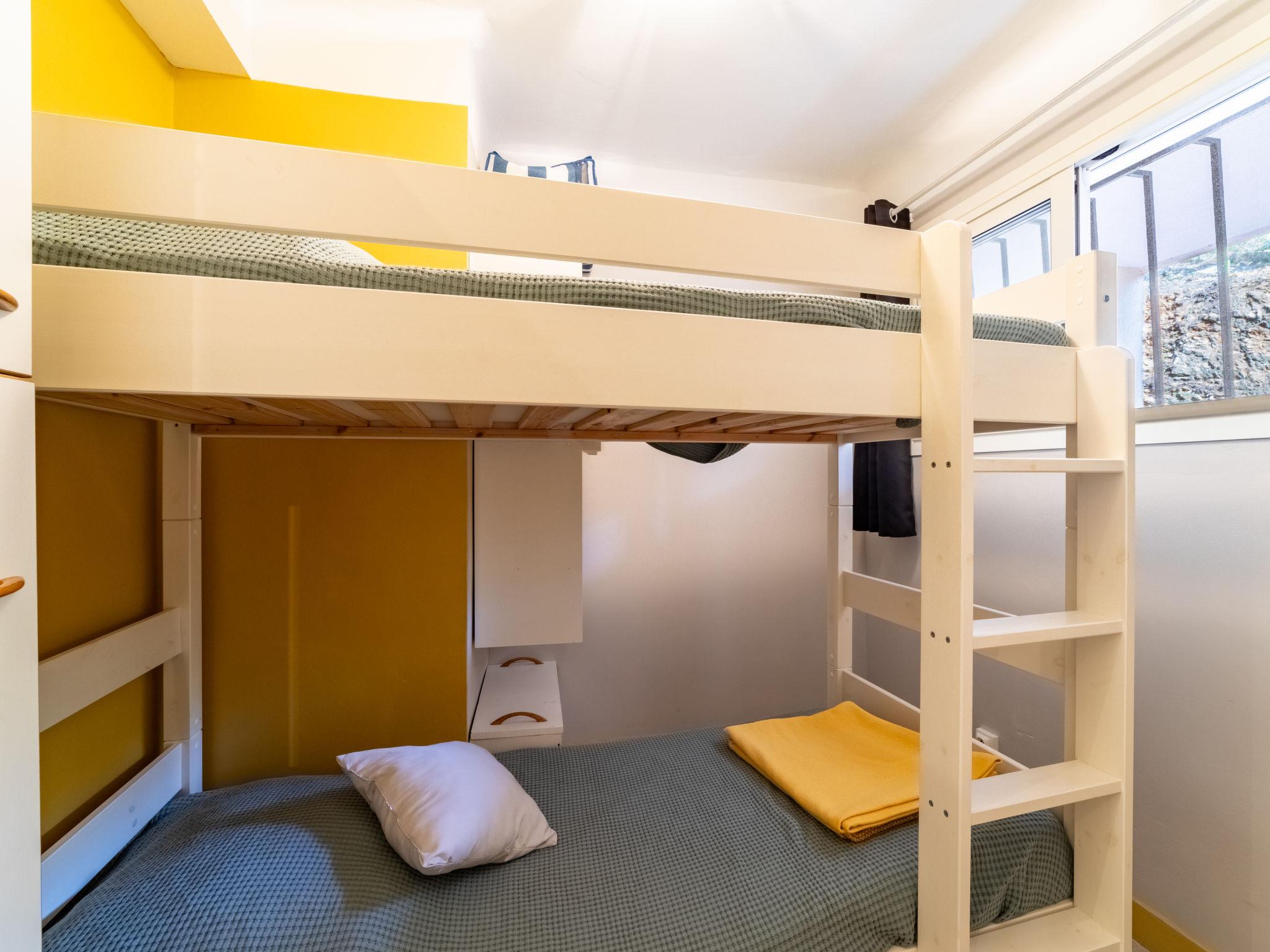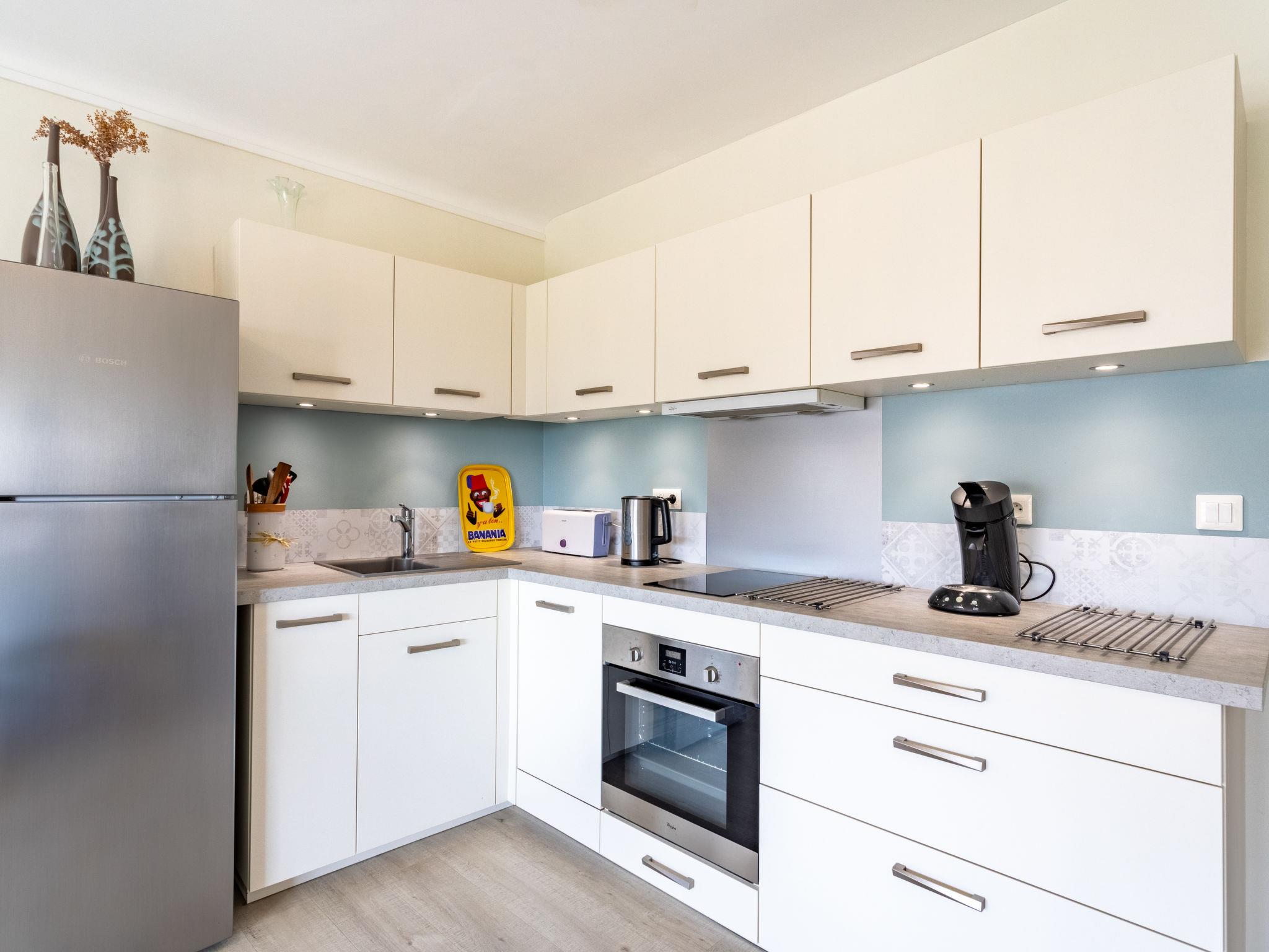 3-room apartment 45 m2 on 2nd floor. Object suitable for 2 adults + 2 children. Comfortable and beautiful furnishings: living/dining room with dining table and TV (flat screen), air conditioning. Exit to the balcony. 1 room with 1 french bed (160 cm, length 190 cm). 1 small children's room with sliding door with 1 x 2 bunk beds (80 cm, length 190 cm). Open kitchen (oven, dishwasher, 2 induction hot plates, toaster, kettle, microwave, freezer). Shower/WC. Electric heating. Balcony 6 m2. Balcony furniture. Side view of the sea. Facilities: washing machine, hair dryer. Internet (WiFi, extra). Please note: non-smokers only. TV only FR. Smoke alarm. Crossing apartment. Air conditioning installation in March 2024. 83070 000183 QI