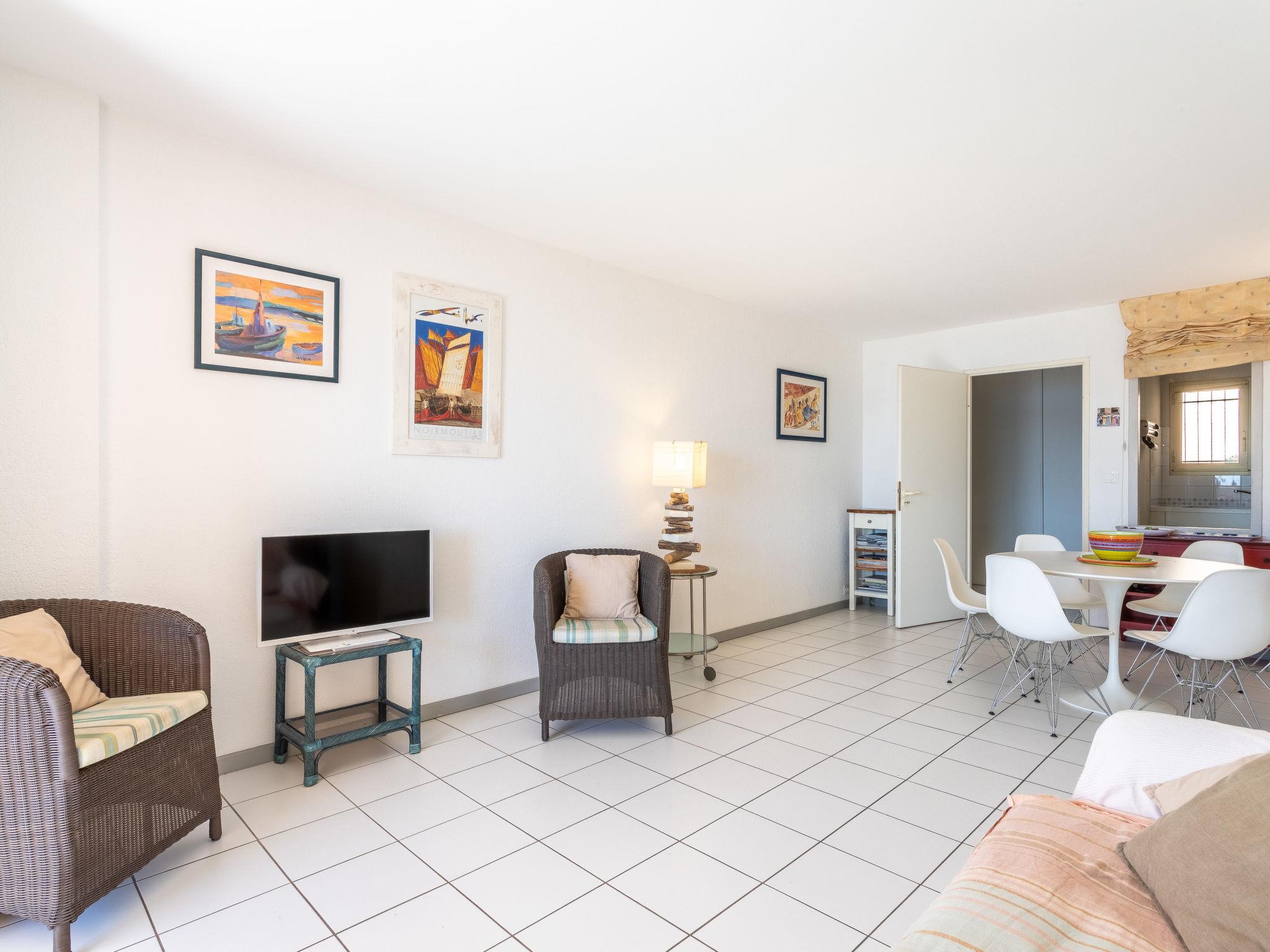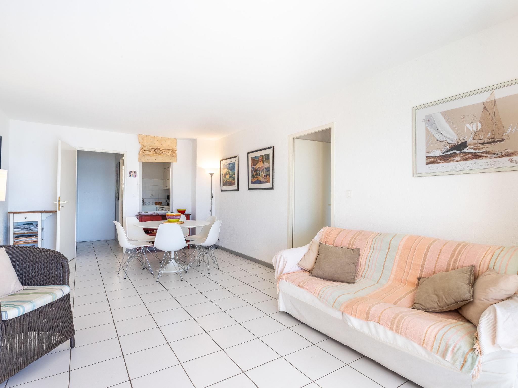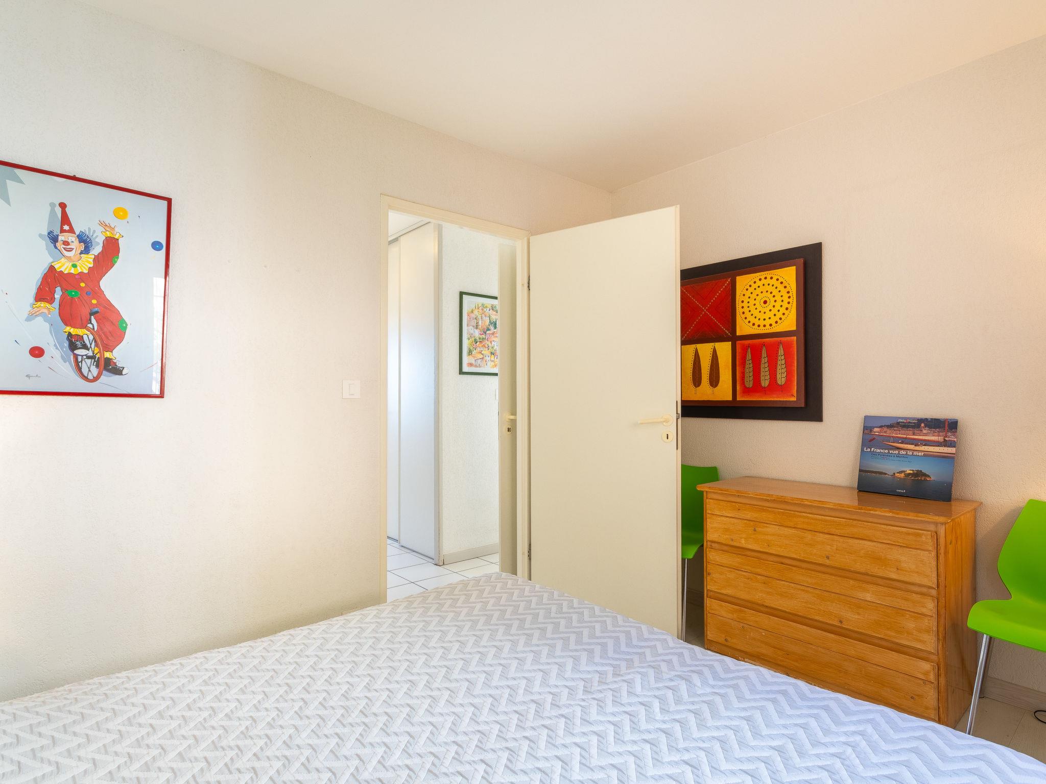 3-room apartment 60 m2 on 2nd floor. Practical and beautiful furnishings: living/dining room with dining table and TV (flat screen). Exit to the terrace. 1 room with 1 french bed (160 cm, length 200 cm). 1 room with 2 beds (90 cm, length 190 cm). Kitchen (oven, dishwasher, 3 induction hot plates, toaster, kettle, microwave, freezer, electric coffee machine). Bathroom, sep. WC. Electric heating. Balcony 10 m2, south facing position. Balcony furniture. Very beautiful view of the sea and the bay. Facilities: washing machine, iron, hair dryer. Internet (WiFi, extra). Parking space n 11. Please note: maximum 1 pet/ dog allowed. TV only FR. Smoke alarm. Offer by a private individual according to Art. 155, IV of CGI. 83070 000043 AP