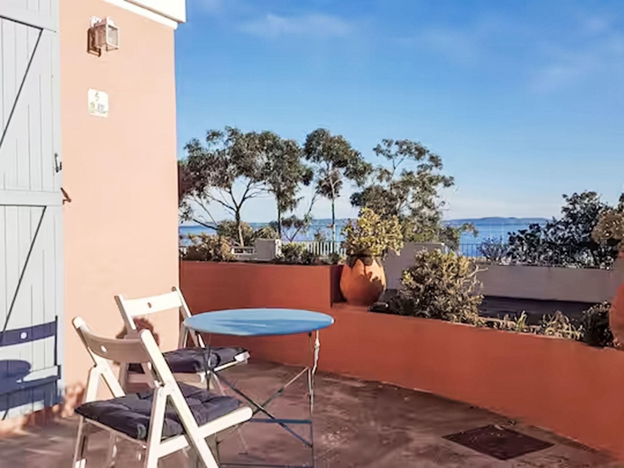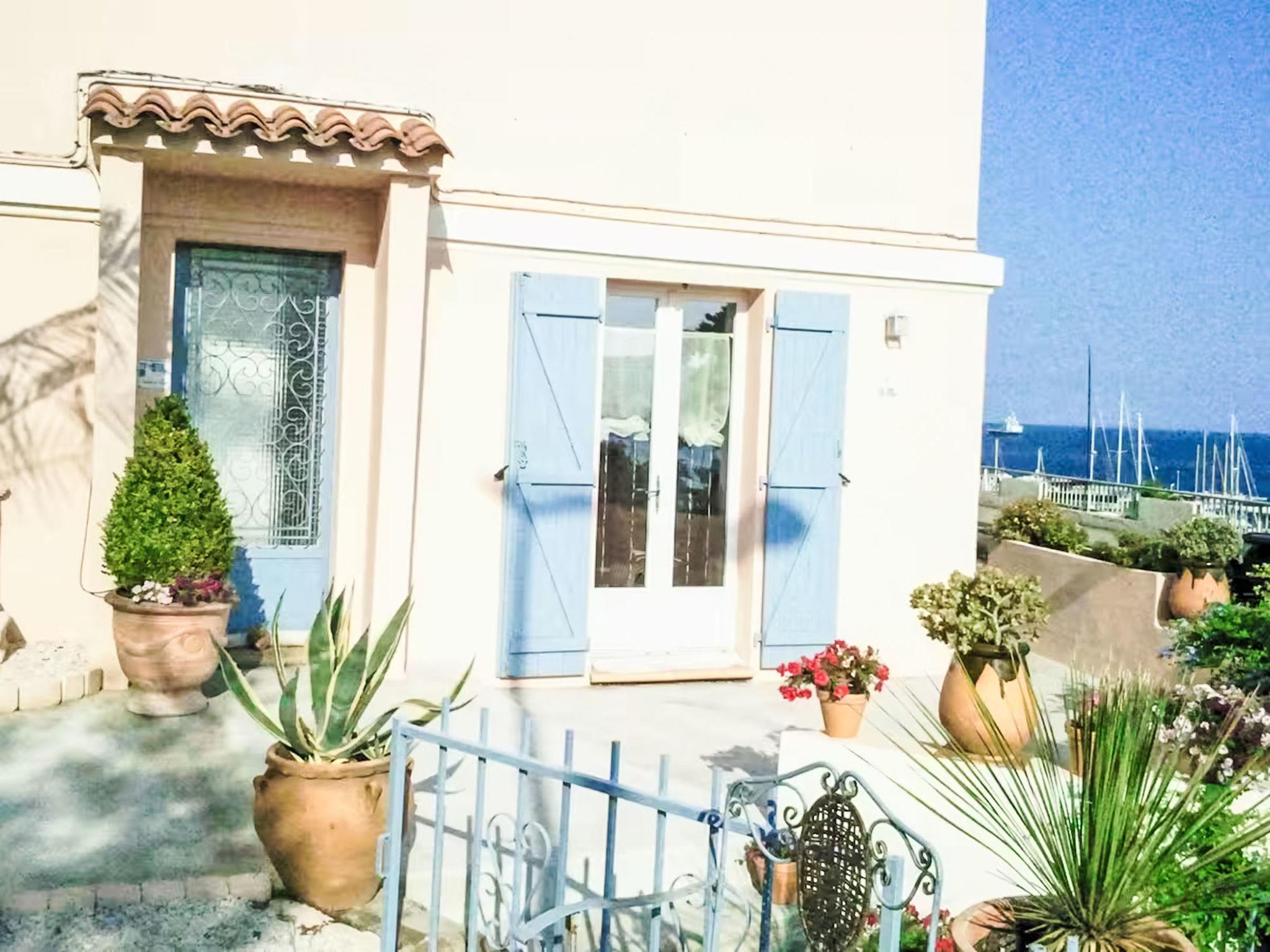 2-room apartment 45 m2, on the ground floor. Bright, beautiful furnishings: living room with 1 sofabed (120 cm, length 200 cm), TV (flat screen). Exit to the terrace, west facing position. 1 room with 1 french bed (140 cm, length 200 cm). Exit to the terrace, west facing position. Kitchen (oven, 3 ceramic glass hob hotplates, toaster, kettle, microwave, freezer, electric coffee machine) with dining table, air conditioning. Exit to the terrace, south facing position. Shower, sep. WC. Terrace, south facing position and west facing position. Very beautiful view of the sea and the port. Facilities: washing machine, iron, baby cot for up to 2 year olds, hair dryer. Internet (WiFi, free). Please note: apartment street side. Non-smokers only, no parking. Maximum 1 pet/ dog allowed. TV only FR. Smoke alarm. There is a right of way in the courtyard to allow tenants of other apartments to access their front door. Offer by a private individual according to Art. 155, IV of CGI. 83070001986Q0