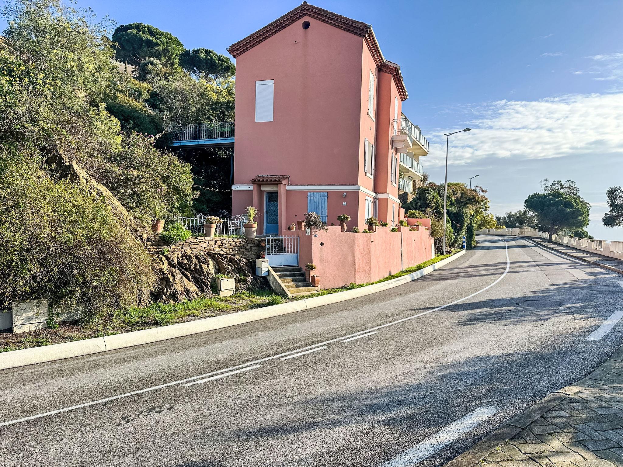 3-family house "Les Agaves". 600 m from the sea, 600 m from the beach, road to cross, on a main road, west facing position. Private: courtyard. Motor access to 20 m from the house. (7 steps). Public parking on the road. Bus stop "Lavandou Square des Héros" 450 m, sandy beach "de St Clair" 600 m. Sports harbour 500 m. Nearby attractions: Saint Tropez 36 km, Magic World 26 km, Parc Olbius Riquier 22 km, Le Jardin des Méditerranées 13 km. Hiking paths: Sentiers du Littoral. Please note: the keys‘ handover takes place by the agency Interhome in Le Lavandou, 1 km. Main road close by.
