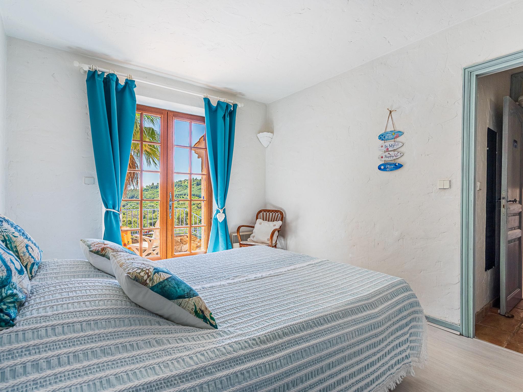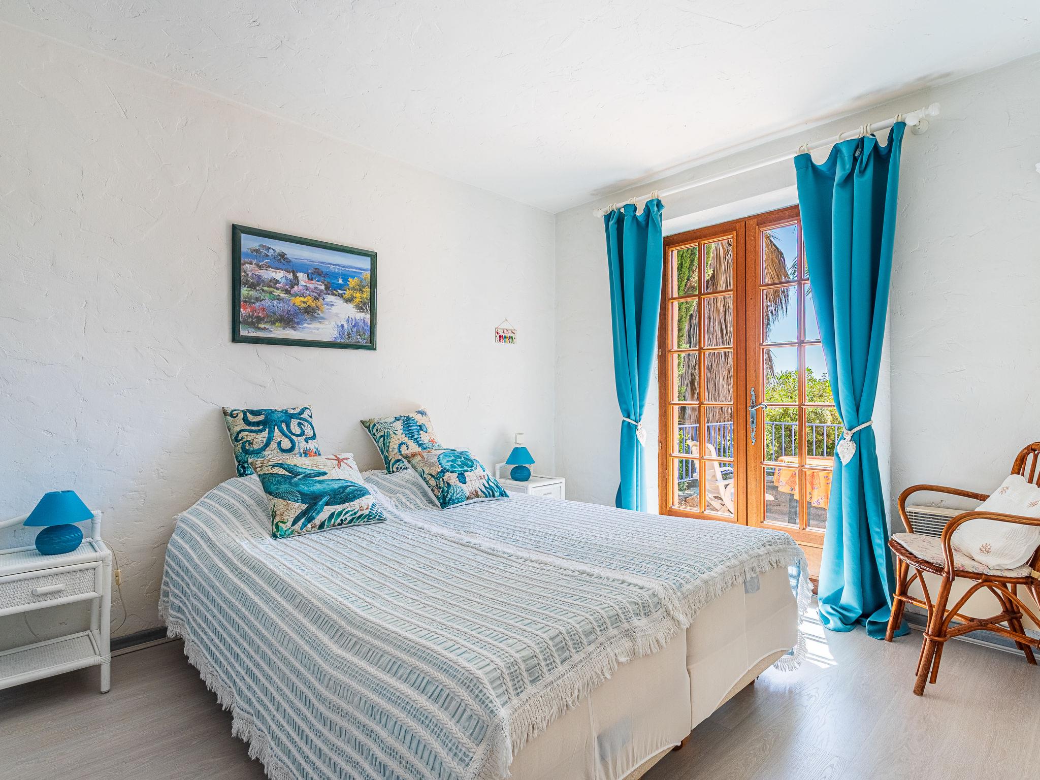 4-room villa 135 m2 on 2 levels, south facing position. Spacious, beautiful furnishings: large living/dining room with panoramic window with open-hearth fireplace (only for decoration), TV (flat screen). Exit to the terrace. 1 room with 1 french bed (160 cm, length 200 cm). Exit to the terrace. Kitchen (oven, dishwasher, 4 ceramic glass hob hotplates, toaster, kettle, microwave, electric coffee machine). Exit to the terrace. Bath/WC, sep. WC. Electric heating. Upper floor: 1 room with 1 double bed (2 x 80 cm, length 190 cm). Exit to the balcony. 1 large room with 1 double bed (2 x 90 cm, length 200 cm), bathroom and separate WC. Exit to the balcony. Shower/WC. Large terrace 80 m2, south facing position. Terrace furniture, deck chairs (4). Marvellous view of the sea. Facilities: washing machine, dryer, iron, hair dryer. Internet (WiFi, free). Garage (2 cars). Please note: non-smoking house. TV only FR. Smoke alarm. 83070002205W5