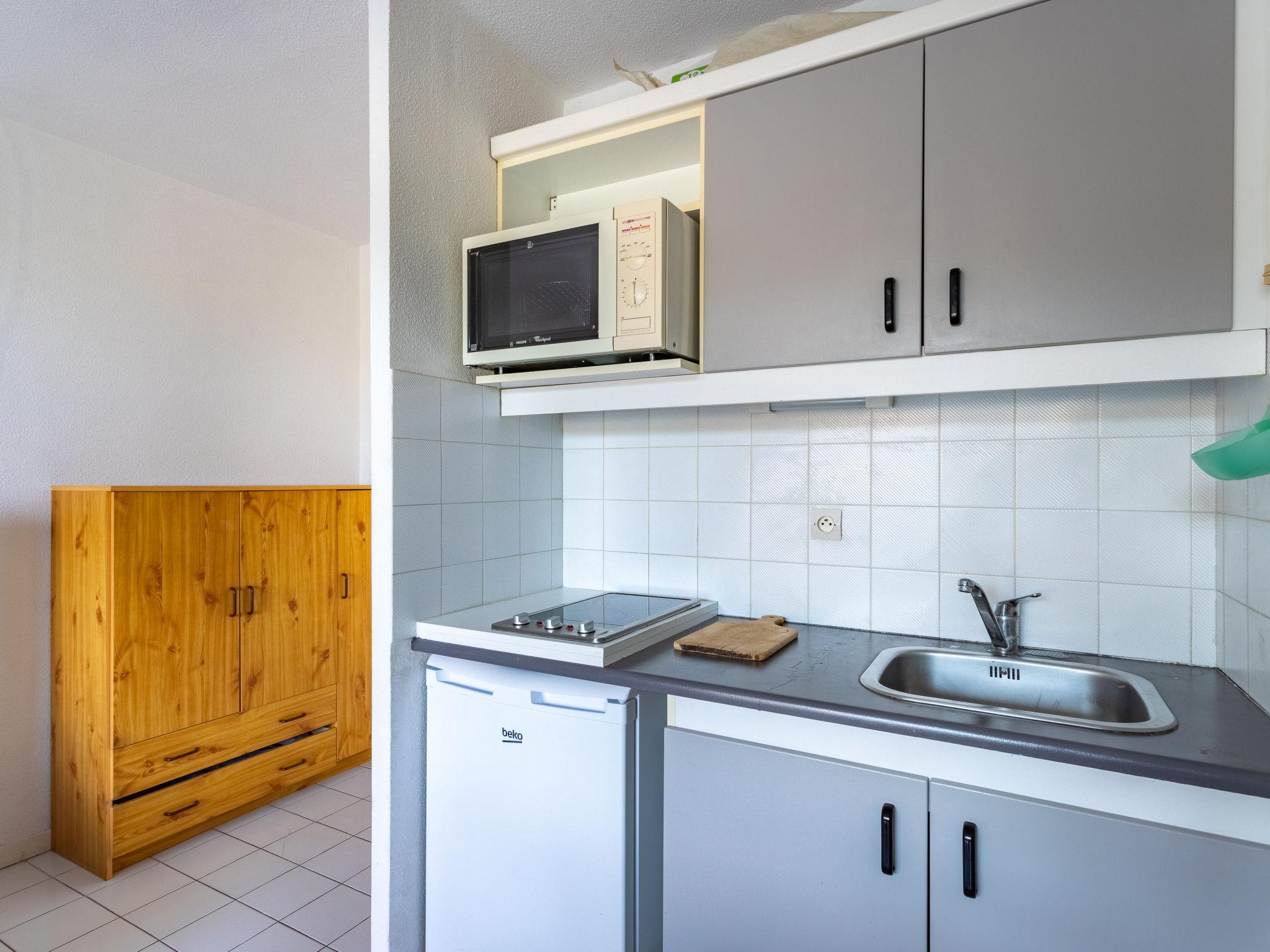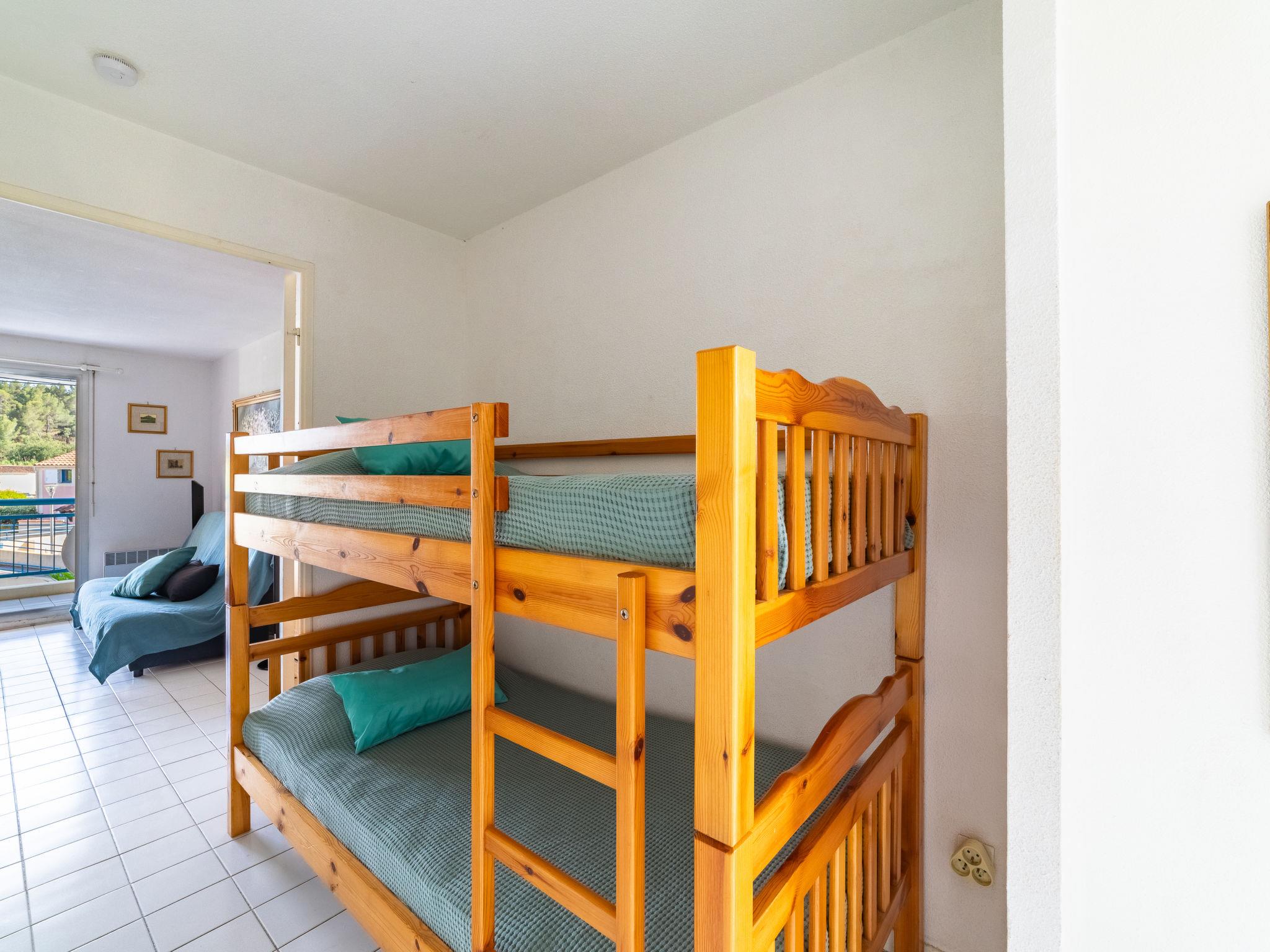 2-room apartment 35 m2 on 1st floor. Practical and beautiful furnishings: living/dining room with dining table and TV (flat screen), air conditioning. Exit to the balcony. Entrance hall with 1 x 2 bunk beds (90 cm, length 190 cm). 1 room with 1 french bed (140 cm, length 190 cm). Open kitchen (2 hot plates, toaster, kettle, microwave, electric coffee machine). Bathroom, sep. WC. Electric heating. Small balcony 10 m2. Balcony furniture. Facilities: washing machine, iron, hair dryer. Internet (WiFi, free). Parking space n 210. Please note: apartment street side. Maximum 1 pet/ dog allowed. TV only FR. Smoke alarm. 83070000775YQ