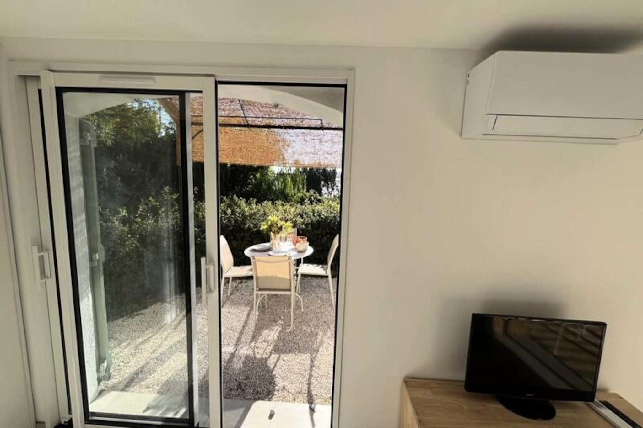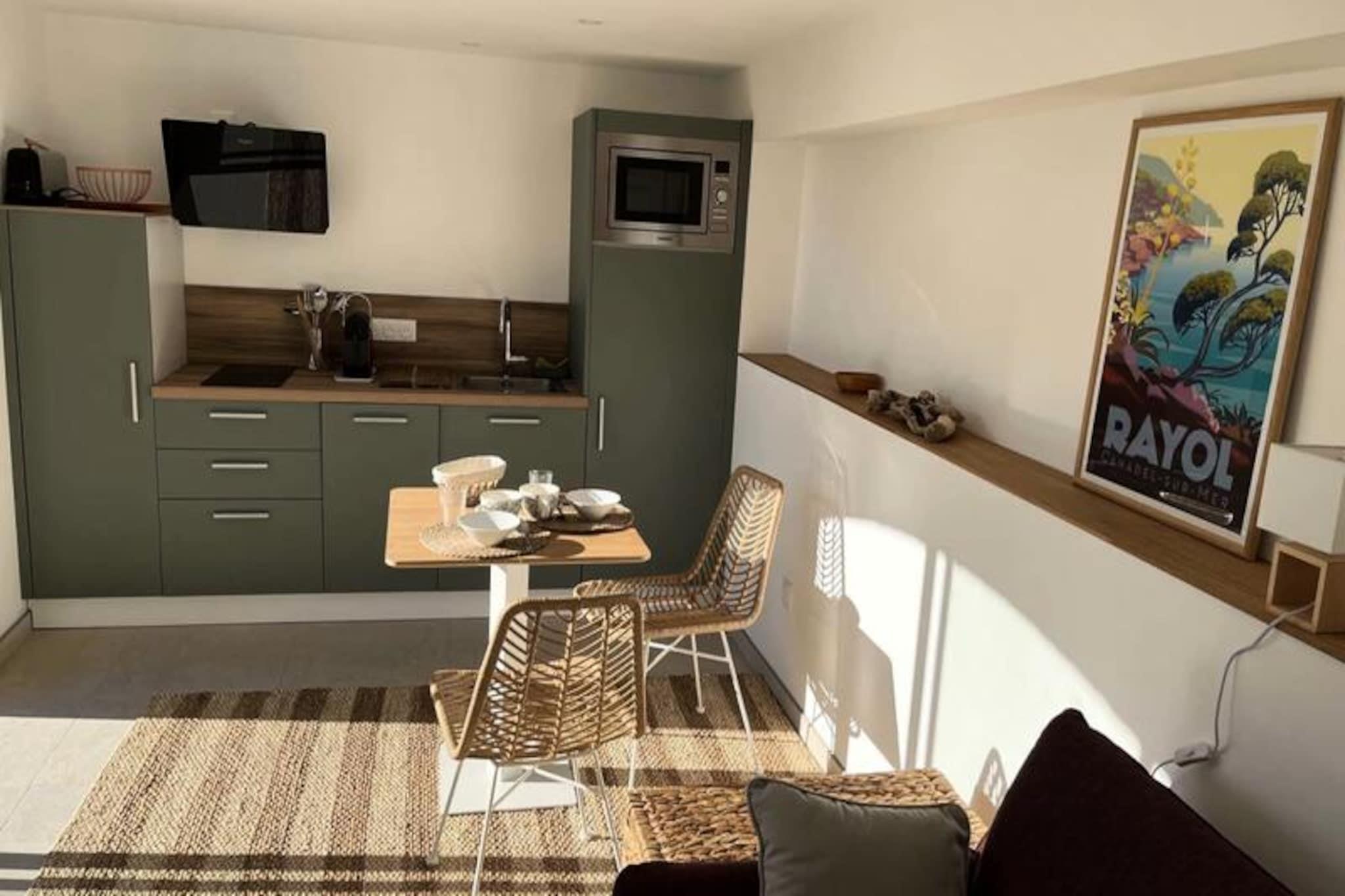 Beliggende over den glitrende middelhavskyst tilbyder dette smukt renoverede studio en fredfyldt tilflugtssted for to. Forestil dig at vågne op til den blide lyd af bølger og træde ud på en rummelig terrasse med betagende havudsigt. Beliggende i Aiguebelle, kun fem minutters gang fra sandstrandene, kombinerer dette charmerende tilflugtssted ro og bekvemmelighed, hvilket gør det til det perfekte sted for en romantisk ferie. Uanset om du nyder morgenmaden i morgensolen eller slapper af med et glas vin under stjernerne, inviterer terrassen dig til at omfavne den franske rivieras skønhed. \n\nIndenfor er studioet omhyggeligt designet med komfort og stil i tankerne. Den eksklusive 160 cm sovesofa sikrer afslappende nætter, mens det moderne badeværelse og det fuldt udstyrede køkken tilbyder alt det nødvendige for et problemfrit ophold. Smagfuld indretning tilføjer et strejf af elegance og skaber en varm og indbydende atmosfære. For din bekvemmelighed er lagner og håndklæder inkluderet, og sengen er redt ved ankomst, så du kan rejse let og fokusere på afslapning. \n\nUd over ejendommen venter den idylliske Aiguebelle-strand med gyldent sand og krystalklart vand, perfekt til svømning eller solbadning. Udforsk de nærliggende kyststier, oplev charmerende landsbyer, eller nyd lokal mad på restauranter ved havet. Uanset om du søger eventyr eller blot ønsker at slappe af, er dette studie din port til det bedste af Côte d'Azur. \n\nLad freden, komforten og charmen i dette tilflugtssted inspirere til uforglemmelige øjeblikke ved havet.
