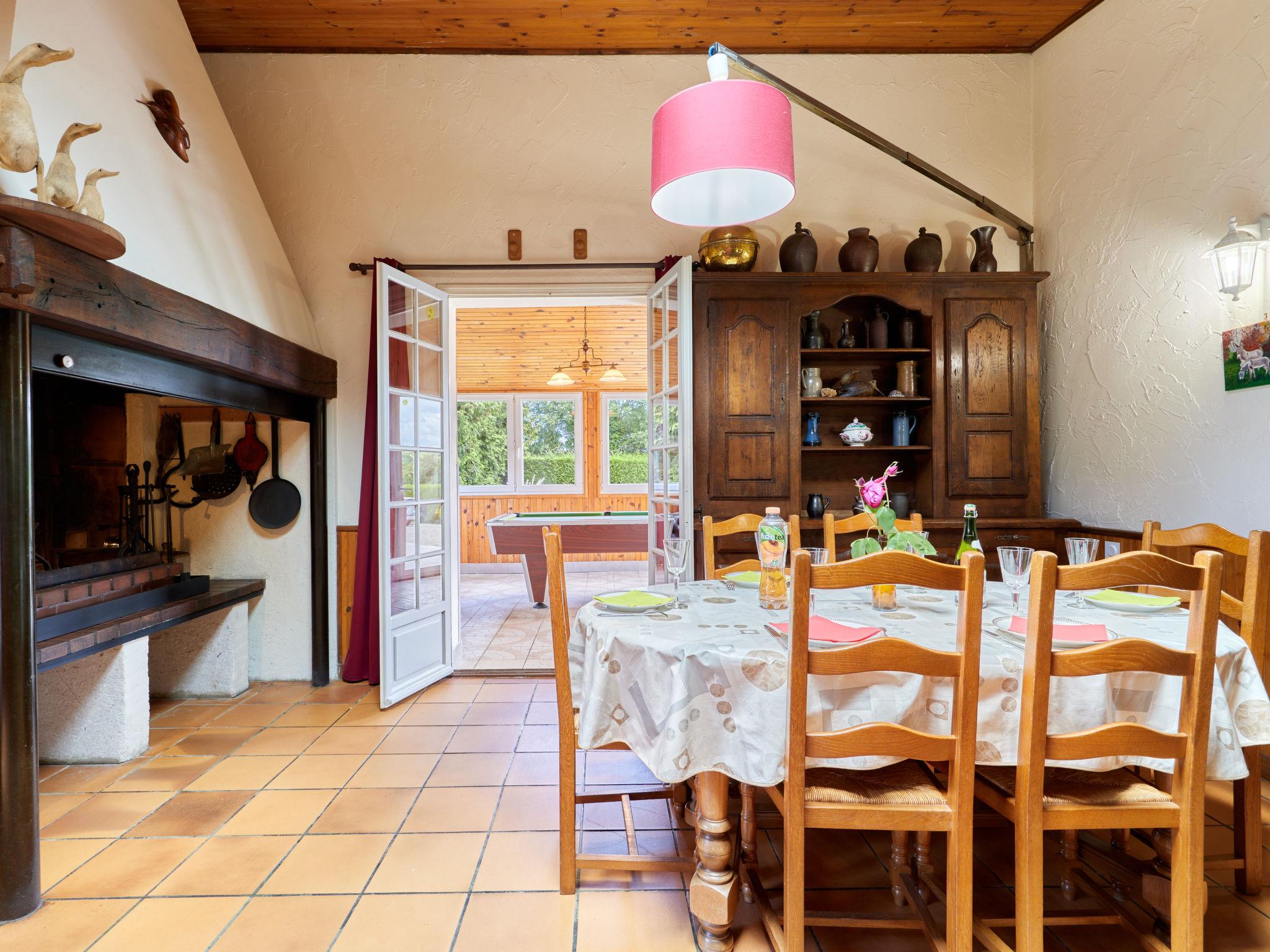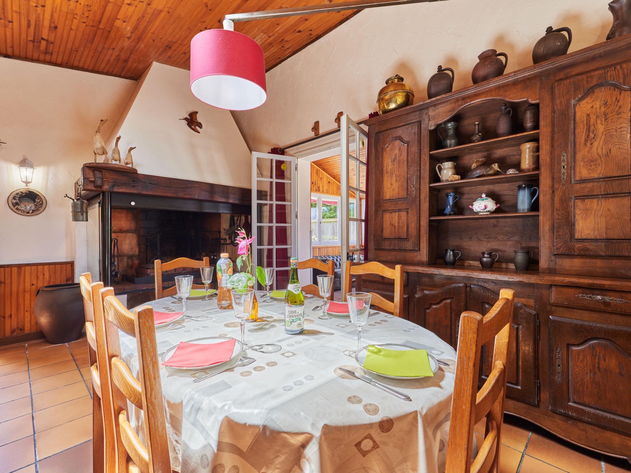 "Entre mer et campagne 3", 5-room house 190 m2. Rustic and wooden furniture furnishings: living/dining room with open-hearth fireplace, dining table, bar, satellite TV, radio, hi-fi system and DVD. Exit to the terrace. Billiard room with winter garden. 3 rooms, each room with 1 french bed (160 cm). 1 room with 1 french bed (1 x 140 cm). Exit to the terrace. Kitchen (1 hot plate, oven, dishwasher, 3 gas rings, toaster, kettle, microwave, freezer, electric coffee machine). Shower, sep. WC. Electric heating. Parquet floors. Terrace terrace roofed. Terrace furniture, barbecue, box-room. Facilities: washing machine, dryer, iron, children's high chair, baby cot, logs (free). Internet (WiFi, extra). Please note: non-smoking house. Maximum 1 pet/ dog allowed.
