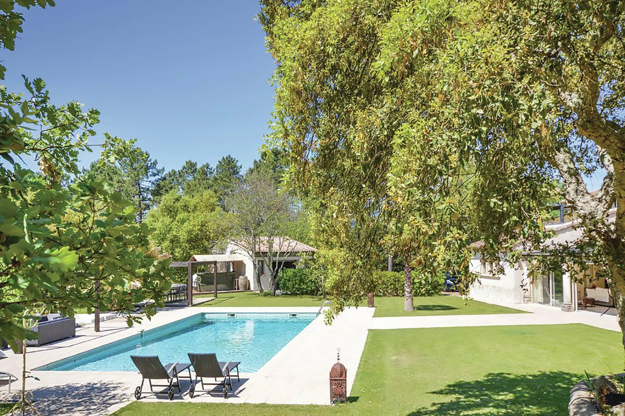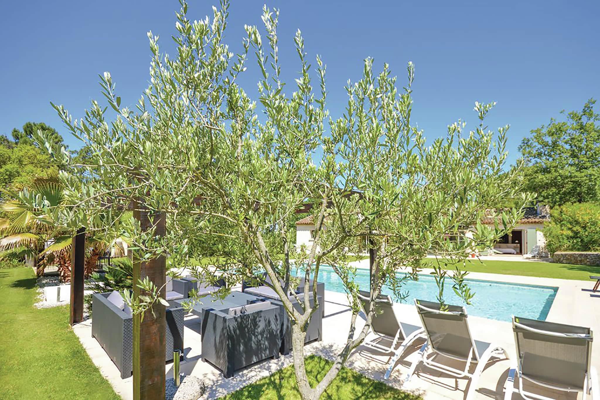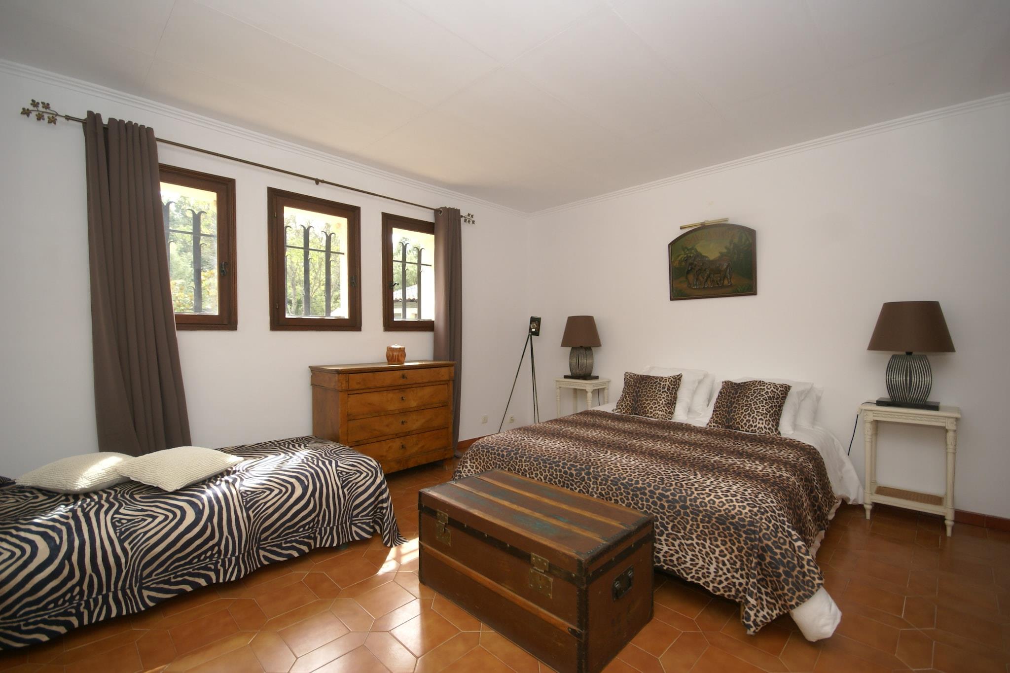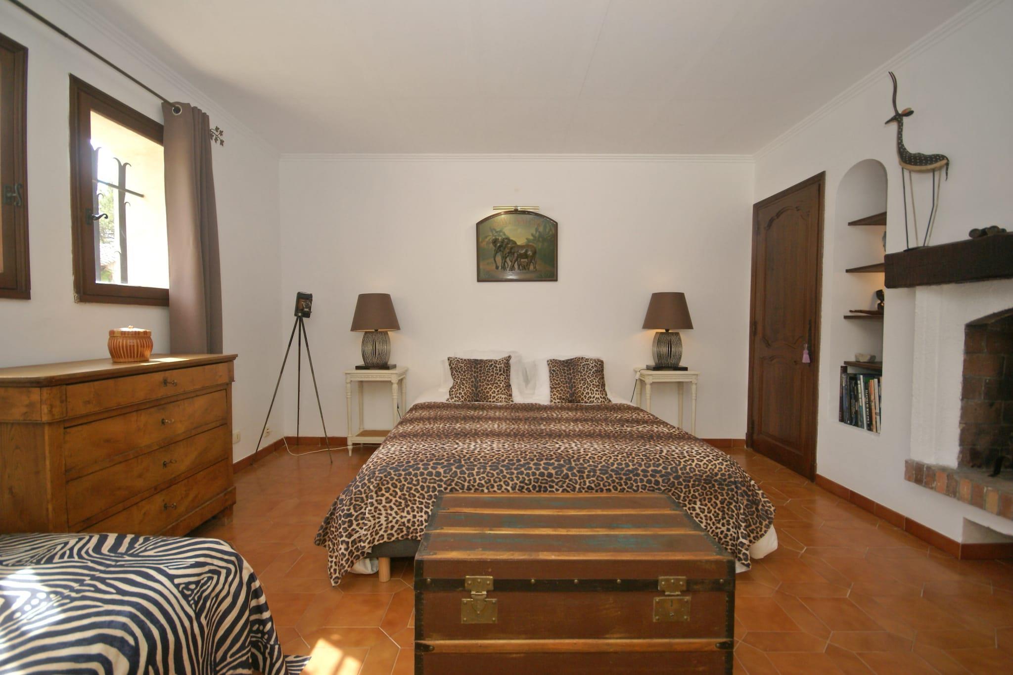 Dette er en rummelig villa med en stor swimmingpool og en stor muret have. Med 4 soveværelser og 3 badeværelser er villaen stor nok til 8 personer. Du finder også et smukt udendørs køkken med grill, overdækket terrasse og opvarmet jacuzzi. Villaen ligger i skoven mellem den provencalske landsby Muy og badebyen Sainte-Maxime (18 km). Sainte-Maxime er en livlig badeby med dejlige butikker, en strand og terrasser. Der afholdes et stort provencalsk marked i Le Muy hver søndag og torsdag. I området finder du flere 18 hullers golfbaner. Ejerne bor i kælderen på bagsiden af villaen, med egen indgang og ingen direkte visning. Hvis du ønsker det, kan de fortælle dig om de smukke omgivelser.. Poolen er beskyttet af en alarm. For børn, der ikke kan svømme, underskriver alle familier med børn ved ankomsten en erklæring om ansvar for eventuelle ulykker i forbindelse med poolen.
