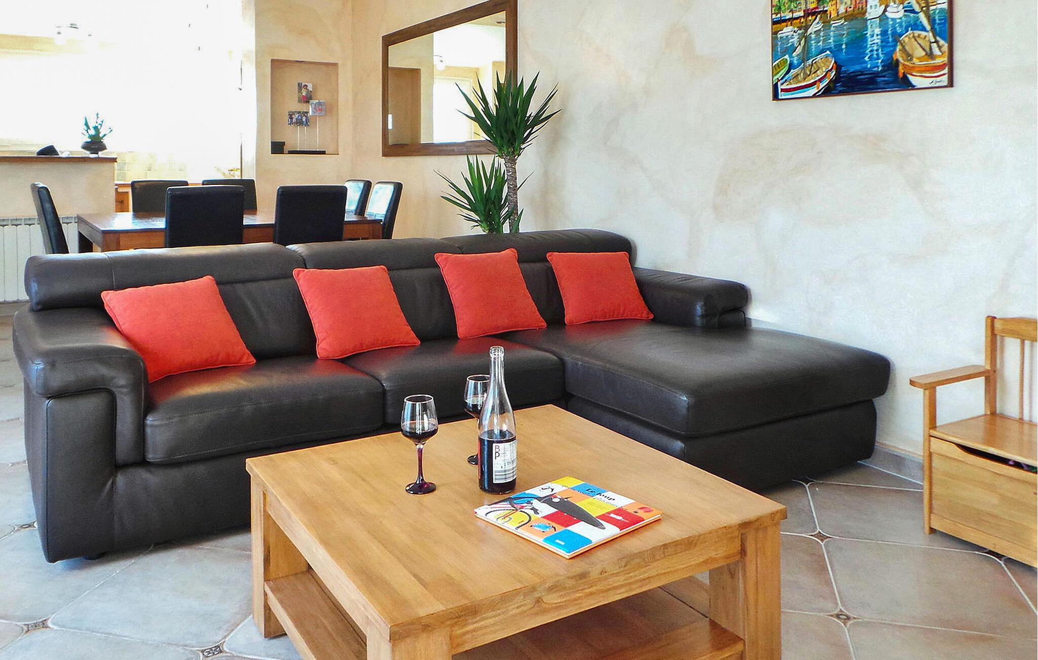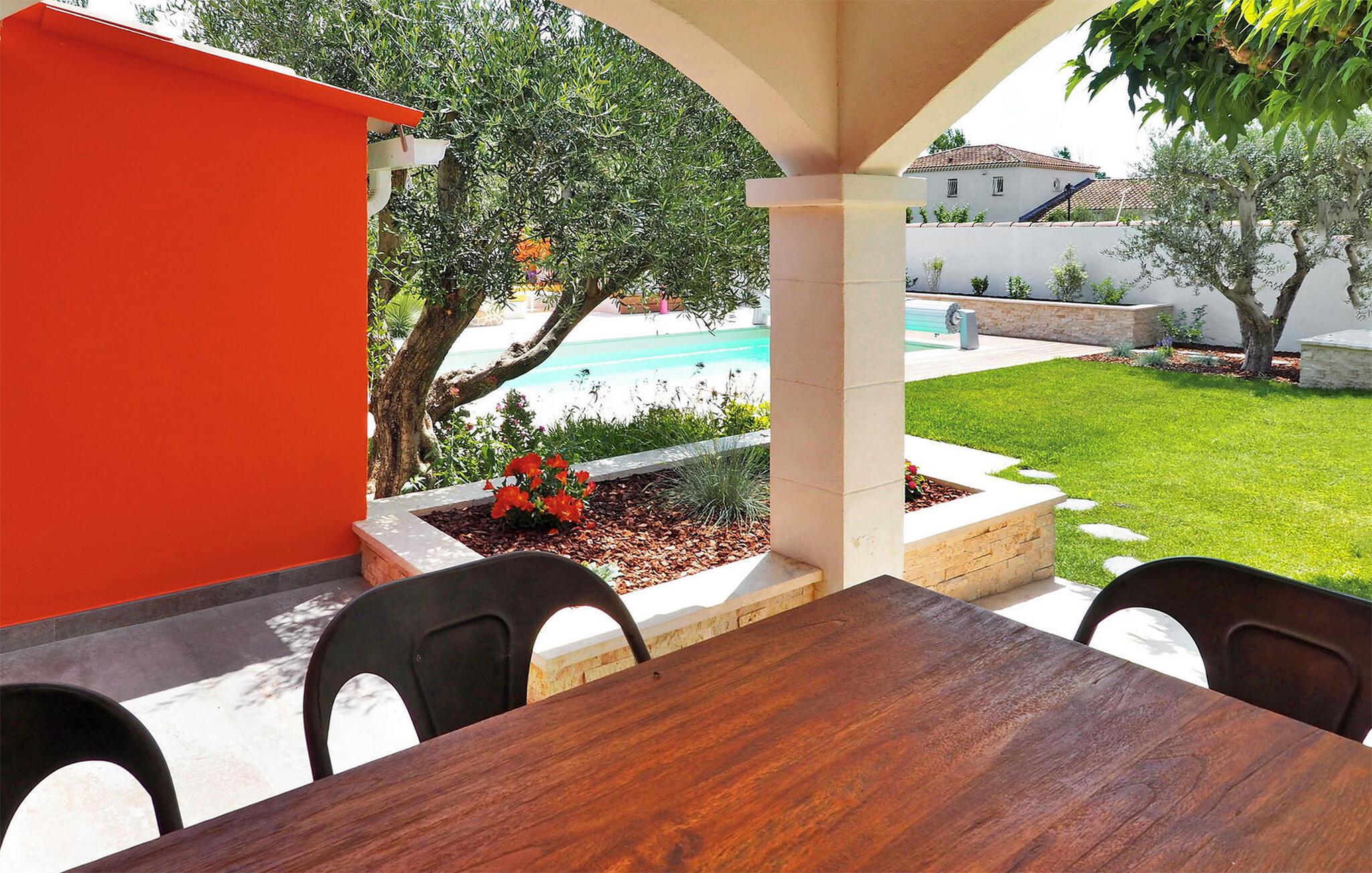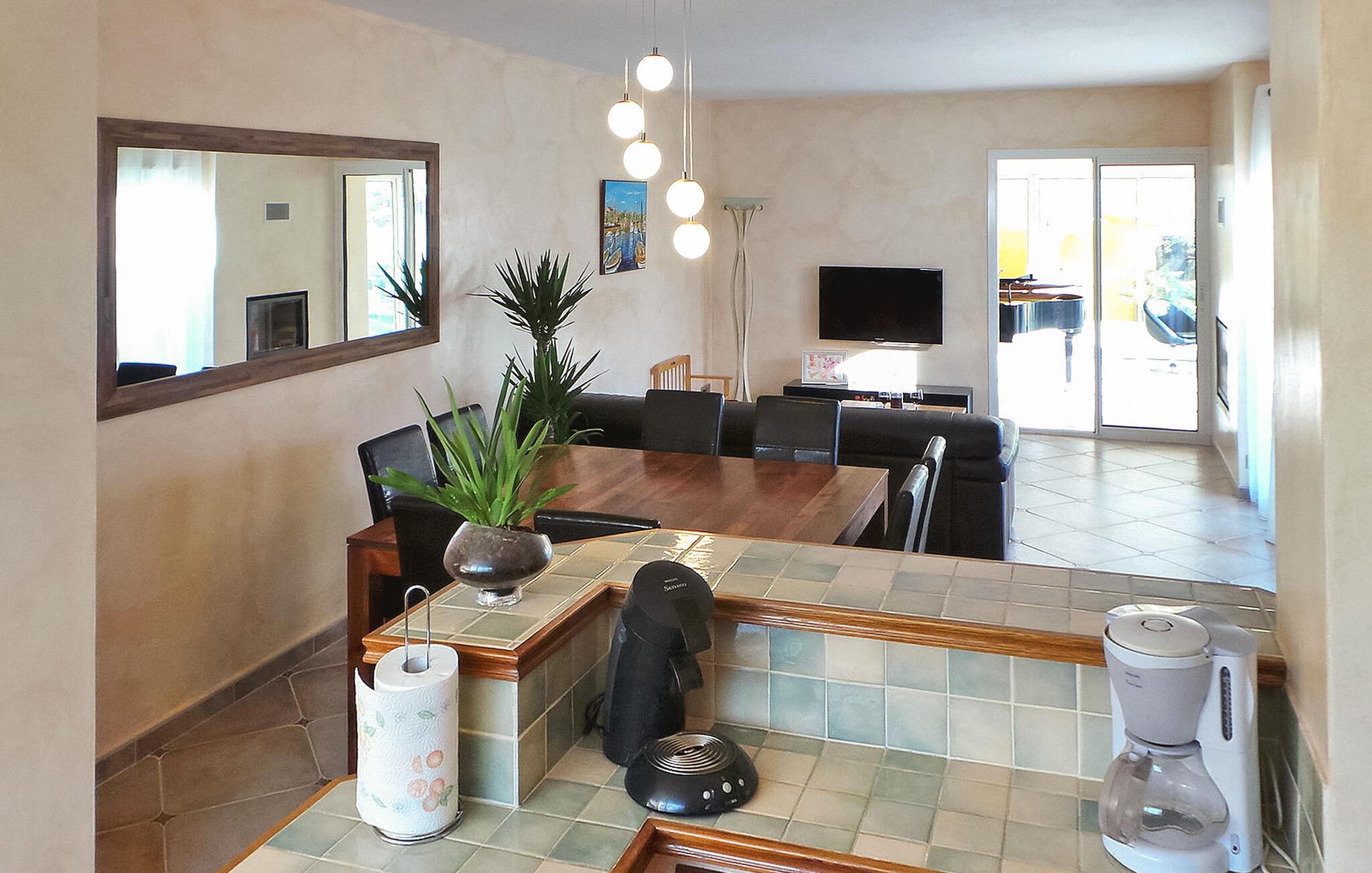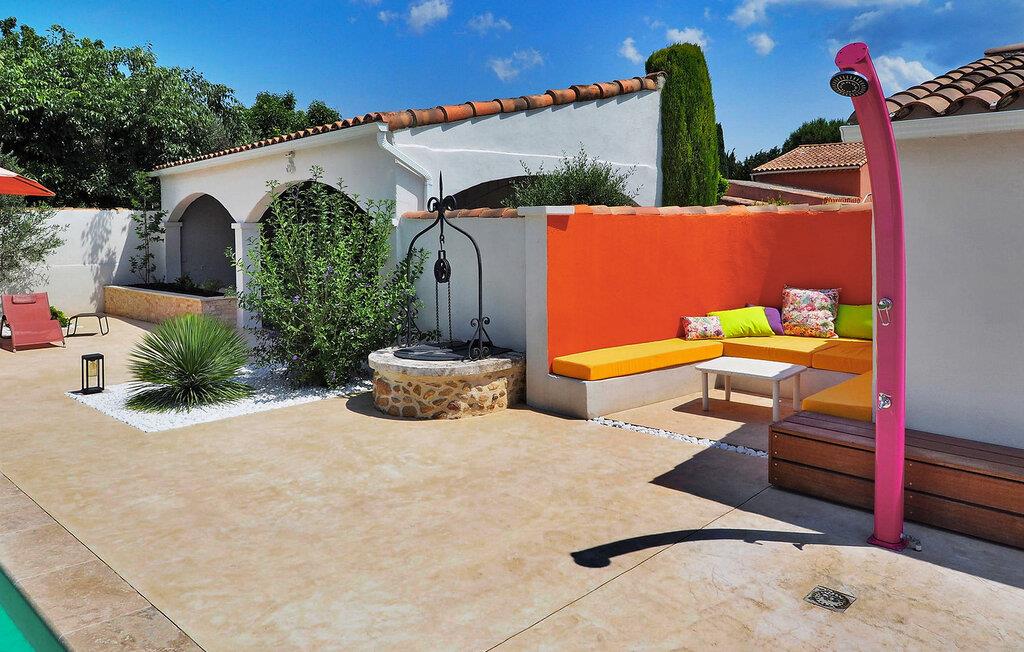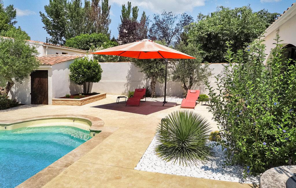 Oplev en dejlig ferievilla beliggende i Paradou, Alpilles, Provence, der tilbyder en fortryllende flugt. Denne villa har en privat opvarmet pool, en have og rolige omgivelser i et roligt område af Paradou, med nem adgang til nærliggende butikker. Denne et-etagers villa omfatter en indgang, der fører til et opholdsområde med spisestue, afslappende opholdsområde, åbent køkken og en indbydende veranda. Villaen byder på hyggelige soveværelser, herunder et som er ideelt for børn. Udenfor kan du opdage de indbydende udendørsfaciliteter midt i en lukket have: en trampolin til børn, en overdækket terrasse med et sommerkøkken og en privat opvarmet pool (7m x 4m) med komfortable lounging områder og fitnessudstyr. Huset ligger i hjertet af Paradou, en karakteristisk landsby i Alpilles. Alle faciliteter er inden for gåafstand: Bageri, læge, supermarked, restauranter. For mere shopping kan du besøge Saint Martin de Crau (10 km) eller Arles (8 km). Typiske provencalske markeder, der er værd at besøge, er: onsdag i Saint Rémy, torsdag i Maussane les Alpilles og fredag i Saint Martin de Crau. Le Paradou er beliggende nær Maussane les Alpilles og kun 3 km fra des Baux de Provence. Nyd din ferie i Bouches-du-Rhône i Provence.