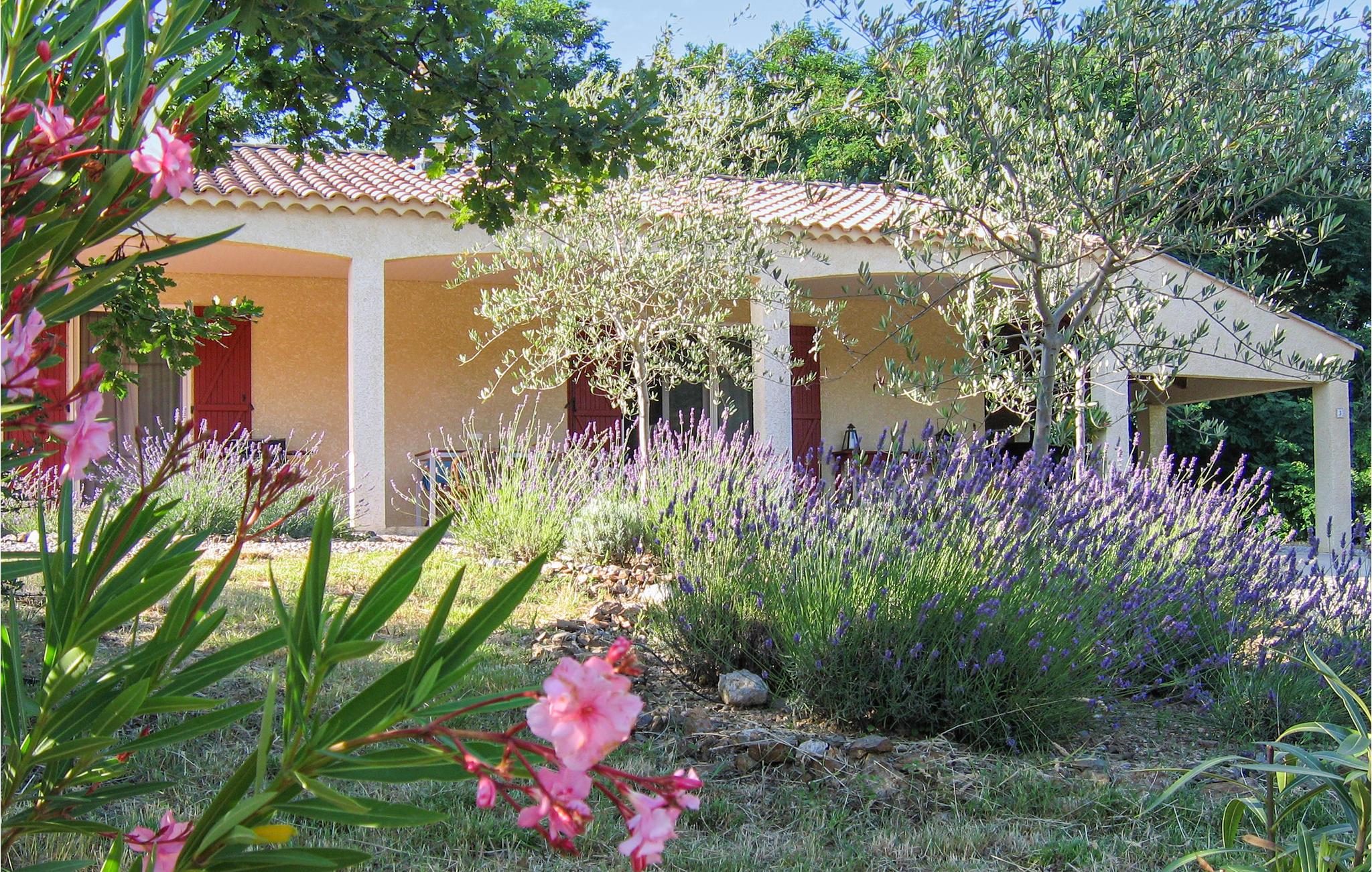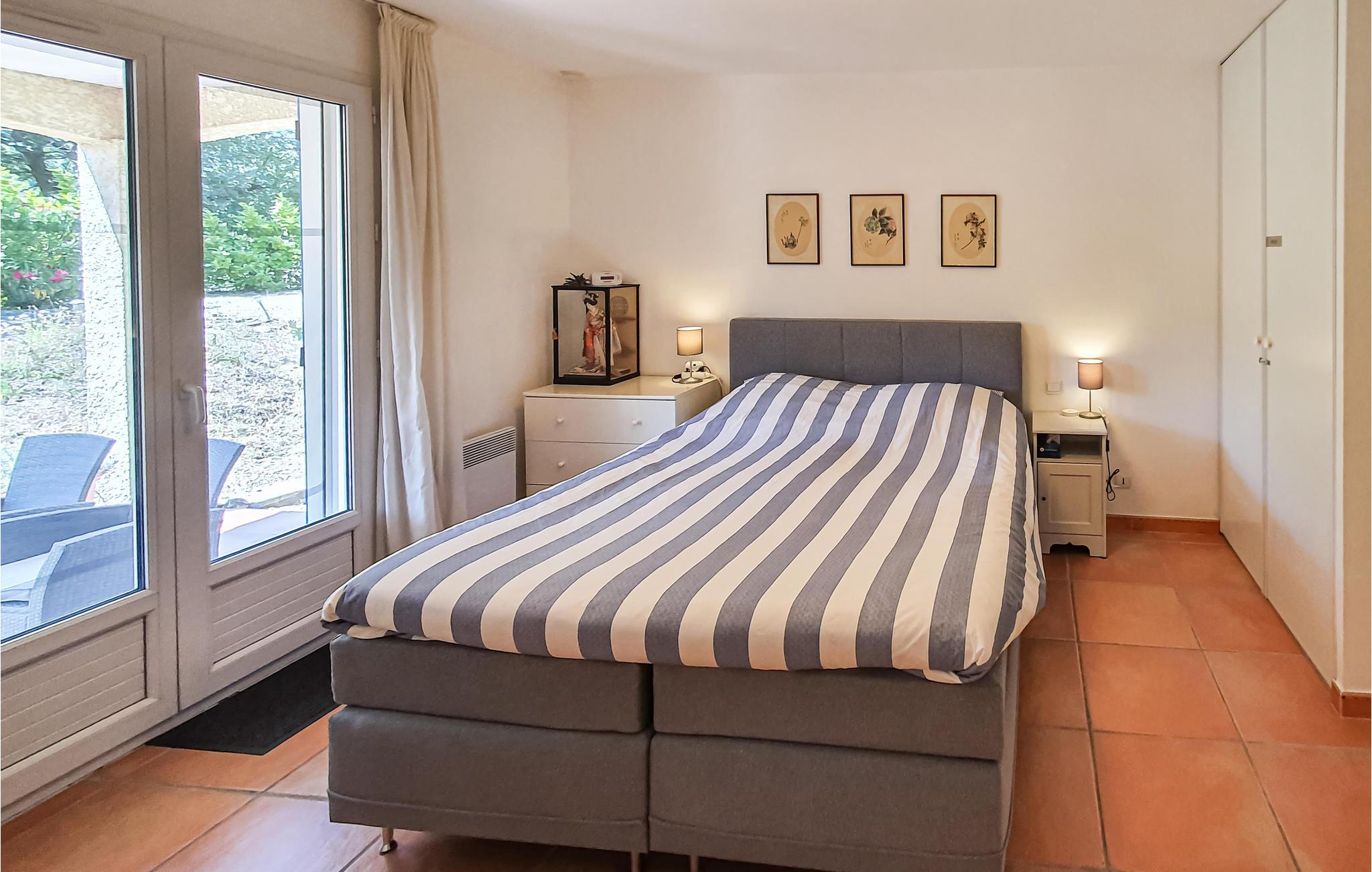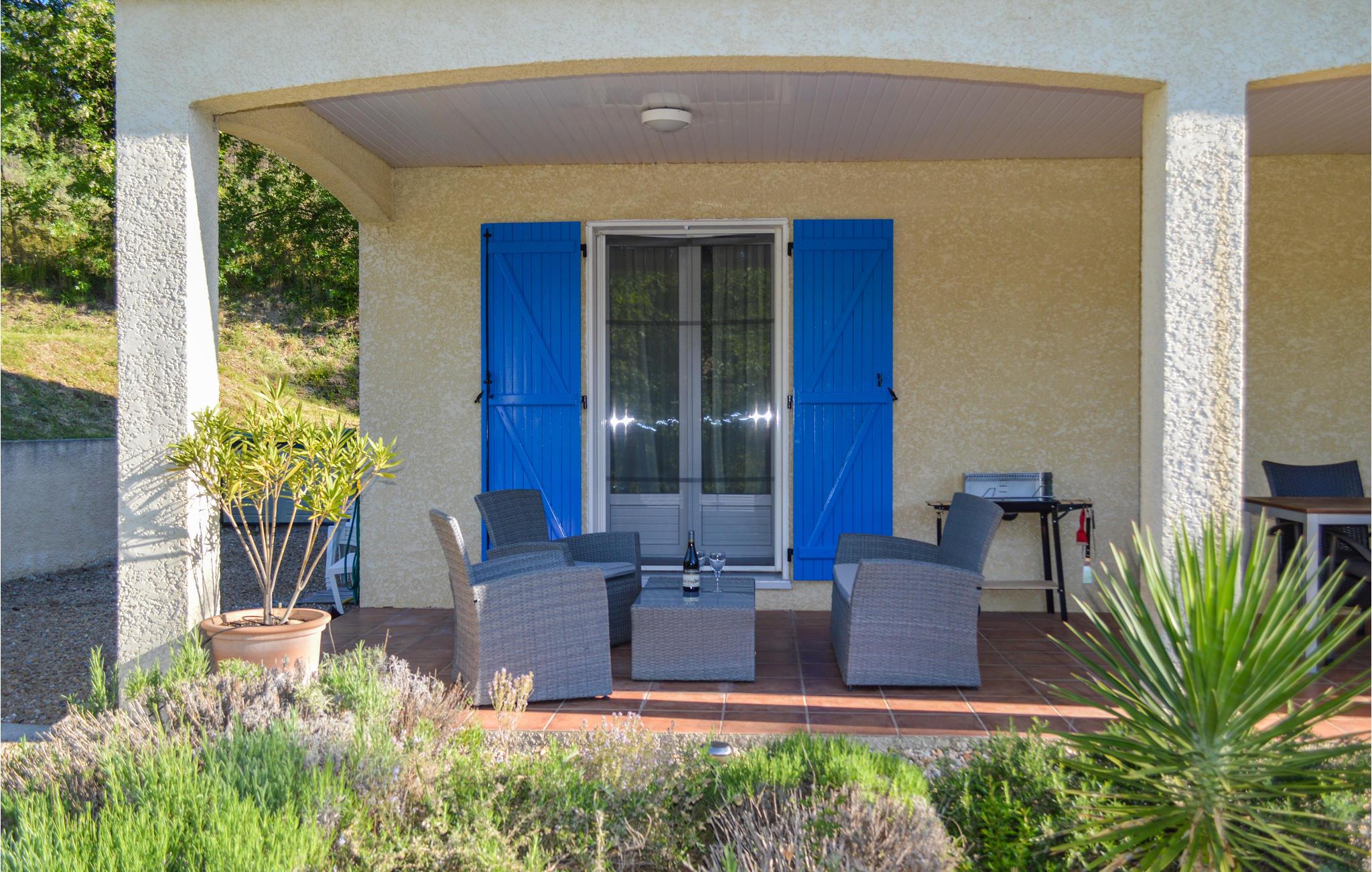 Ud over komforten på den vidunderlige overdækkede terrasse med tilhørende grill tilbyder dette smukke sommerhus et lyst, smagfuldt indrettet interiør. Der er et stort soveværelse med eget badeværelse og badekar samt en ekstra seng. Et andet, mindre soveværelse har sit eget brusebad med håndvask og toilet. Du har adgang til et lyse for at beskytte dit køretøj mod varmen. Haven er hyggeligt beplantet med typiske middelhavsvækster.