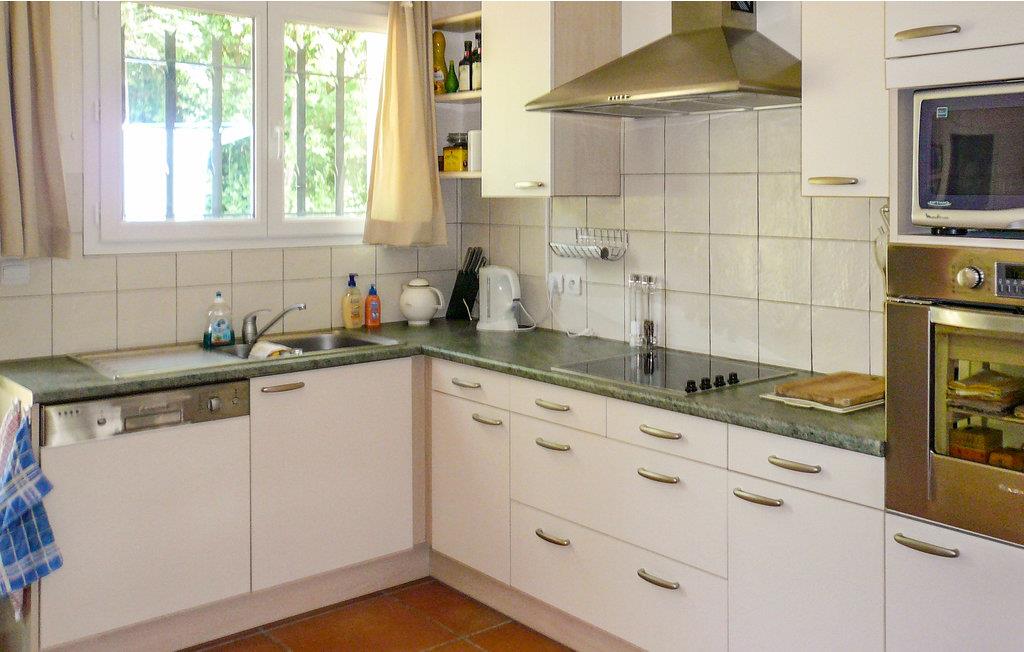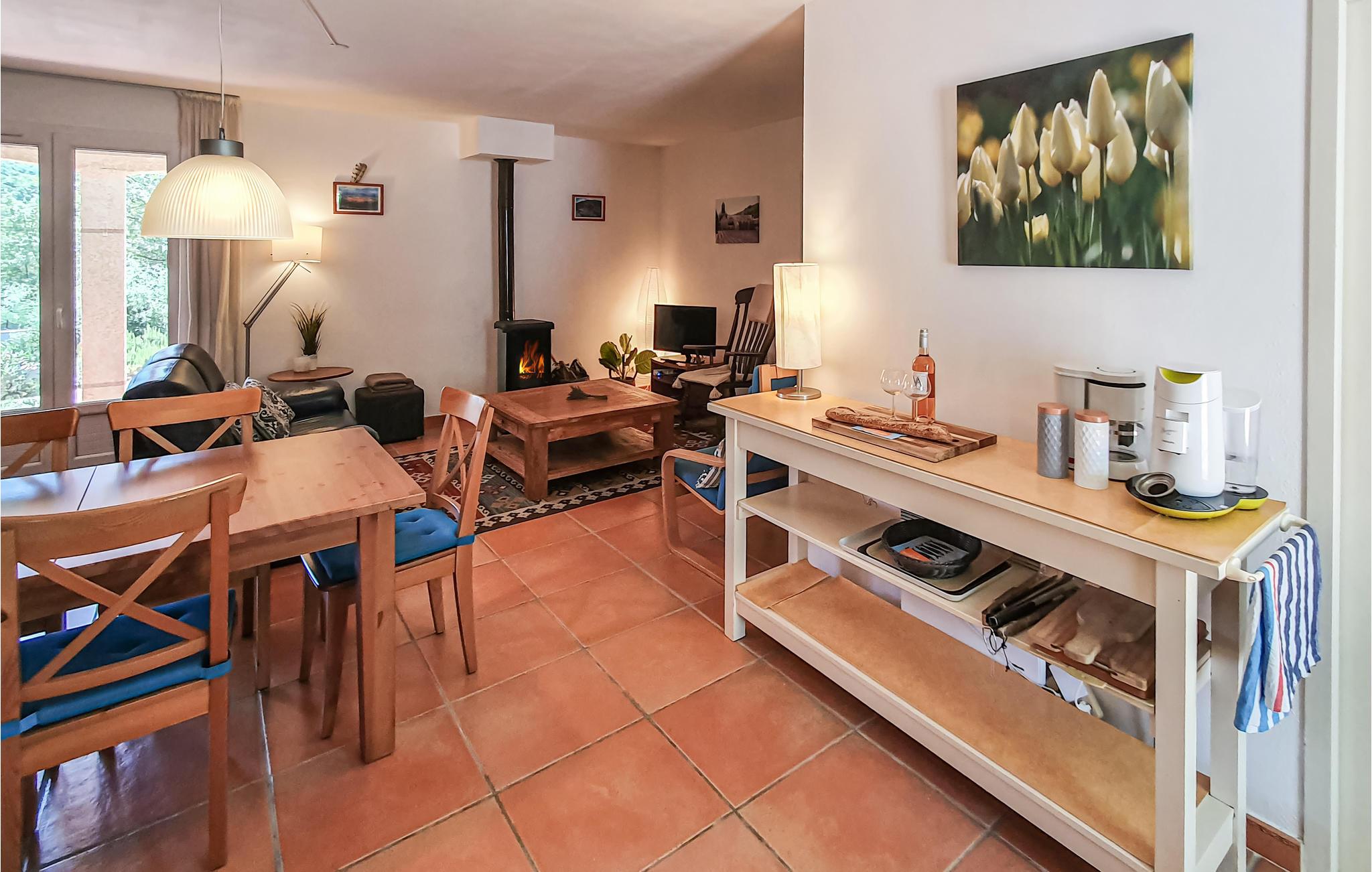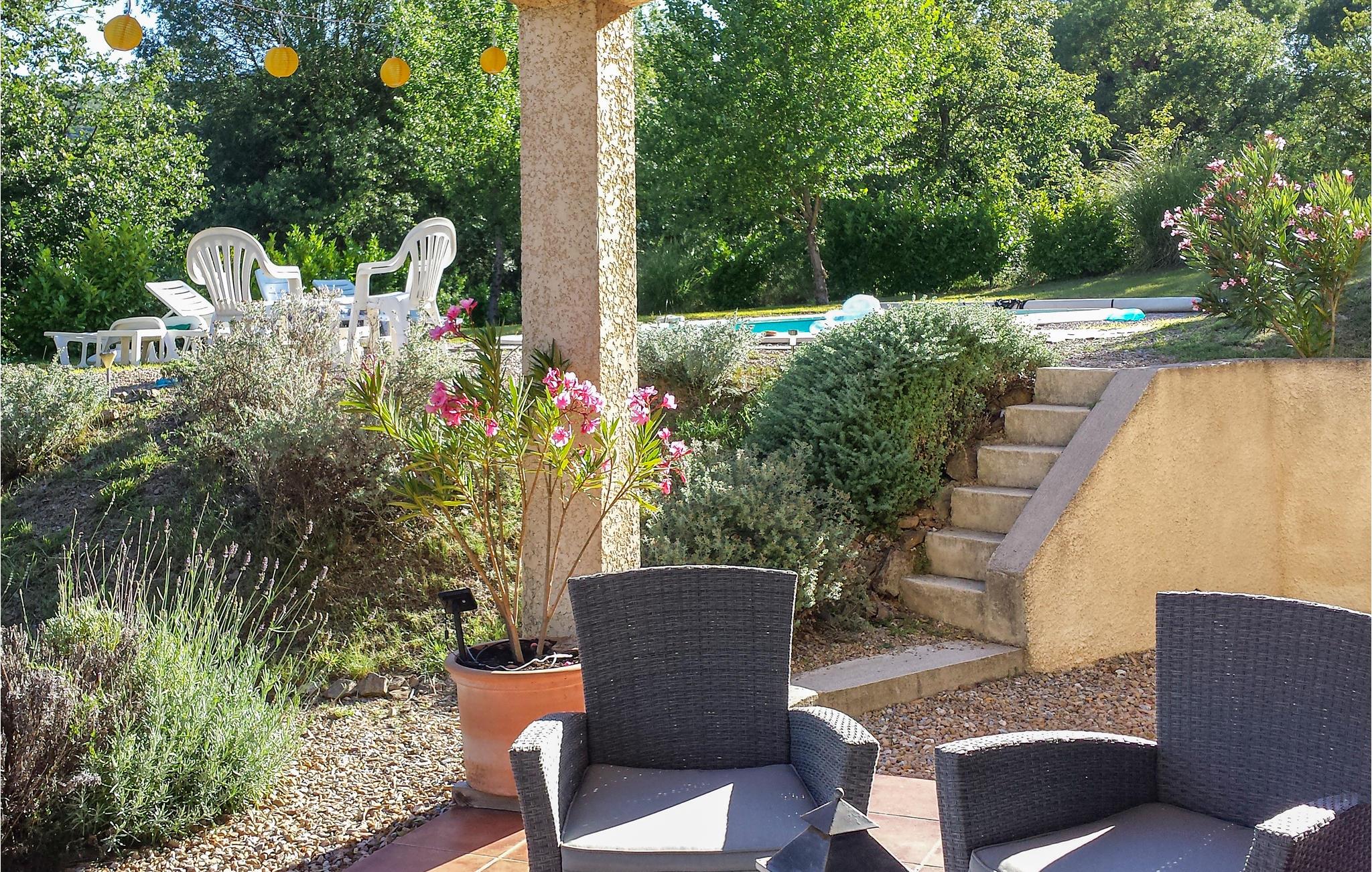 Ud over komforten på den vidunderlige overdækkede terrasse med tilhørende grill tilbyder dette smukke sommerhus et lyst, smagfuldt indrettet interiør. Der er et stort soveværelse med eget badeværelse og badekar samt en ekstra seng. Et andet, mindre soveværelse har sit eget brusebad med håndvask og toilet. Du har adgang til et lyse for at beskytte dit køretøj mod varmen. Haven er hyggeligt beplantet med typiske middelhavsvækster.