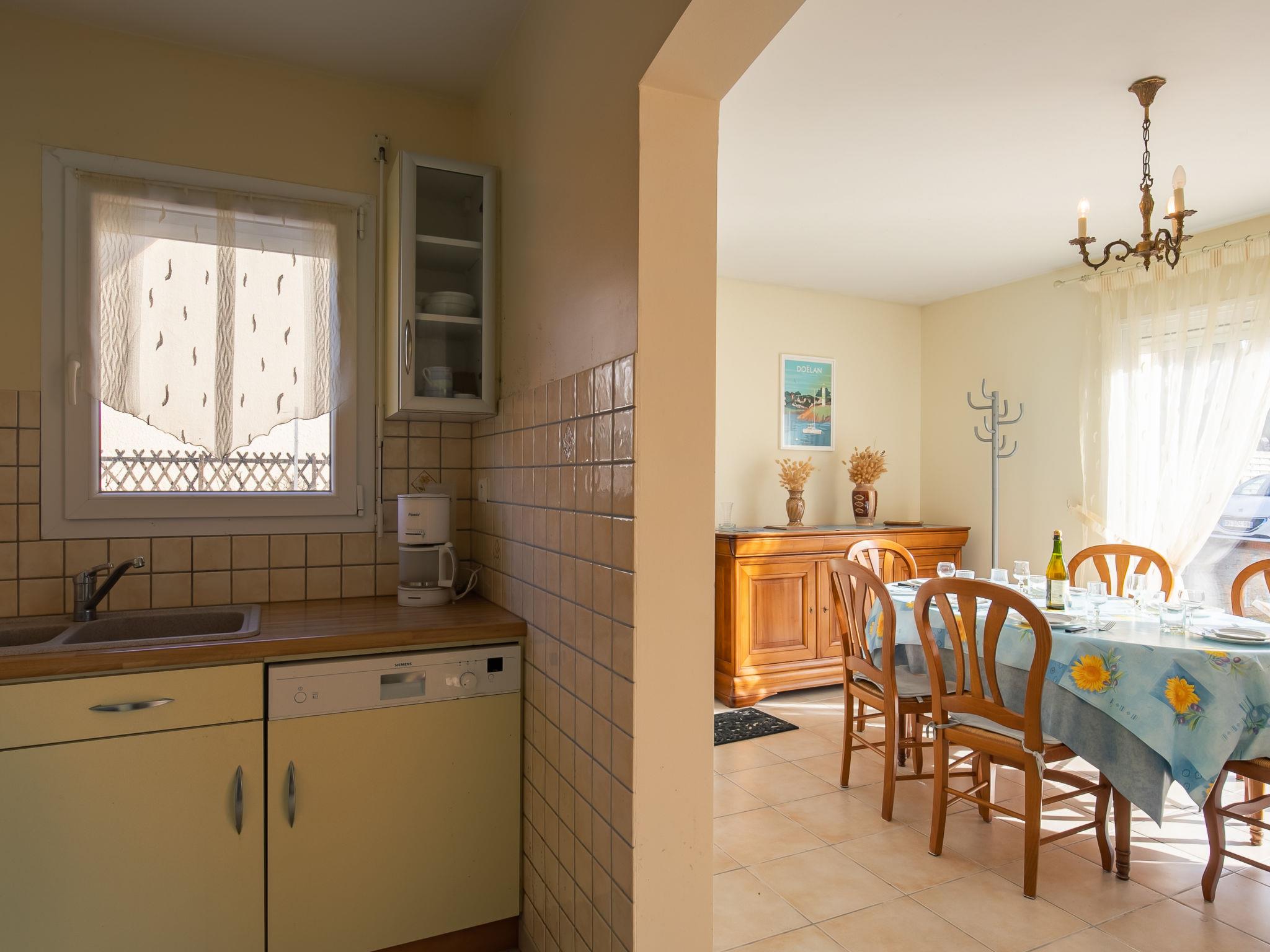 "Hortensias", 5-room house 110 m2 on 2 levels. Spacious and bright, beautiful furnishings: living/dining room 40 m2 with TV. Exit to the garden, to the terrace. 1 room 10 m2 with 1 french bed (160 cm, length 200 cm). Open kitchen (oven, dishwasher, 3 induction hot plates, toaster, kettle, microwave, electric coffee machine). Shower, sep. WC. Upper floor: living/dining room 18 m2, with sloping ceilings with TV. Exit to the balcony. Walk-through room 9 m2, with sloping ceilings with 1 french bed (140 cm, length 190 cm). 1 room 9 m2, with sloping ceilings. Kitchenette (oven, 3 induction hot plates, toaster, kettle, electric coffee machine). Shower, sep. WC. Electric heating. Small balcony 5 m2, east facing position, terrace 50 m2, south-east facing position and north-west facing position. Terrace furniture, barbecue (portable), deck chairs (2). Facilities: washing machine, iron, baby cot for up to 2 year olds. Internet (WiFi, free). Parking (2 cars). Please note: non-smoking house. Maximum 1 pet/ dog allowed. Smoke alarm. Offer by a commercial proprietor according to Art. 155, IV, CGI