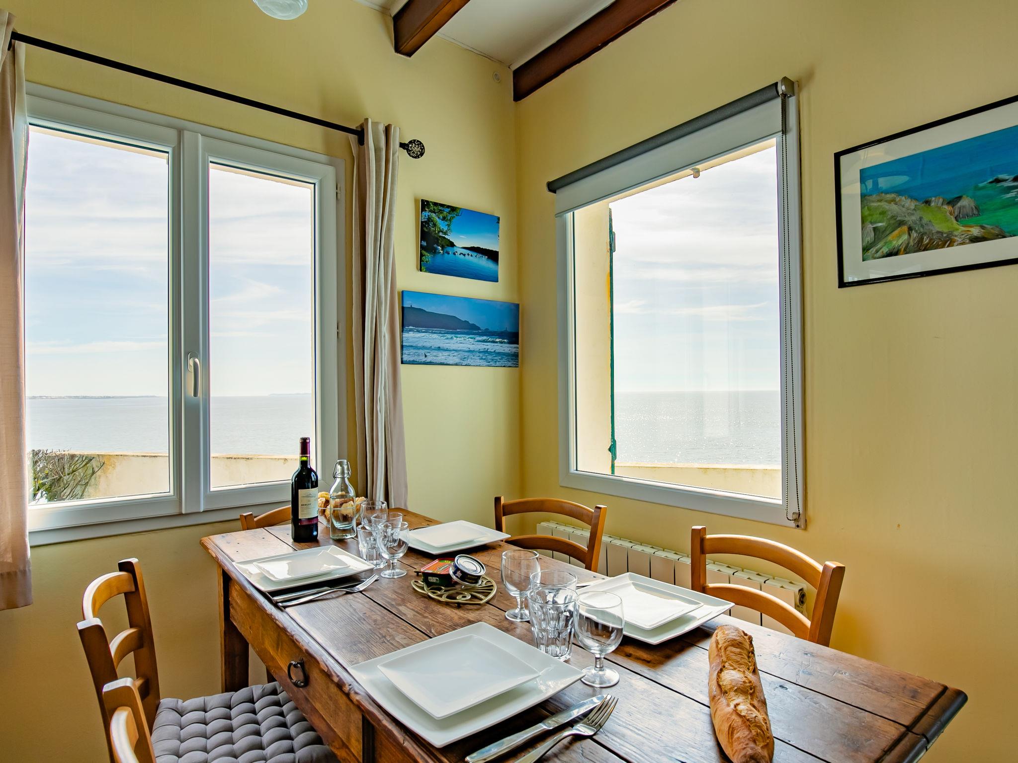 "Les Roches", 4-room house 65 m2 on 2 levels. Beautiful and cosy furnishings: living/dining room with Scandinavian wood stove, dining table, satellite TV, hi-fi system and DVD. Exit to the terrace. 1 room with 1 double bed (160 cm). Kitchen (oven, dishwasher, 3 induction hot plates, toaster, kettle, microwave, freezer, electric coffee machine). Exit to the terrace. Shower, sep. WC. Electric heating. Upper floor: 1 room with sloping ceilings with 2 beds (90 cm, length 190 cm). 1 room with sloping ceilings with 1 double bed (160 cm, length 200 cm). Terrace, south facing position. Terrace furniture, barbecue (portable), deck chairs (4). Panoramic view of the sea. Facilities: washing machine, dryer, iron, children's high chair, baby cot. Internet (WiFi, free). Please note: non-smoking house. Maximum 1 pet/ dog allowed. Smoke alarm. Offer by a private individual according to Art. 155, IV of CGI.