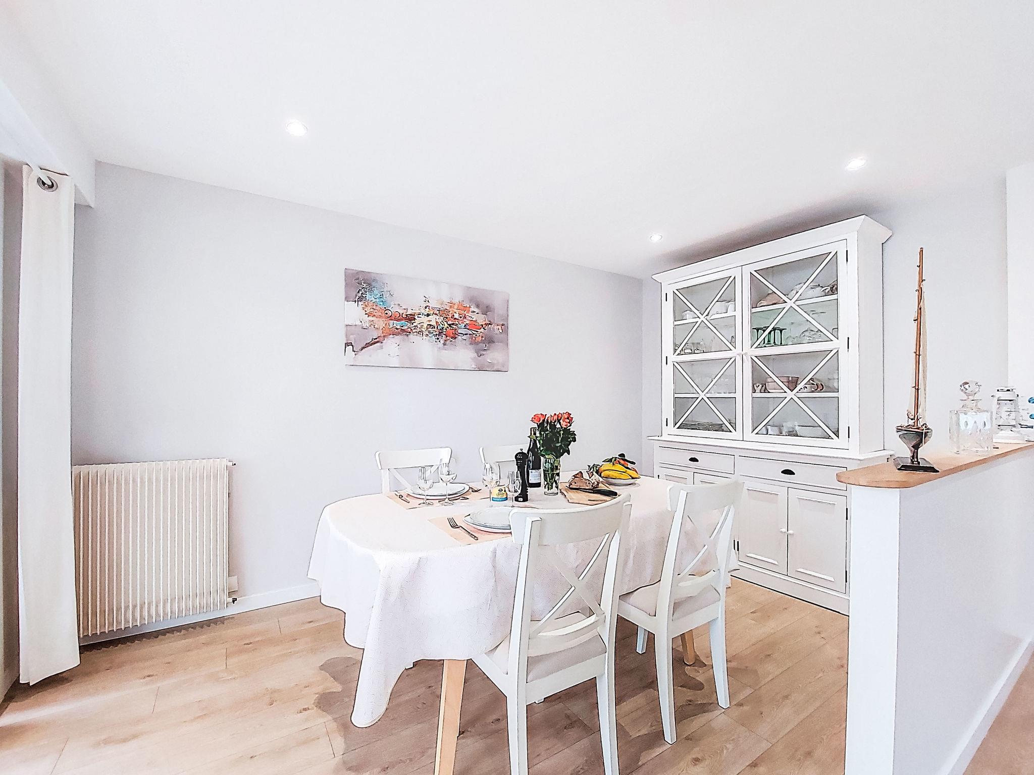 "Port et plage à pied, linge inclus", 2-room apartment 58 m2 on 1st floor. Bright, fully renovated, comfortable furnishings: entrance hall. Living room with TV (flat screen). Exit to the balcony, south-west facing position. 1 room with Dressing room with 1 double bed (160 cm, length 200 cm), TV (flat screen). Exit to the balcony, north-east facing position. Kitchen (oven, 4 gas rings, toaster, kettle, microwave, freezer, electric coffee machine). Bathroom, sep. WC. Gas heating. Balcony 6 m2. Balcony furniture. Facilities: washing machine, iron. Internet (WiFi, free). Parking. Please note: non-smokers only. Maximum 1 small pet/ dog allowed. Smoke alarm. Offer by a private individual according to Art. 155, IV of CGI. 4413500095865