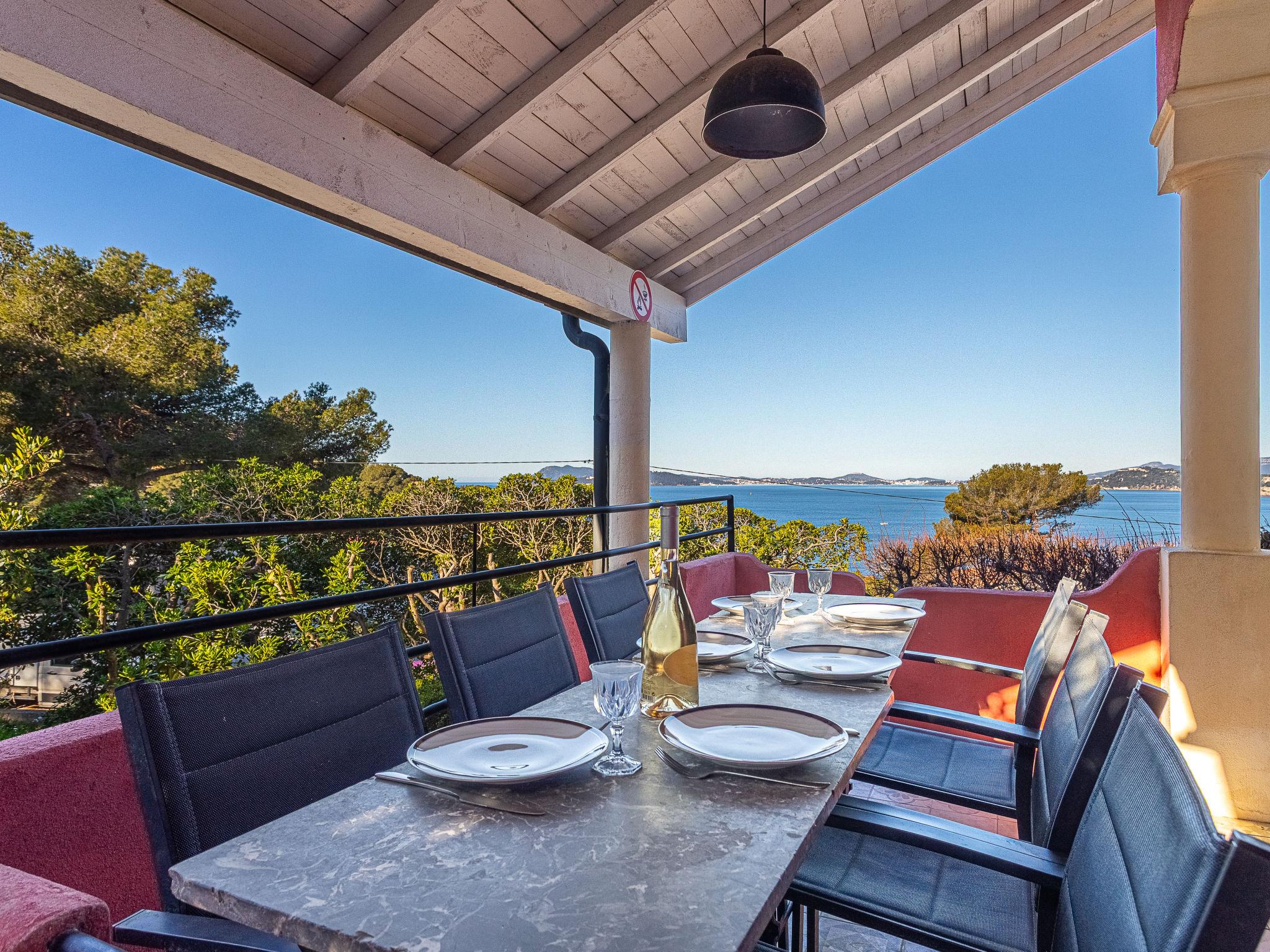 4-room villa 52 m2 on 2 levels. Spacious and bright, comfortable and beautiful furnishings: living/dining room with dining table, TV, flat screen and air conditioning. Exit to the terrace. 1 room with 1 french bed (160 cm, length 190 cm). 1 small room with 1 double bed (120 cm, length 190 cm). Kitchenette (oven, dishwasher, 3 induction hot plates, toaster, kettle, microwave, freezer, electric coffee machine). Shower, sep. WC. Electric heating. On the lower ground floor: (exterior staircase), 1 room with 1 french bed (140 cm, length 190 cm), shower/WC. Exit to the garden. Terrace 10 m2, terrace 7 m2. Terrace furniture. Very beautiful view of the sea and the garden. Facilities: washing machine, hair dryer. Internet (WiFi, free). Parking (2 cars). Please note: maximum 1 small pet/ dog allowed. TV only FR. Smoke alarm. Offer by a private individual according to Art. 155, IV of CGI.