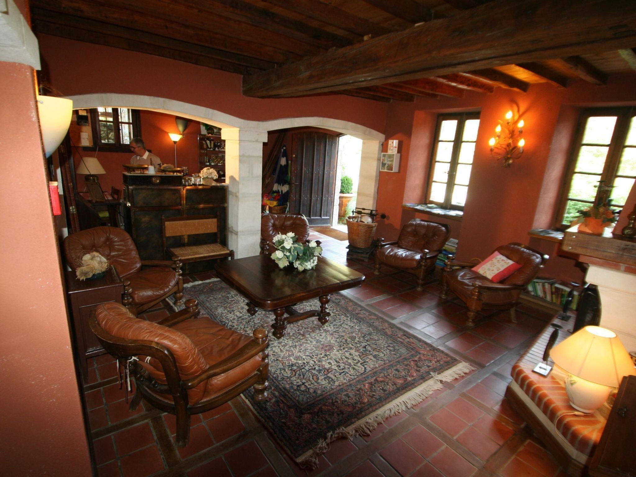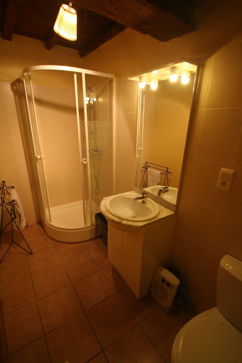This 55 m² gîte sleeps four people and is located on the second floor of the Mas. It is accessed by a wooden staircase leading from the common room of this old mill, where a fireplace recalls the evenings of yesteryear. For outdoor meals, there is a private area on the large ground-floor terrace with table, chairs and barbecue. Le Grenier" includes a kitchenette with oven and small appliances. For your comfort, there are two bedrooms, one with a double bed and the other with twin beds.A large corridor leads to the children's bedroom and spacious shower room with toilet.The gîte faces north-east, with a view of the fountain and the hills in front of the farmhouse.