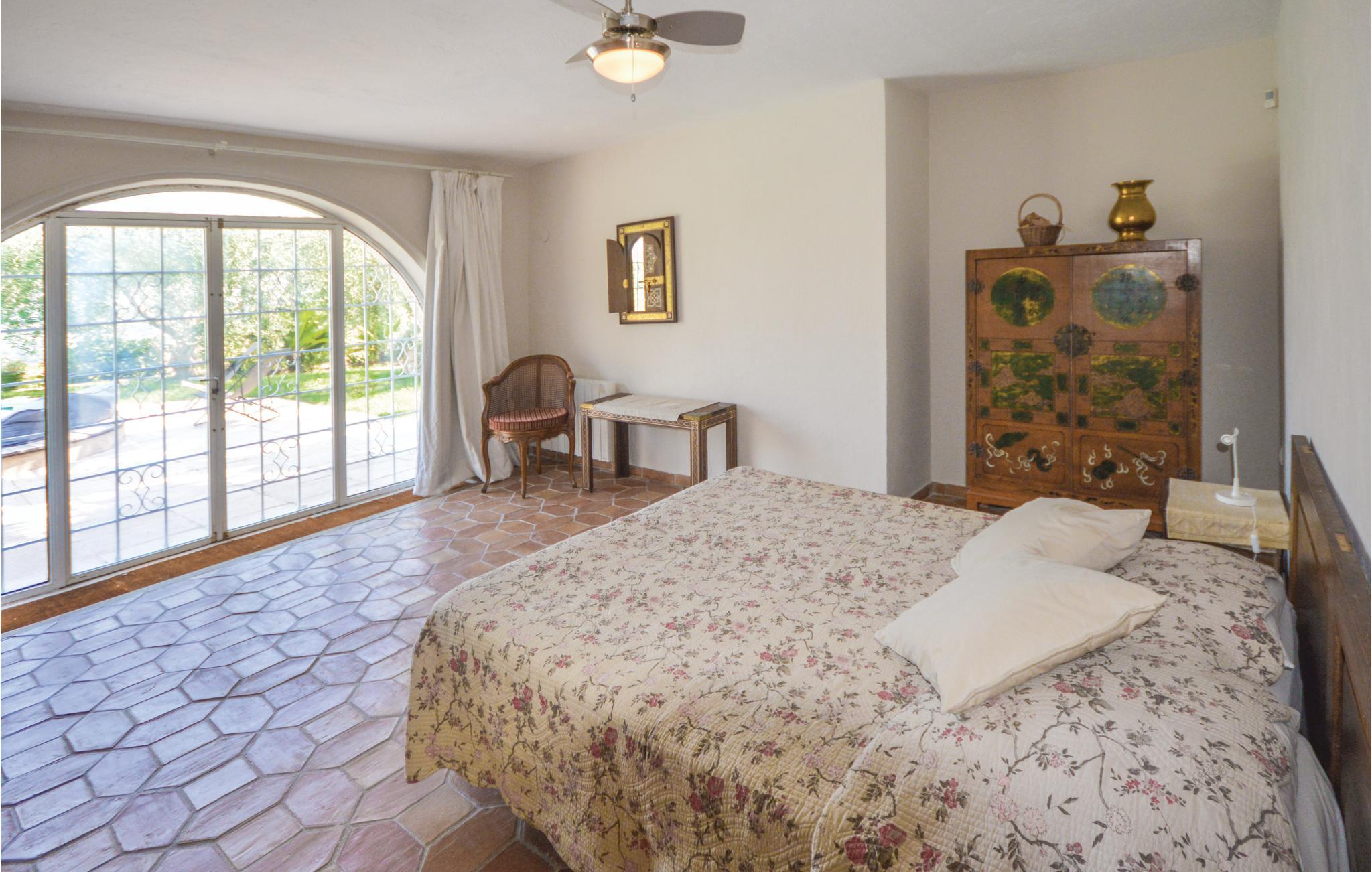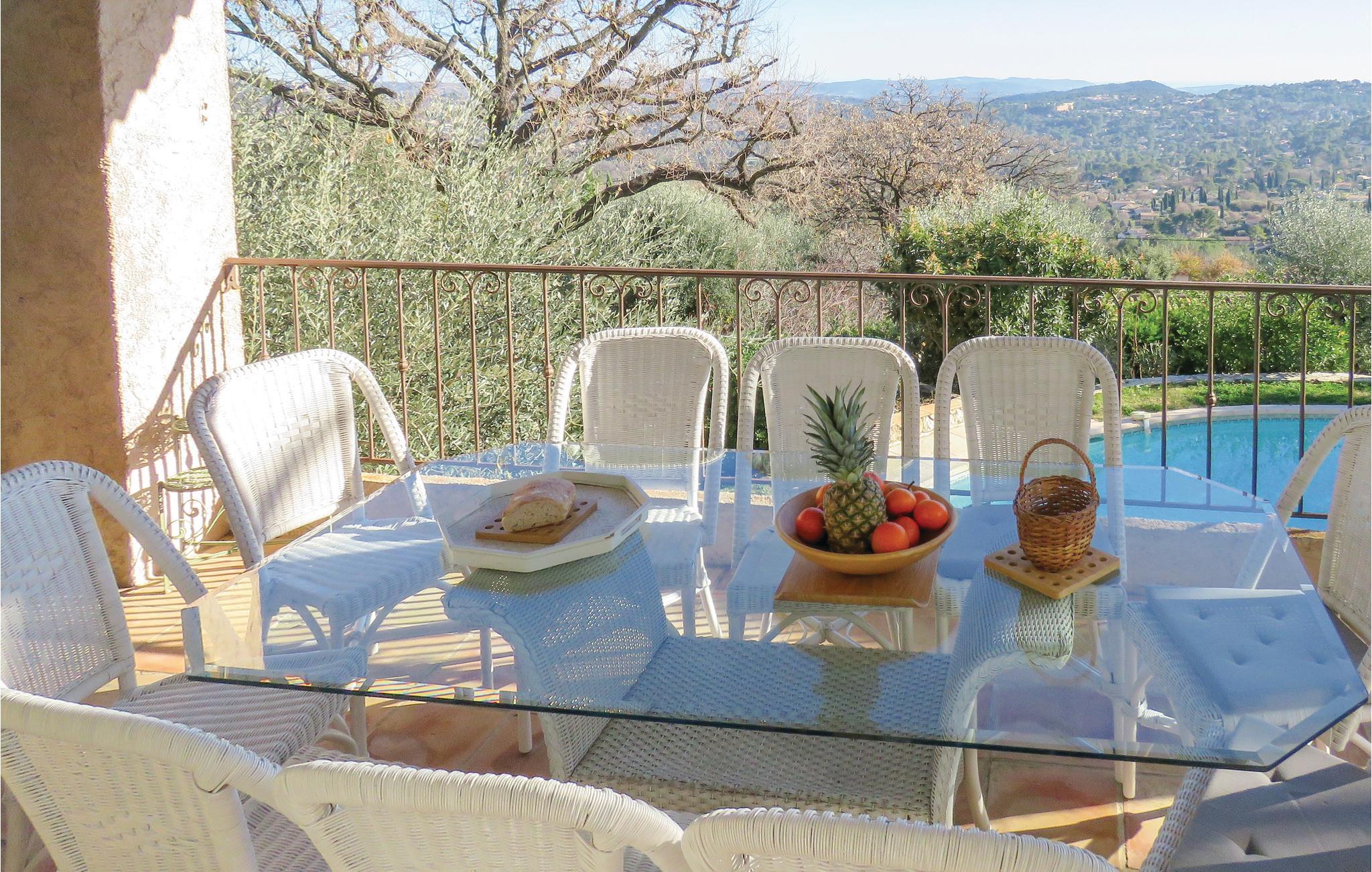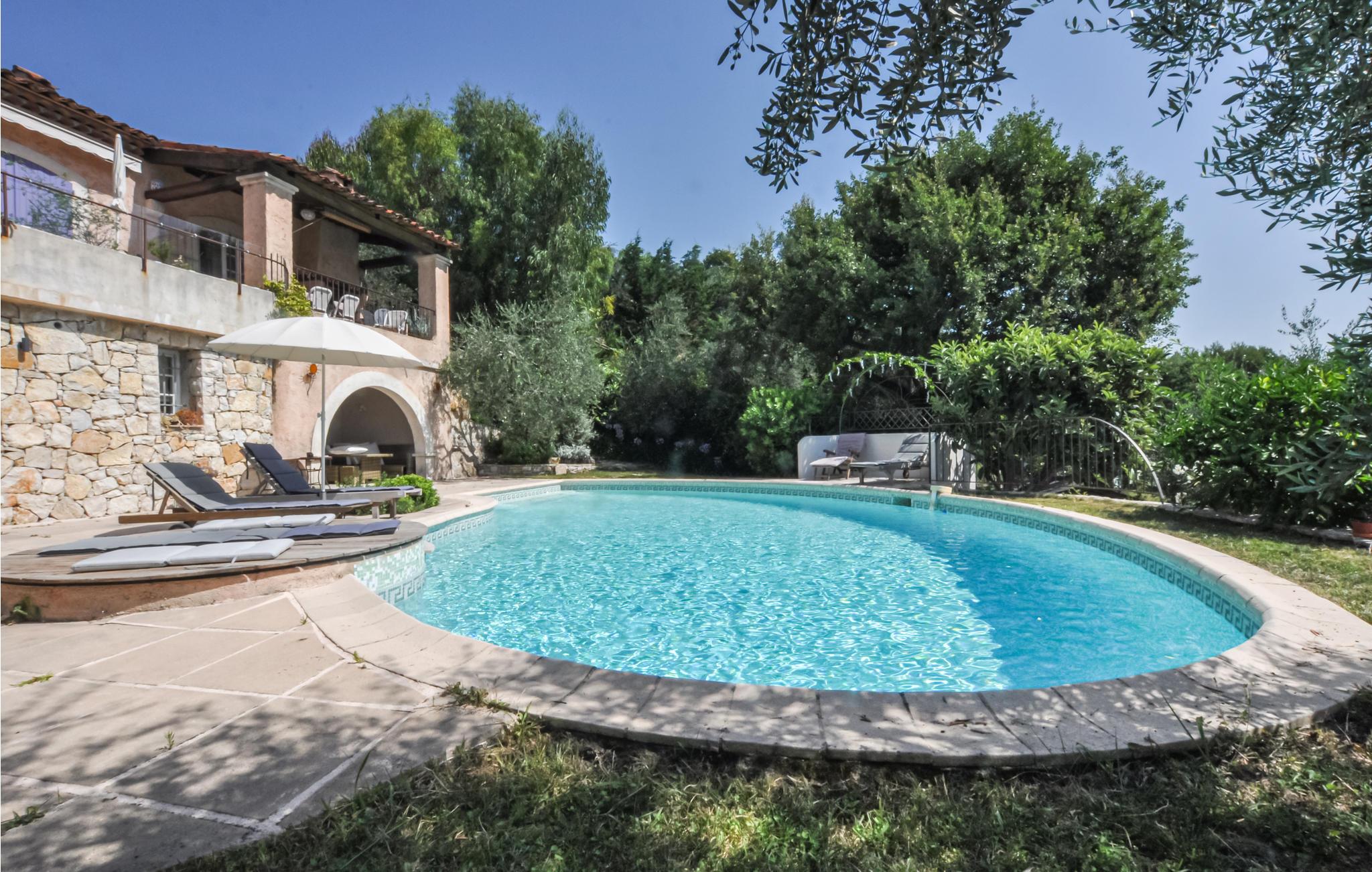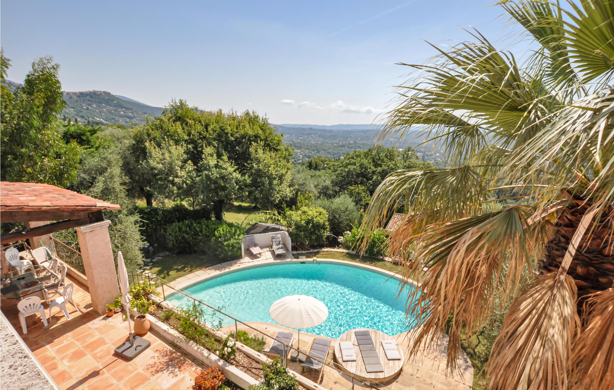 Denne villa ligger i ugenerte rammer 49 km fra Nice, 25 km fra Cannes og 10 km fra Grasse. Huset er forsynet med en pool (opvarmet efter anmodning og efter reservation) med et unikt design samt en romersk trappe og en udendørs bruser. Den vidunderlige have med oliventræer giver jer mulighed for at nyde den provencalske natur, og de store karnapper og terrasserne har en magisk udsigt over havet.