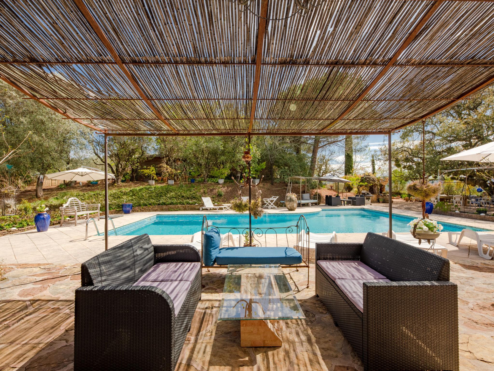 Large single-family house "La Renardière", 2 storeys. Property composed of main house and outbuilding, in a hamlet with 3 houses, on top of a hill, 10 km from the lake, 25 km from the beach. Private: well-kept garden 2'000 m2 (not fenced), swimming pool (12 x 6 m, depth 150 - 240 cm, seasonal availability: 01.May. - 30.Oct.) with alarm system. Table tennis, boules, parking (for 3 cars). Shop 2.5 km, bus stop 2 km, sandy beach "Cannes" 25 km. Golf course (18 hole) 10 km, walking paths from the house 10 m. Well-known lakes can easily be reached: Saint Cassien 10 km. Please note: car recommended. The owner does not accept any groups. The owner lives on the same property.