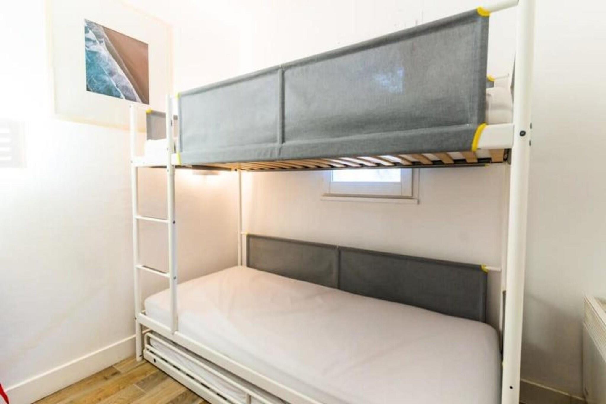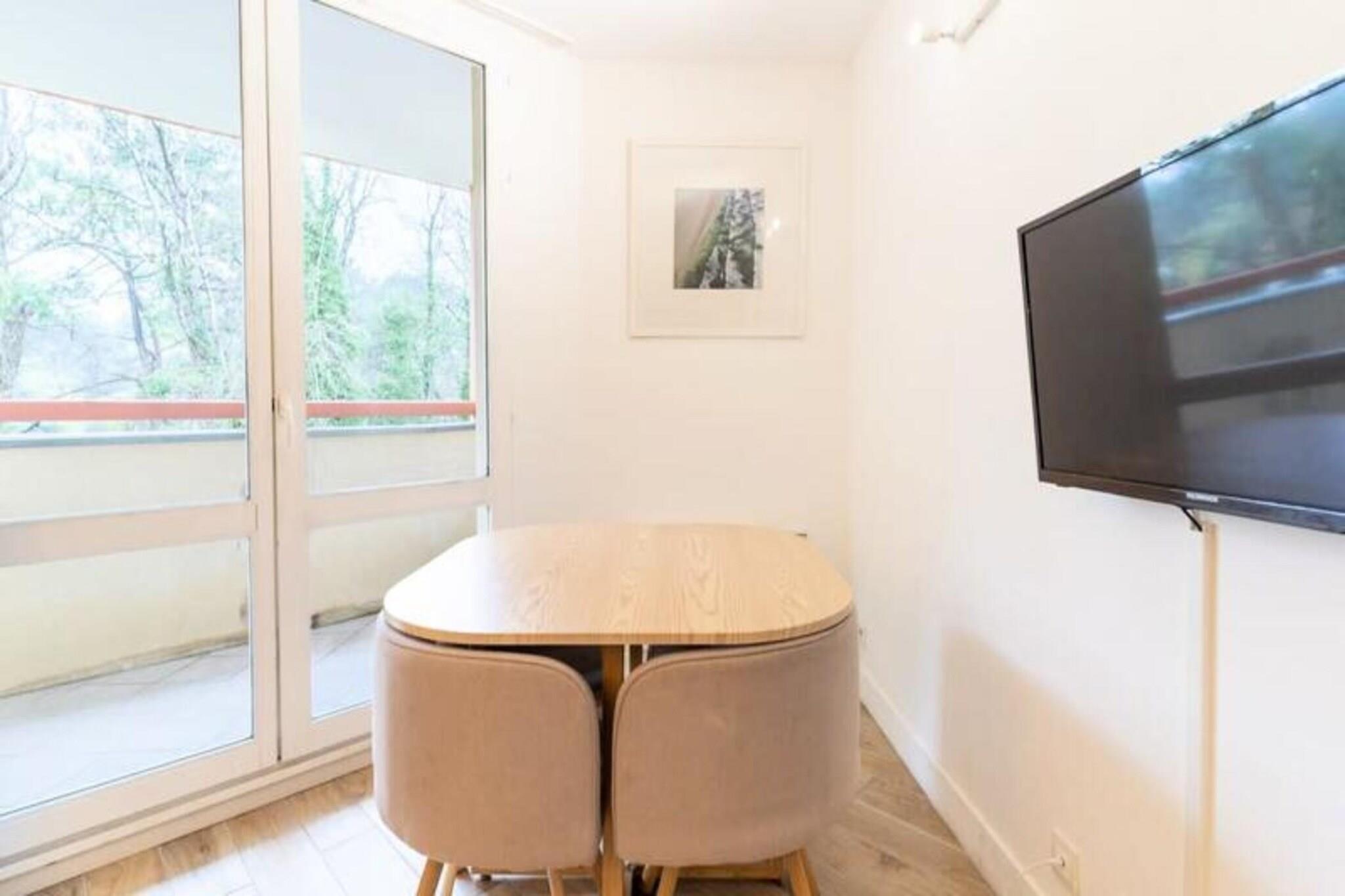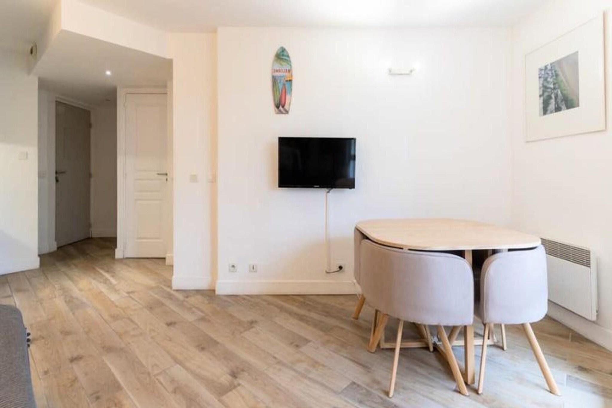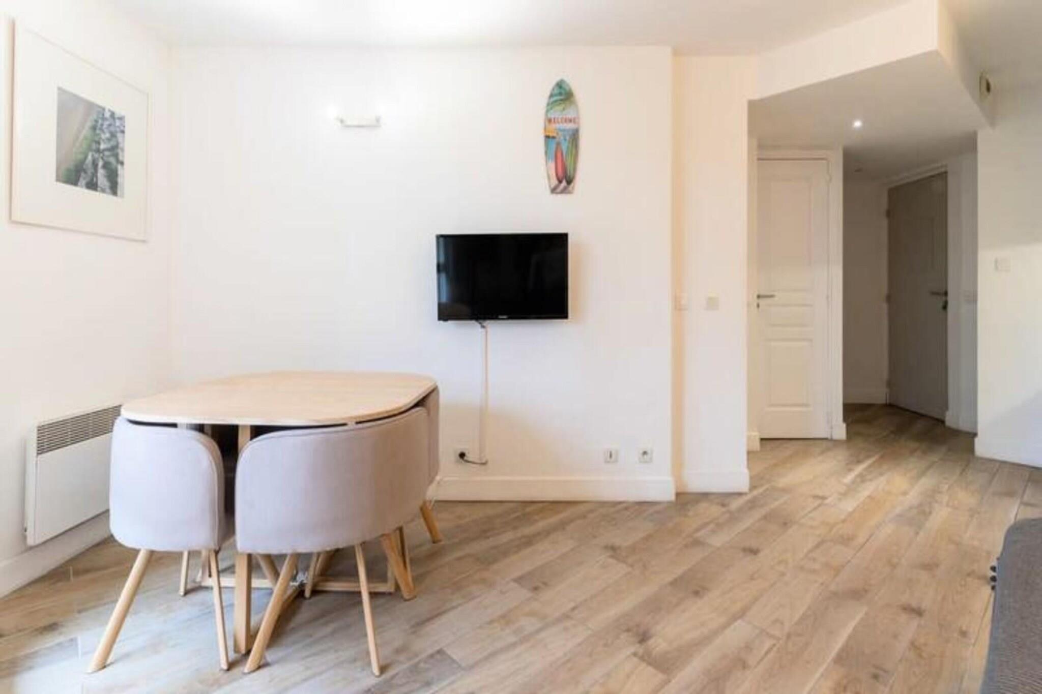Denne dejlige 2-værelses lejlighed kan rumme op til 5 gæster, hvilket gør den til et fremragende valg for familier eller små grupper. Lejligheden har en hyggelig stue med en 1,60 m sovesofa og spiseplads, suppleret med et åbent køkken. Det separate soveværelse har køjesenge og en udtræksseng, ideel til tre gæster. Ejendommen tilbyder også gratis parkering, adgang til en opvarmet indendørs swimmingpool og en behagelig balkon til afslapning. Bemærk venligst, at sengetøj og forbrugsvarer ikke leveres, men kan arrangeres som valgfri service. Kæledyr er ikke tilladt i denne bolig. Beliggende i hjertet af Le Touquets ridepark, tilbyder denne ejendom et fredeligt tilflugtssted med nem adgang til lokale attraktioner. Det nærliggende shuttlestoppested giver dig mulighed for nemt at nå den pulserende bymidte, hvor du kan udforske charmerende caféer, butikker og markeder. Boligens fredfyldte beliggenhed byder på en fantastisk udsigt over rideparken, mens den ligger i kort afstand fra byens travle atmosfære. Lejligheden er udstyret med et moderne køkken, herunder en opvaskemaskine, tv og kaffemaskine for ekstra bekvemmelighed. Badeværelset har badekar og håndvask samt separat toilet. Gæsterne kan nyde den fælles indendørs opvarmede pool, der er åben hele året med planlagte lukninger. Concierge-servicen er tilgængelig for alle forespørgsler under dit ophold. Denne velindrettede lejlighed sikrer en behagelig og mindeværdig ferieoplevelse.
