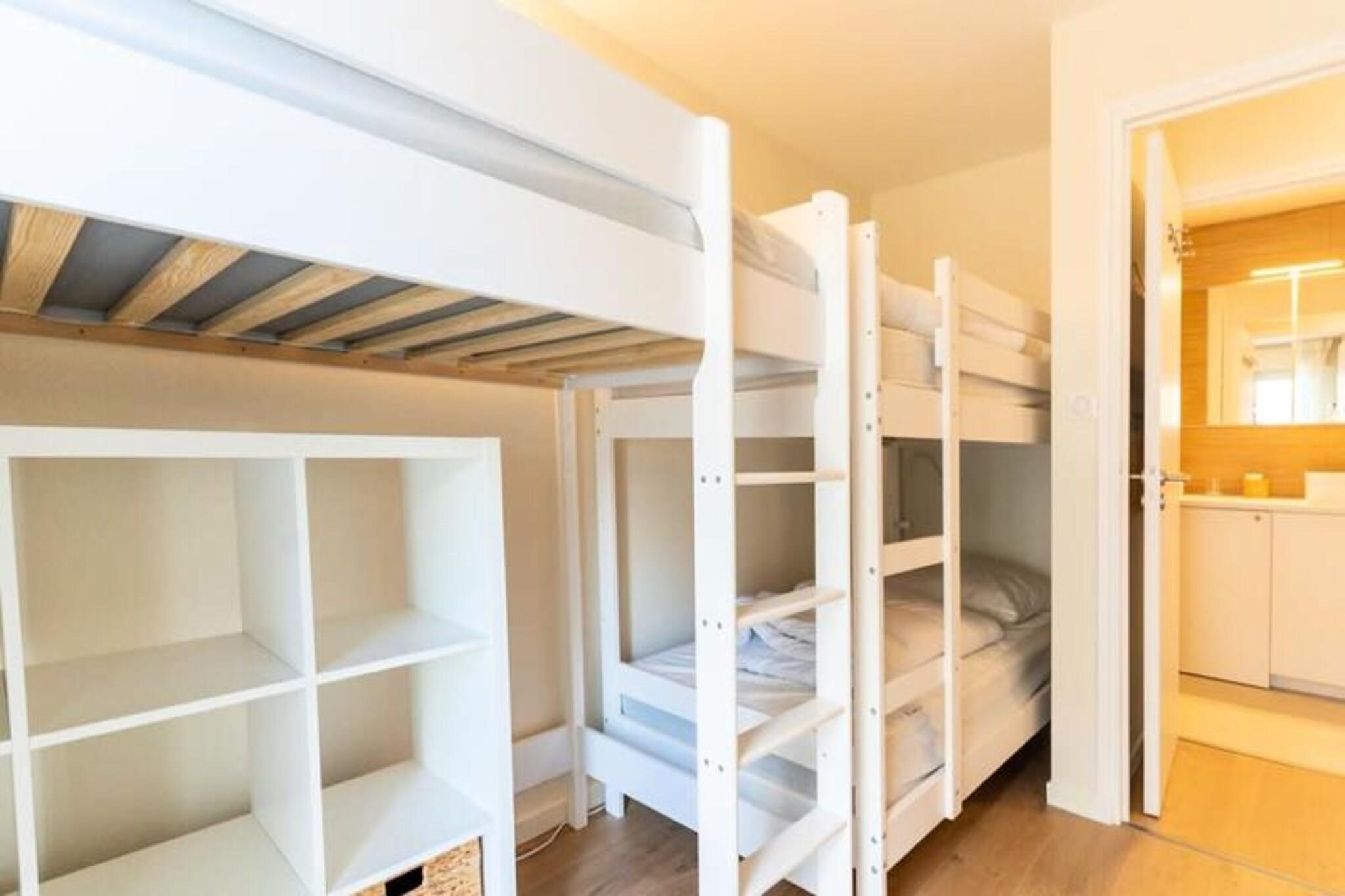 Denne charmerende renoverede lejlighed tilbyder et komfortabelt og moderne oase, perfekt for op til fem gæster. Den har to indbydende soveværelser - det ene med en stor 140 cm dobbeltseng og det andet med tre senge, herunder to køjesenge og en høj seng. Gæsterne vil sætte pris på den lyse og rummelige opholdsstue, som åbner ud til en stor vestvendt terrasse, ideel til at slappe af efter en dag med udforskning. Ejendommen omfatter også en anden terrasse på østsiden, komplet med et havebord til udendørs måltider. Bemærk venligst, at sengetøj er tilgængelig som en valgfri service. Beliggende kun 400 meter fra stranden og i gåafstand fra byens centrum og markedspladsen, er denne lejlighed perfekt placeret til at nyde lokale attraktioner. Gæsterne kan nemt udforske de livlige caféer, butikker og restauranter i nærheden eller tage en afslappet spadseretur langs de sandede kyster. Nærheden til det overdækkede marked giver mulighed for en dejlig oplevelse af friske råvarer og regionale specialiteter. Lejligheden har et fuldt udstyret åbent køkken, herunder en opvaskemaskine og Nespresso-kaffemaskine, hvilket gør madlavning til en leg. Et moderne brusebadeværelse med vaskemaskine tilføjer bekvemmelighed, mens separate toiletter sikrer ekstra komfort. Med sin fremragende beliggenhed og tankevækkende faciliteter er denne ejendom et ideelt valg til en afslappende ferie ved havet.