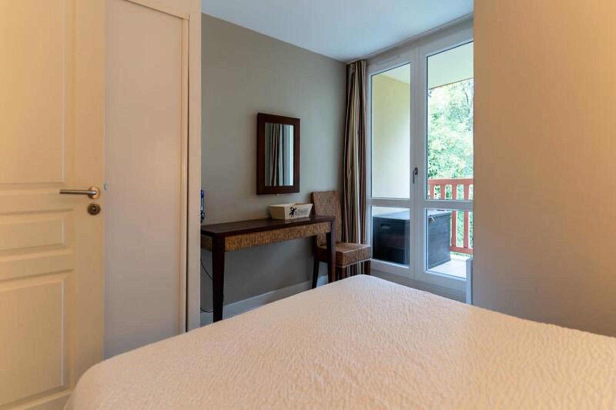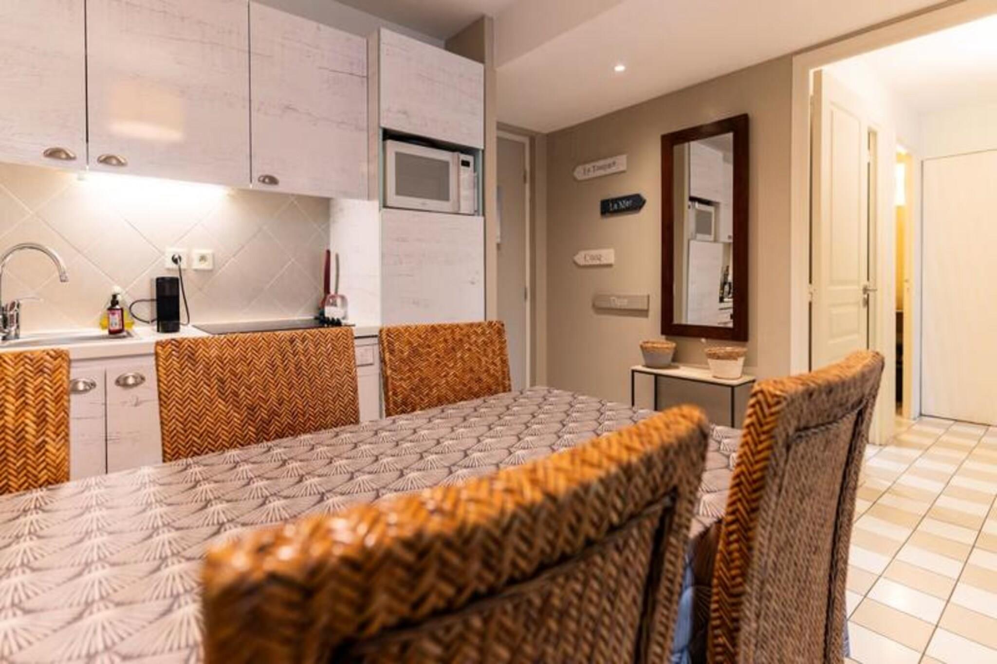Denne hyggelige lejlighed, beliggende i en turistresidens, kan rumme op til seks gæster. Den har en stue med en sovesofa, et soveværelse med en 140 cm dobbeltseng og skabe og et kabineværelse med køjesenge. Boligen tilbyder en indendørs opvarmet swimmingpool (lukket fra 7. januar til 7. februar 2025), en tennisbane og gratis privat parkering. Sengetøj medfølger ikke, men fås som ekstraudstyr. Ideelt beliggende mellem Canche Bay og ridecentret, er lejligheden også tæt på Hippodromen og Orangerie de la Baie. Denne beliggenhed giver nem adgang til forskellige fritidsaktiviteter og attraktioner. Lejligheden indeholder opholdsstue med åbent køkken udstyret med opvaskemaskine, tv, badeværelse med badekar og håndvask samt separat badeværelse med bruser og toilet.