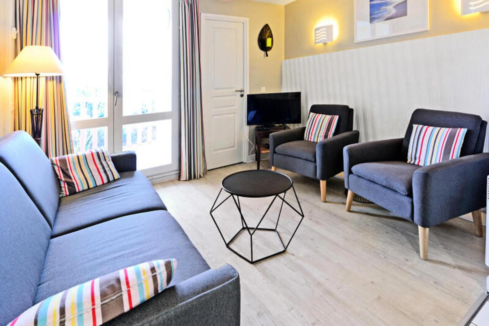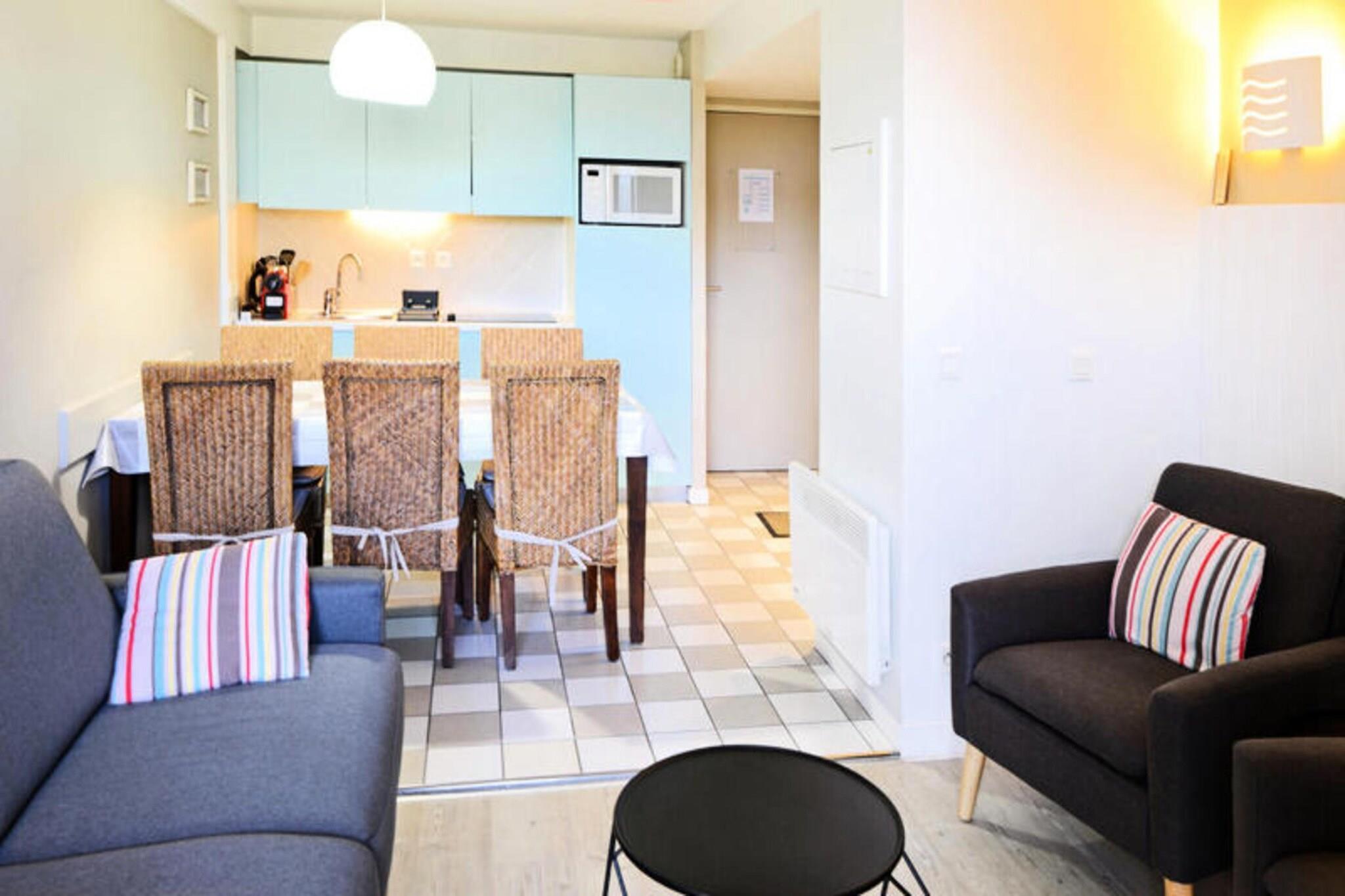 Denne hyggelige 3-værelses lejlighed, ideel til op til 6 personer, tilbyder et behageligt ophold med moderne bekvemmeligheder. Det har en rummelig stue, et fuldt udstyret køkken og to soveværelser. Der er to badeværelser for ekstra bekvemmelighed. Lejligheden er kæledyrsvenlig, så du kan tage din lodne ledsager med. Sengelinned er inkluderet, og yderligere tjenester såsom et babysæt og håndklæder er tilgængelige efter anmodning. Beliggende kun 20 minutter til fods fra både byens centrum og stranden, tilbyder denne lejlighed nem adgang til det bedste af Le Touquet. Nyd den pulserende lokale atmosfære med masser af caféer, butikker og markeder i nærheden. Uanset om du ønsker at slappe af på stranden eller udforske byens charmerende gader, gør denne førsteklasses beliggenhed det hele muligt. Lejligheden leveres med alle de nødvendige bekvemmeligheder, herunder et veludstyret køkken til at tilberede dine måltider og en indendørs opvarmet swimmingpool beliggende i boligen, tilgængelig året rundt. Boligområdet er gennemtænkt designet til afslapning, og der er gratis parkering på stedet. Yderligere tjenester såsom slutrengøring og turistskat er tilgængelige efter behov.