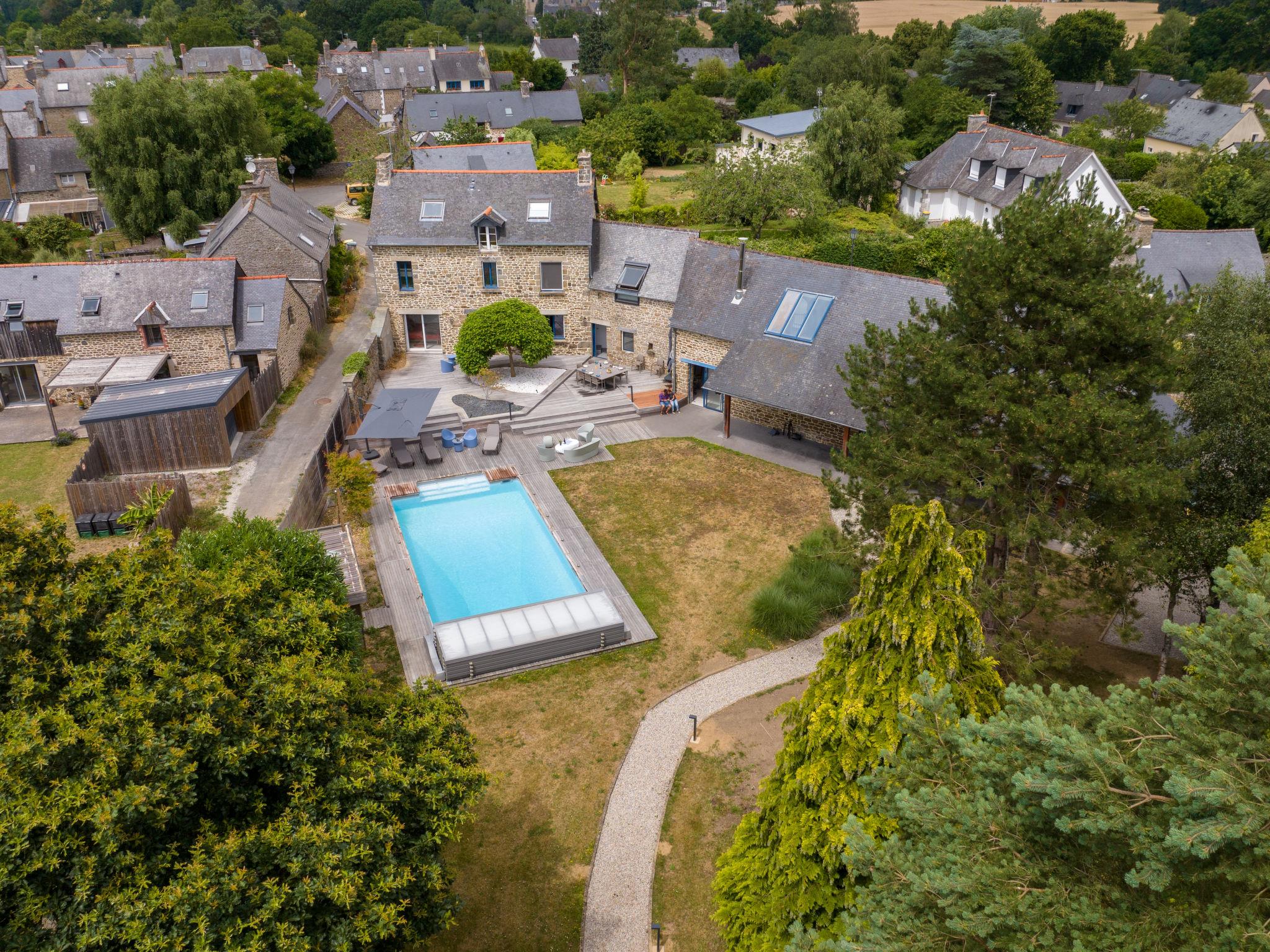 Le tronchet: Very beautiful, comfortable, luxurious country house "La Gentilhommière", 3 storeys, renovated, surrounded by trees. In a secluded, quiet, sunny position, 19 km from the sea. Private: well-kept garden 800 m2 (fenced) lawn and trees, swimming pool angular (5 x 10 m, seasonal availability: 15.May. - 30.Sep.) with shutter cover. Pool maintenance by the owner/gardener. In the house: lounge with TV, WiFi, fitness room, playroom, table football. Parking (for 4 cars). Grocery 6 km, restaurant 1 km, bakery 5 km, bus stop "Tronchet centre" 260 m, railway station "Plerguer" 6 km, ferry "Gare maritime du Naye" 26 km, sandy beach "Saint Suliac" 19 km, thermal baths "Therme marin de Saint Malo" 27 km, lake de Mirloup 1 km. Golf course (18 hole) 2 km, riding stable 5 km. Nearby attractions: Saint Malo intra muros 27 km, Cobac park 9 km, Cancale 26 km, Grand aquarium de Saint Malo 23 km, Golf du Tronchet 2 km, Mont Saint Michel 40 km. Please note: car recommended.