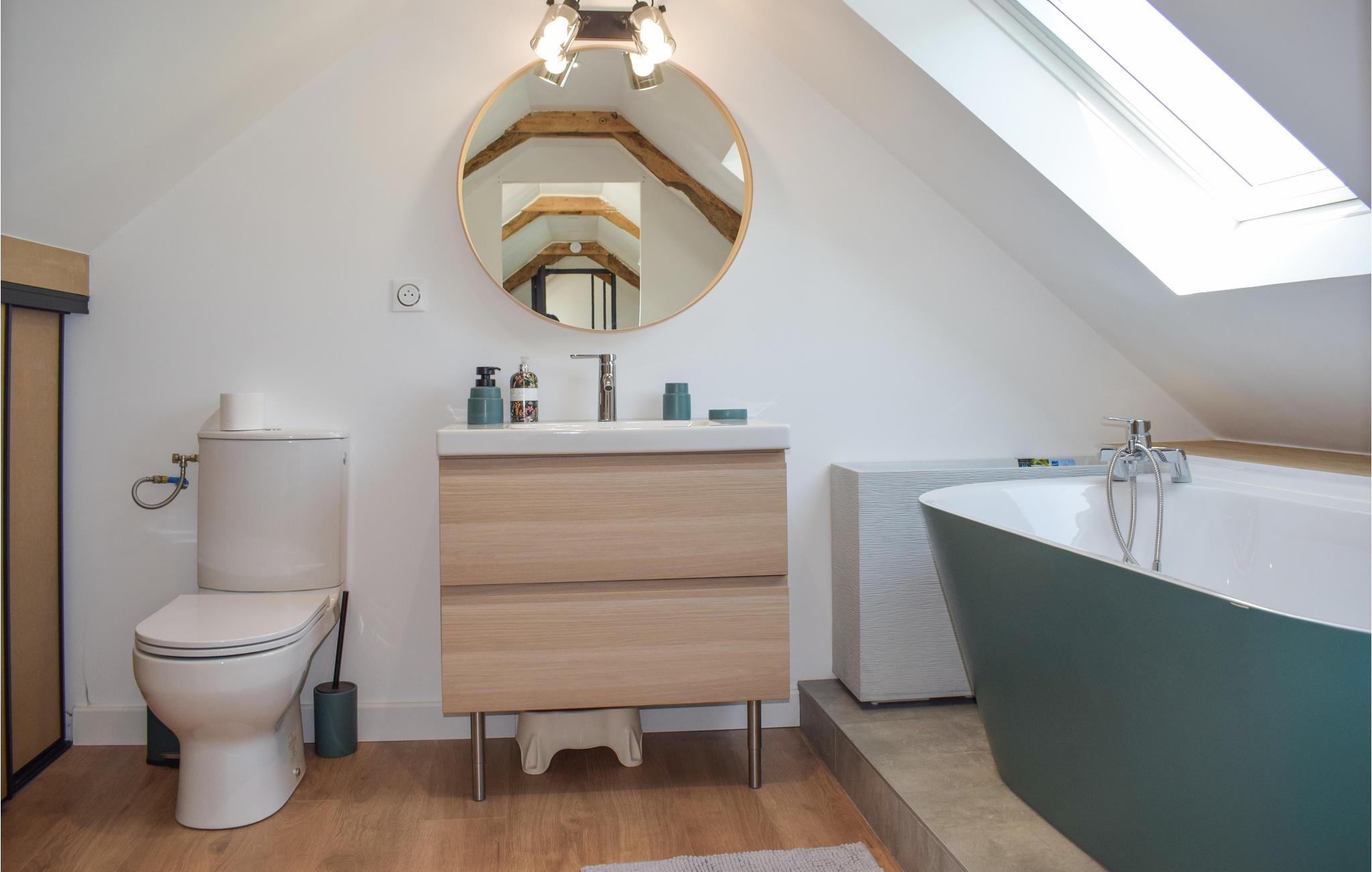Rummeligt, familievenligt feriehus med opvarmet indendørs pool. Dette feriehus ligger roligt i den bretonske kommune Le Vieux-Bourg. De lyse, farverigt indrettede værelser gør et smagfuldt indtryk og tilbyder de perfekte rammer for ubekymrede ferier med familien. Lad de små slippe dampen ud i legehjørnet, hygge med et spil bordtennis og senere slappe af ved poolen. Om aftenen kan I tilberede jeres delikatesser i det store køkken og afslutte en fantastisk dag omkring spisebordet. Den indhegnede have byder på flere hjørner, der inviterer til at blive hængende, og på varme dage kan I køle af under den udendørs bruser. Gå en tur gennem området og besøg destinationer som de helliges dal eller slottet Val. Kig forbi på hyggelige restauranter og prøv lækre regionale specialiteter. Inden for rækkevidde frister Guerlédan-søen jer også med badeture og vandsport.