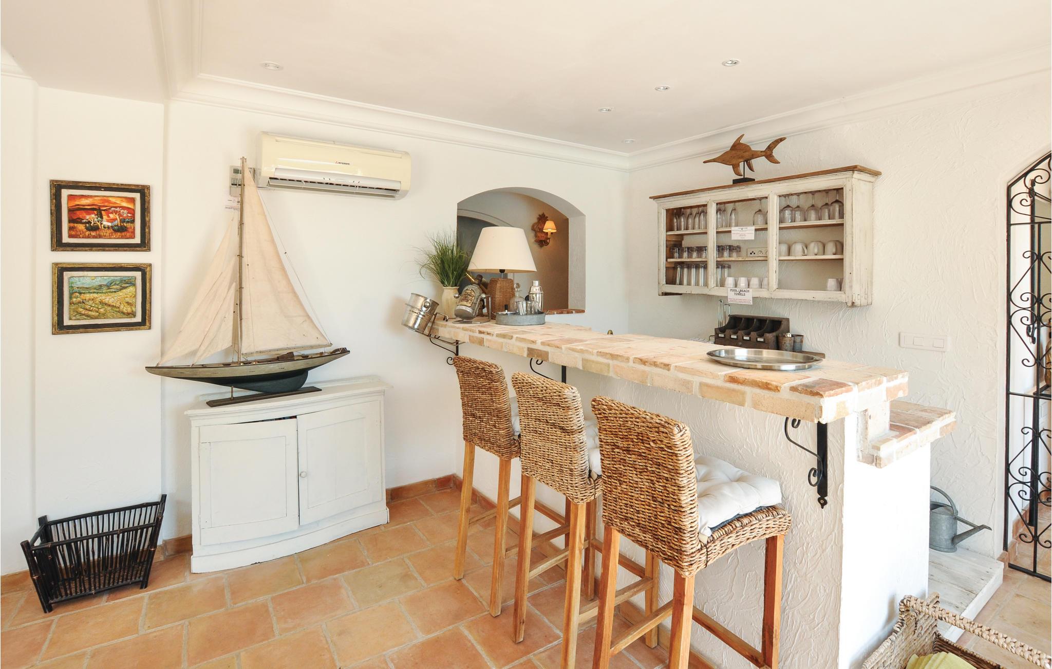 Denne villa, der er indrettet i romantisk landstedsstil, byder jer velkommen til en høj beliggenhed med en storslået udsigt, der strækker sig helt til Cannes-bugten. Det smukt designede interiør byder op en behagelig stemning. Snak over afslappede måltider, tryl kulinariske lækkerier frem, og benyt de komfortable sofaer til stille læsning eller sjove spilleaftener.