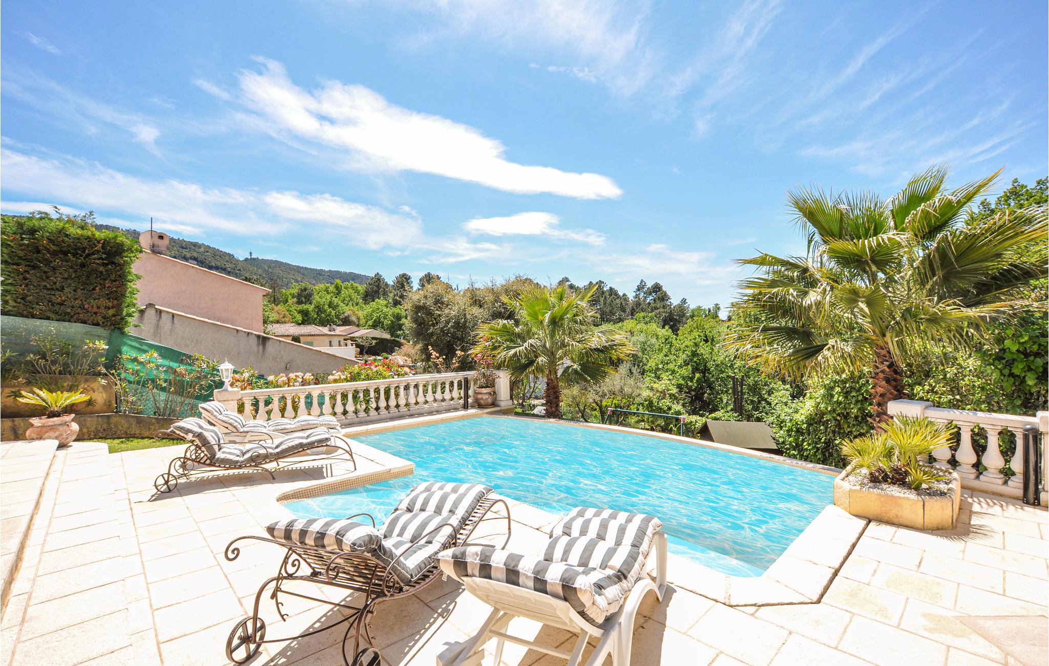 Charmerende villa i udkanten af en dejlig lille by, ikke langt fra Lac de Saint-Cassien søn. Til husets elegante indretning hører bl.a. marmorgulve og lædersofaer. Huset er udstyret med klimaanlæg og i den store terrasse ligger den skønne overløbspool , omgivet af en skøn have. Huset ligger rigtigt godt ikke langt fra motorvejen, herfra kommer i hurtigt til rivieraen kun 15 km væk, med skønne fine sandstrande der indbyder til afslappede badedage. I nærheden af bjergbyen Fayence. Oplev også de mondæne byer Nice og Cannes, hvor I kan slentre langs havet.