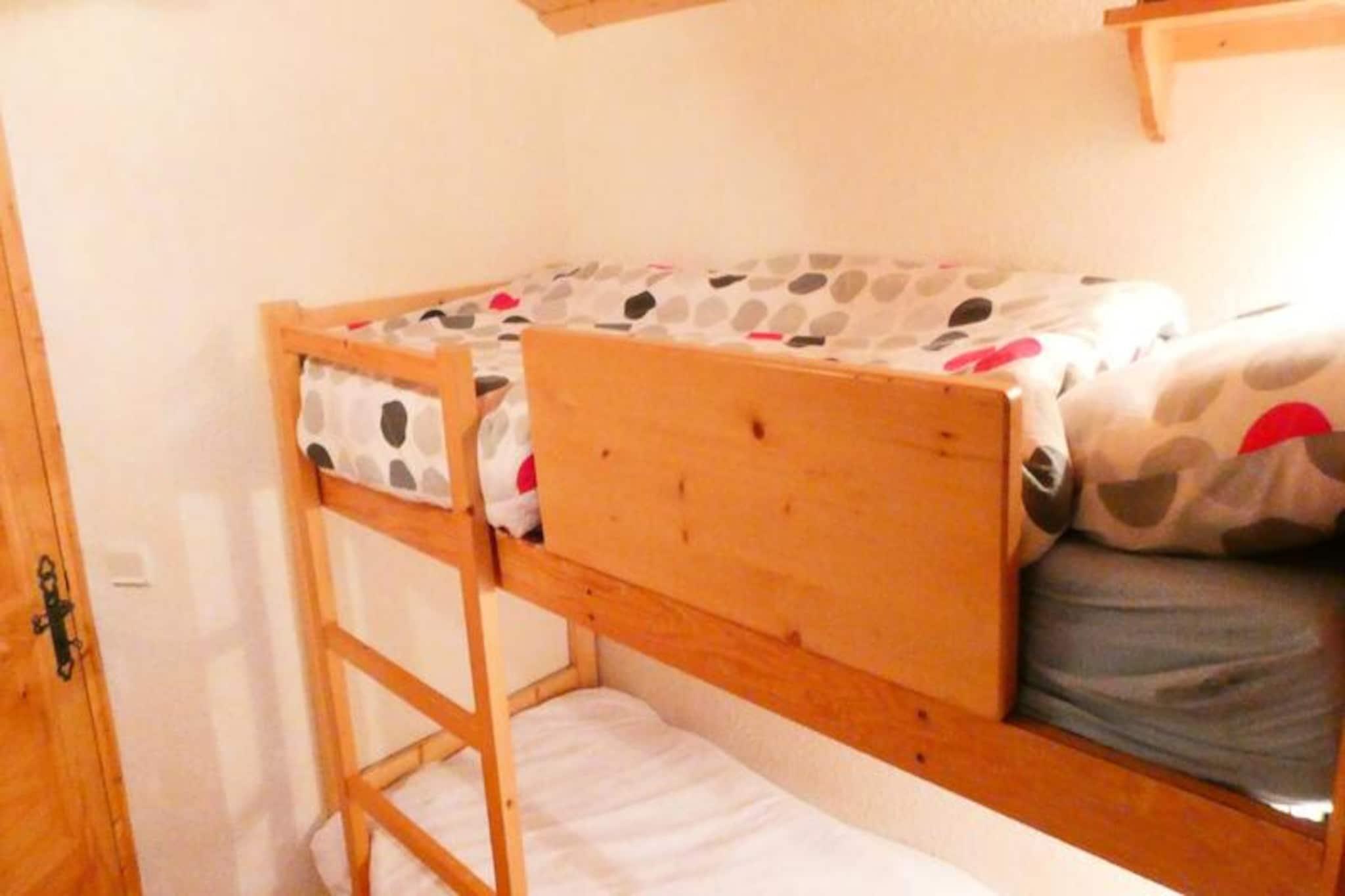 I det fredfyldte Châtelet-distrikt i Méribel Mottaret tilbyder denne charmerende alpine lejlighed et hyggeligt bjergparadis, perfekt til både skientusiaster og naturelskere. Med sin sydvestvendte balkon kan du nyde den betagende udsigt over de omkringliggende tinder, mens du nyder den friske bjergluft. Beliggende kun 10 minutters gang fra butikker og 400 meter fra Châtelet indkøbscenter, kombinerer denne bolig bekvemmelighed med ro, hvilket gør den til en ideel base for dine alpine eventyr. En blå piste i nærheden giver problemfri adgang til Méribel Mottaret-skilifterne, hvilket sikrer, at du altid er tæt på aktiviteten på pisterne. \n\nIndenfor er lejligheden omhyggeligt designet til at rumme op til seks gæster. Stuen har en komfortabel sovesofa, et tv og en dvd-afspiller, hvilket skaber et varmt rum at slappe af efter en dag på pisterne. Soveværelset i hytten har et sæt køjesenge, mens den øverste etage tilbyder et fredeligt soveværelse med to enkeltsenge. Tekøkkenet er fuldt udstyret med moderne apparater, herunder elektrisk kogeplade, ovn, mikrobølgeovn, opvaskemaskine og kaffemaskine, så du nemt kan tilberede solide måltider. Et separat badeværelse og toilet bidrager til bekvemmeligheden, mens skiboksen og elevatoren i boligen sikrer et problemfrit ophold. \n\nChâtelet-kvarteret, kendt for sin moderne charme, tilbyder en fredelig atmosfære væk fra travlheden, men er stadig godt forbundet med en shuttle-service kun 400 meter væk. Uanset om du udforsker de uberørte pister, forkæler dig selv med lokalt Savoyard-køkken eller blot slapper af i din lejlighed, tilbyder denne bolig de perfekte rammer for en uforglemmelig alpin ferie. Den er røgfri og kæledyrsfri og er et paradis for familier, par eller venner, der søger en rolig flugt i hjertet af de franske alper.