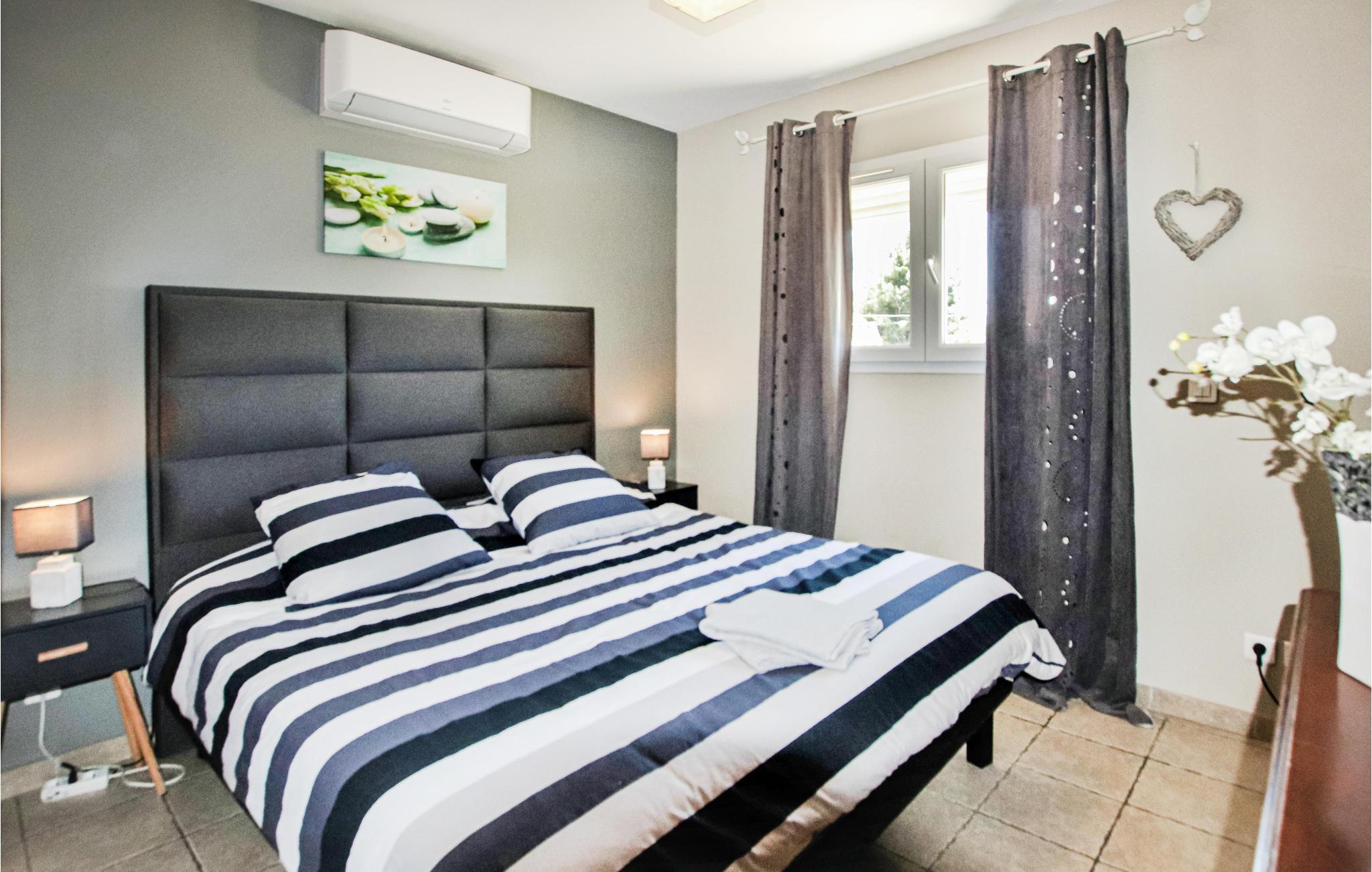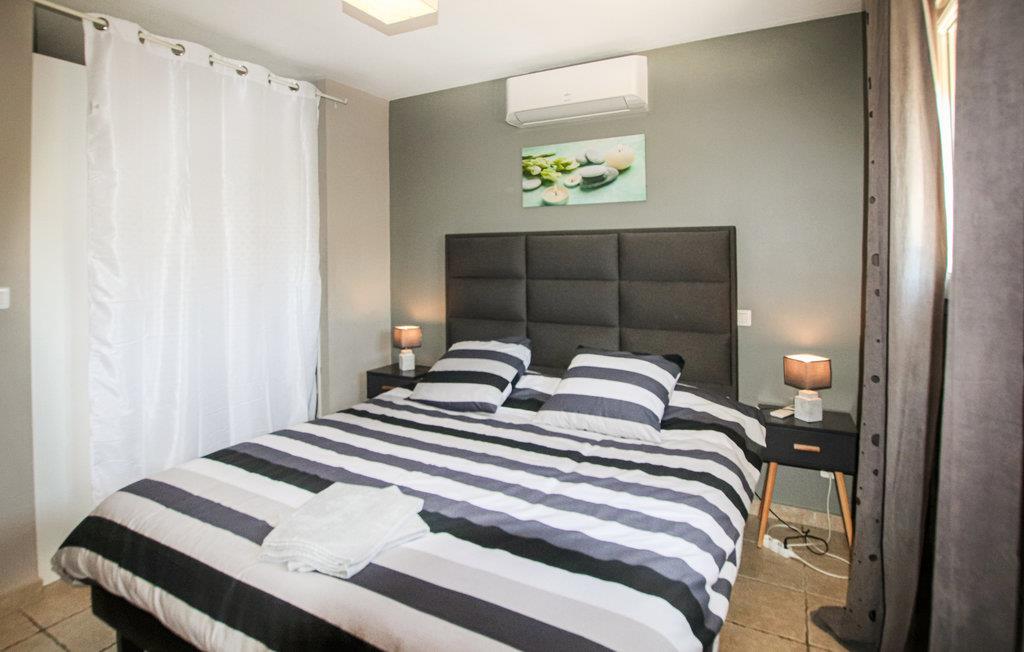 Til denne skønne villa i sognet Angles hører der en privat pool, et poolhouse og en dejlig have med legeredskaber til børn i høj kvalitet. I kan vælge mellem flere terasser, hvor I kan nyde solen, eller opsøg den dejlige skygge i det overdækkede og ligeledes møblerede udeområde. Den rummelige opholdsstue har et åbent køkken der åbner mod den store, overdækkede terasse og haven. På 1. sal ligger der 3 soveværelser samt et rart badeværelse. Angles er en gammel bjerglandsby fra det 14. århundrede, der er kendt for sin gotisk kirke og Tour des Mascs. Gå en tur gennem Villeneuve, som får sit middelalder-flair af et gammelt abbedi og fortet Saint-André. I den skønne by Avignon kan I se det tidligere pavepalads og den ødelagte bro. Opdag den skønne natur på gåben, på cyklen eller på en hest. Der er 18-hul golfbaner i både Avignon (10 km) og Baux-de-Provence (25 km). Hvert soveværelse har et individuel justerbar klimaanlæg.Tilbring en uforglemmelig ferie i Gard i dette feriehus.