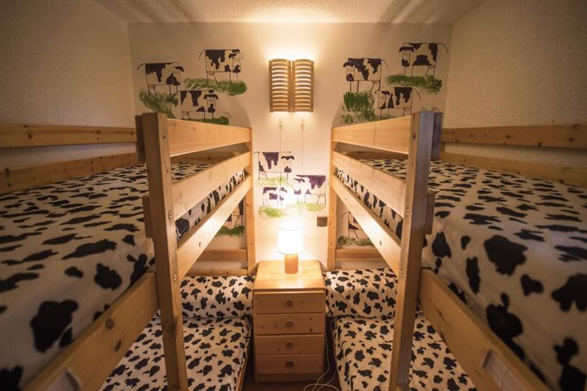 This cozy 2-room apartment is designed to accommodate up to 6 people, with a bedroom featuring two sets of bunk beds and a living room that includes a convertible sofa for 2. The apartment is pet-friendly for a small supplement, making it perfect for families or small groups. The space is non-smoking, and guests have access to a ski locker for convenience. The apartment’s south-west facing balcony offers stunning views of the mountains, providing a relaxing space to unwind after a day on the slopes. Located in the Crève Coeur district of Valmorel, the apartment is just 50m from the nearest ski piste and 100m from the ski lifts, making it ideal for skiing enthusiasts. The residence is connected to the center of the resort and the hamlet of Mottet via the Télébourg lift, providing easy access to the main attractions. Shops, including a sports store, bakery, and supermarket, are only 200m away, offering everything you need for your stay. The apartment features an American kitchen fully equipped with an electric hob, dishwasher, oven, microwave, and refrigerator, ensuring that you have all the essentials for cooking your meals. The bathroom and separate toilet add to the apartment's convenience. While Wi-Fi is not included, additional services such as bed linen, bathroom linen, and end-of-stay cleaning can be reserved in advance for a hassle-free experience.